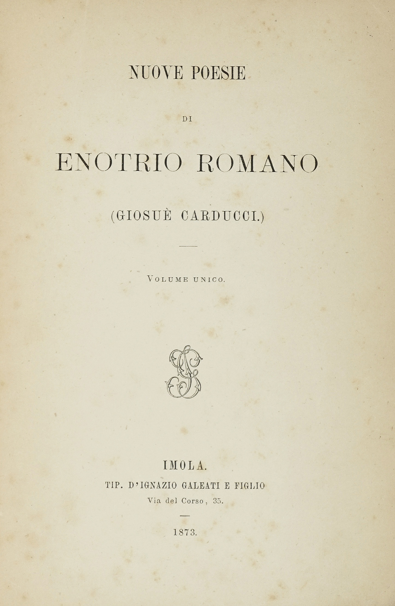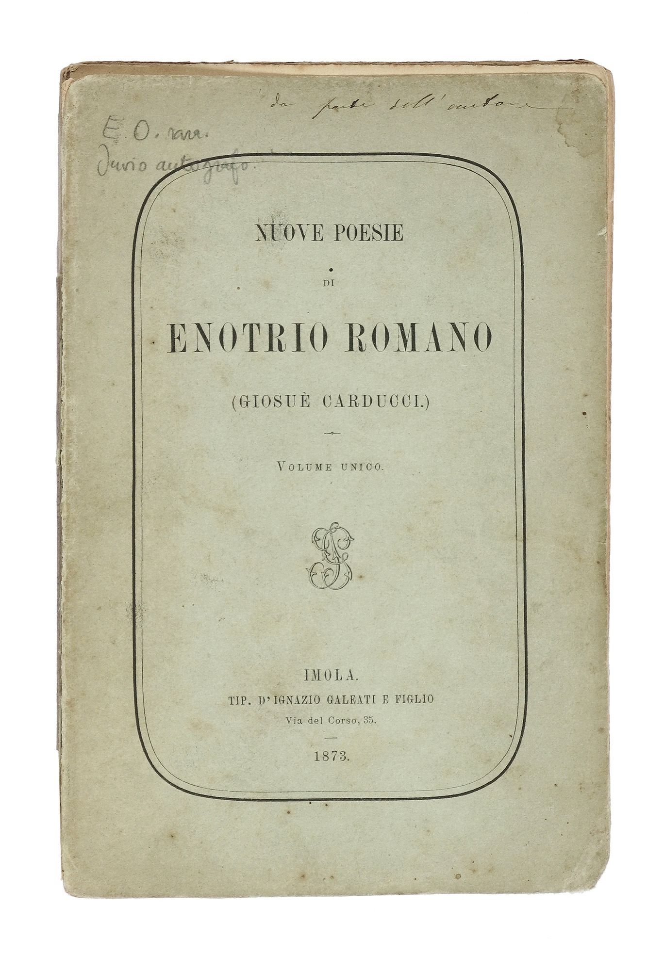 Carducci Giosuè , Nuove poesie di Enotrio Romano. Imola: Tip. D'Ignazio Galeati, 1873.