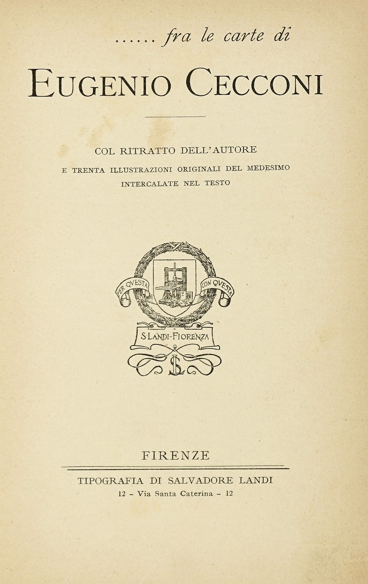 Cecconi Eugenio, ...fra le carte di Eugenio Cecconi. Firenze: Tipografia di S. Landi, [1906].