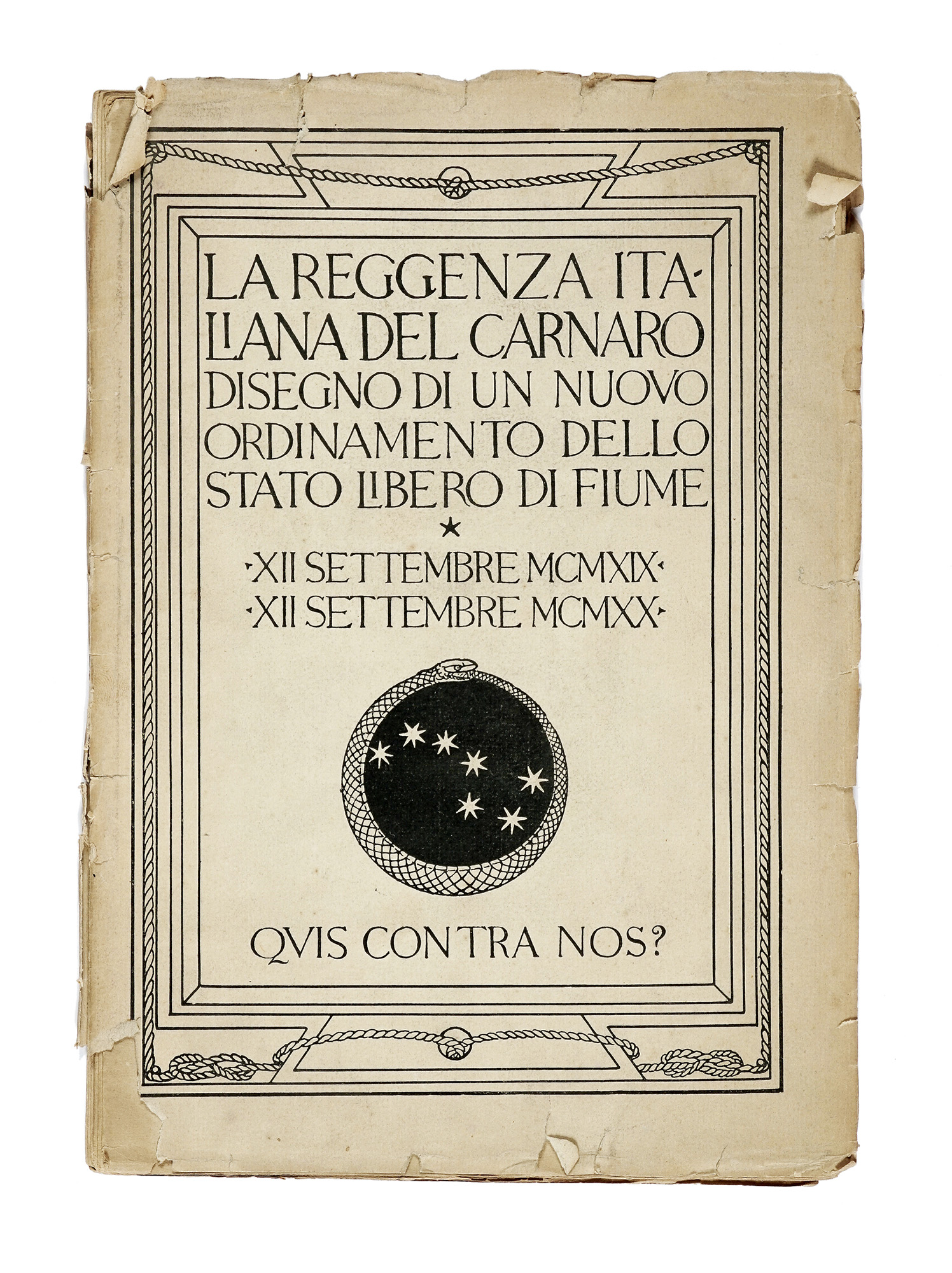 D'Annunzio Gabriele, La Reggenza Italiana del Carnaro. Disegno di un nuovo ordinamento dello Stato Libero di Fiume. In Roma: Presso la Fionda, 1920.