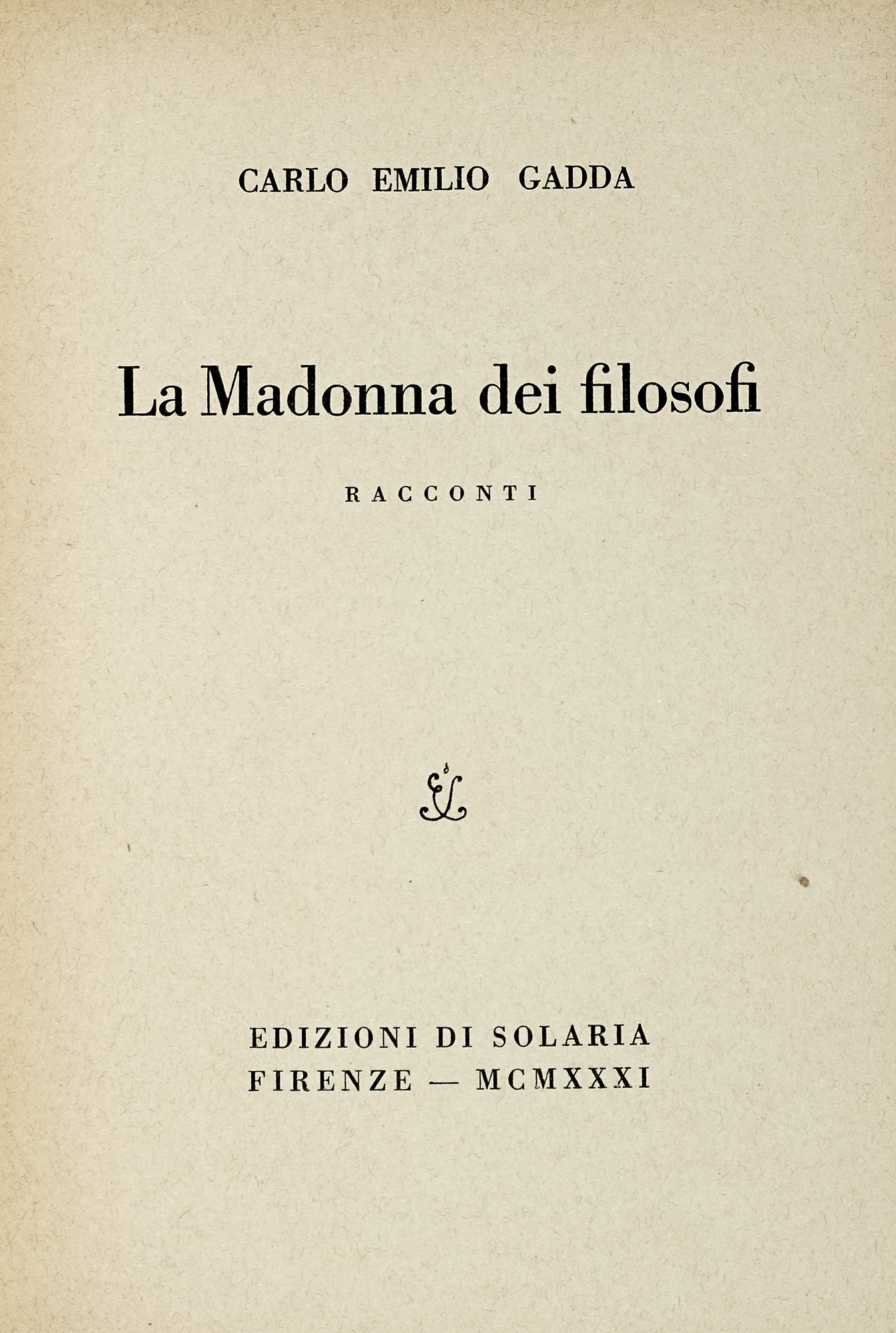Gadda Carlo Emilio, La madonna dei filosofi. Firenze: Edizione di Solaria, 1931.