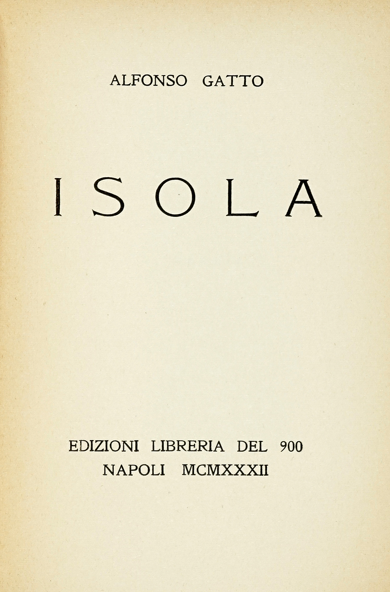 Gatto Alfonso, Isola. Napoli: Edizioni Libreria del Novecento, 1932.