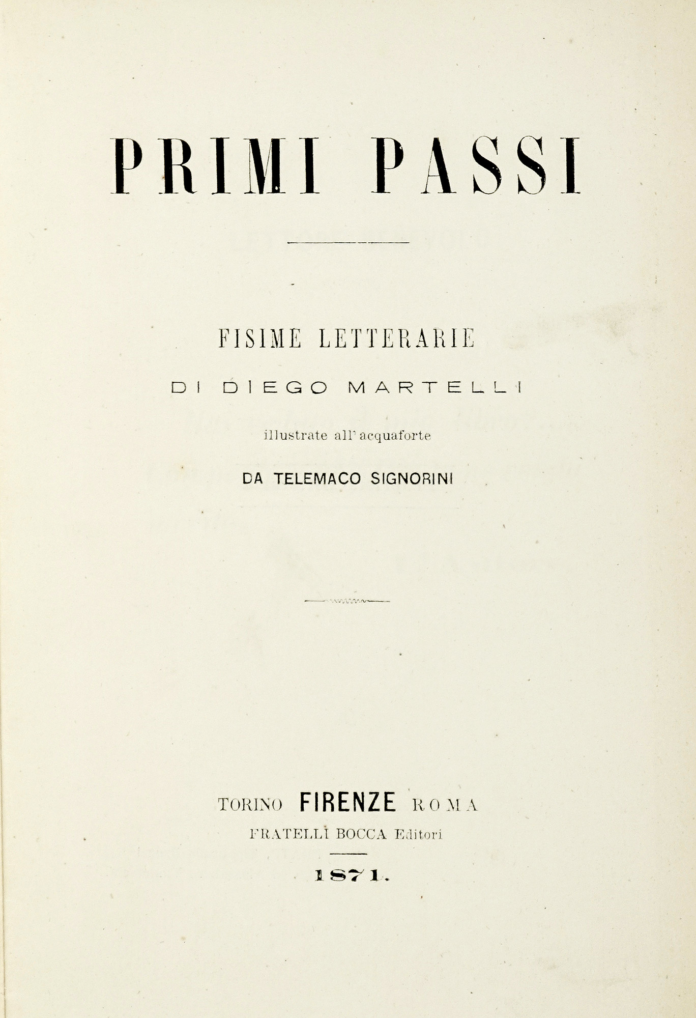 Martelli Diego, Primi passi. Fisime letterarie [...] illustrate all'acquaforte da Telemaco Signorini. Torino, Firenze, Roma: fratelli Bocca, 1871.
