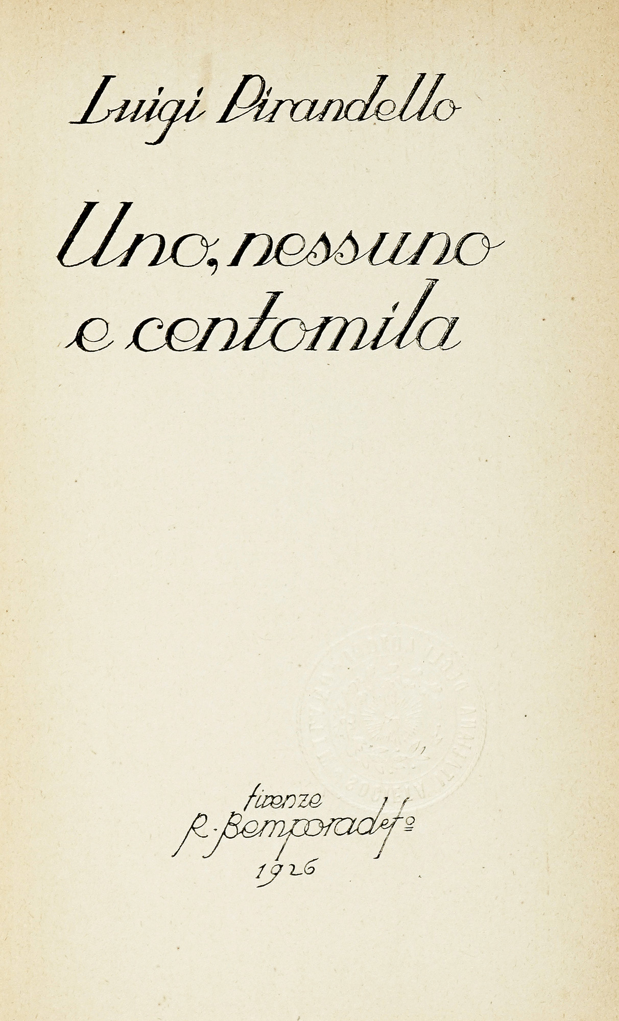 Pirandello Luigi, Uno, nessuno e centomila. Firenze: Bemporad, 1926.
