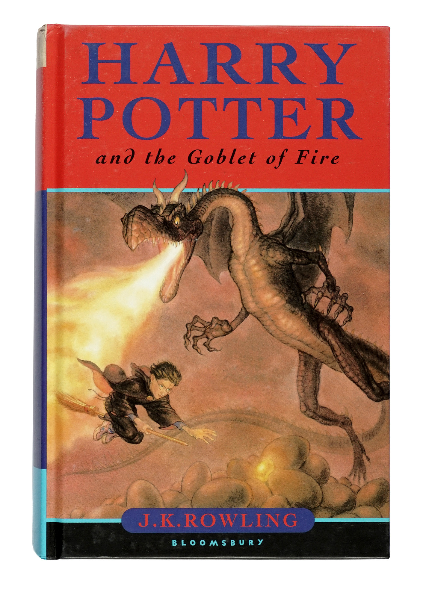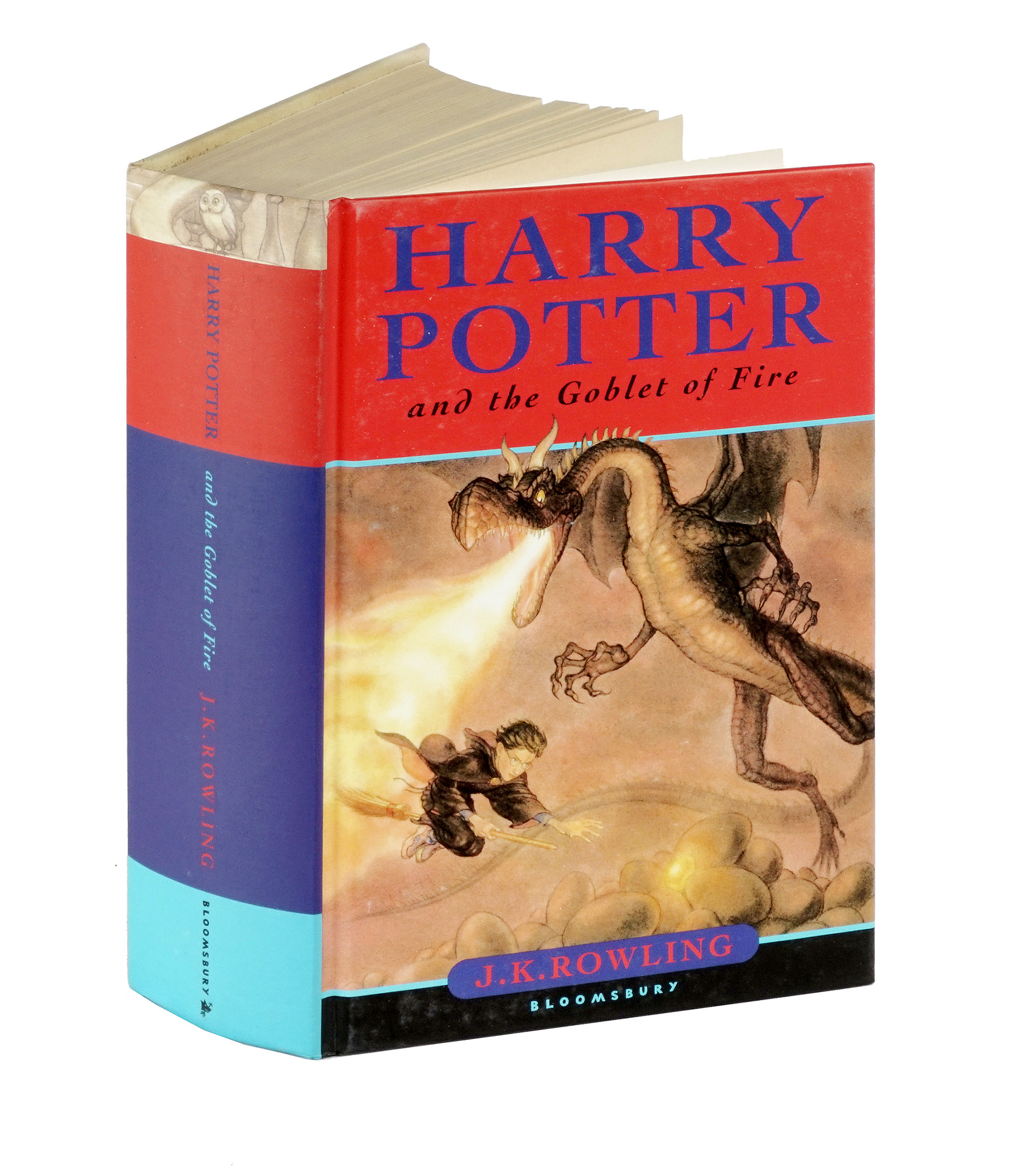 In-8° (mm 196x130). Ottima copia in legatura editoriale illustrata da Giles Greenfield, con sovraccoperta. Lievissime piegature alla parte superiore della sovraccoperta, altrimenti ottima conservazione. (1) Le copie originali di questo libro dovettero essere ritirate a causa di diversi errori di battitura, incluso l'ormai famoso errore a pagina 503 che recitava: «'Dumbledore, come!' said Crouch angrily», che fu pubblicato solo in questa edizione per un breve periodo di tempo, prima di essere successivamente cambiato in «'Dumbledore, come!' said Fudge angrily».