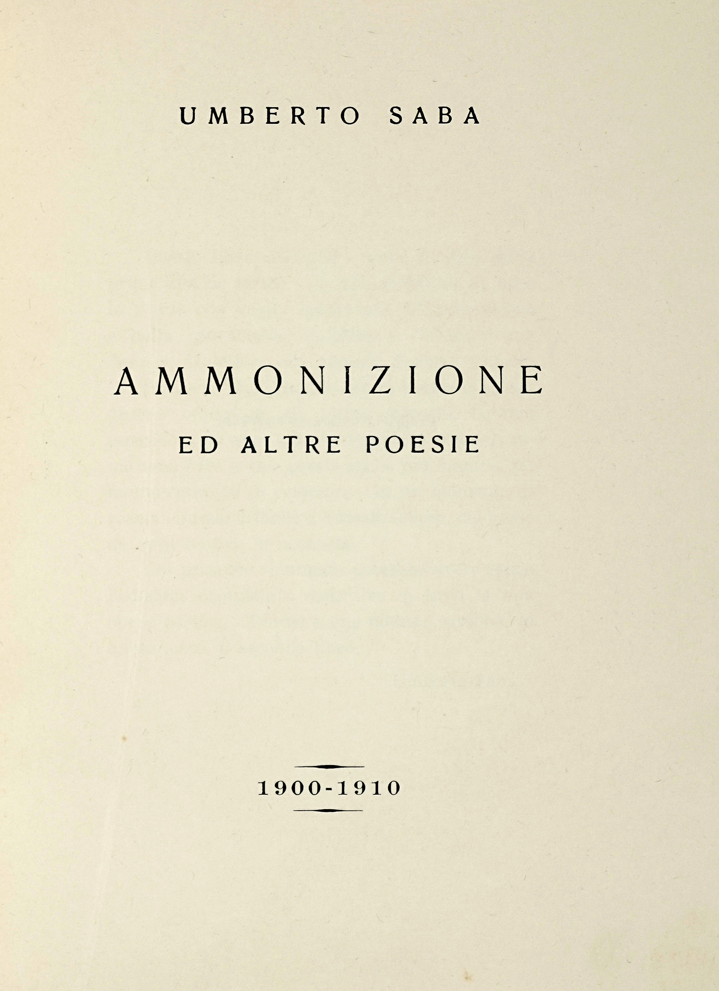 Saba Umberto, Ammonizione ed altre poesie. Trieste: Tipografia Sociale, 1932....