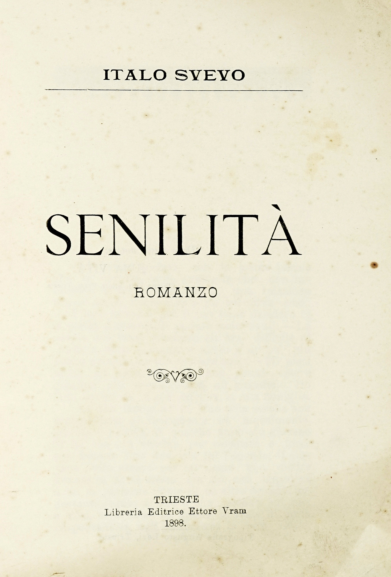 Svevo Italo, Senilità. Romanzo. Trieste: Libreria editrice Ettore Vram, 1898.