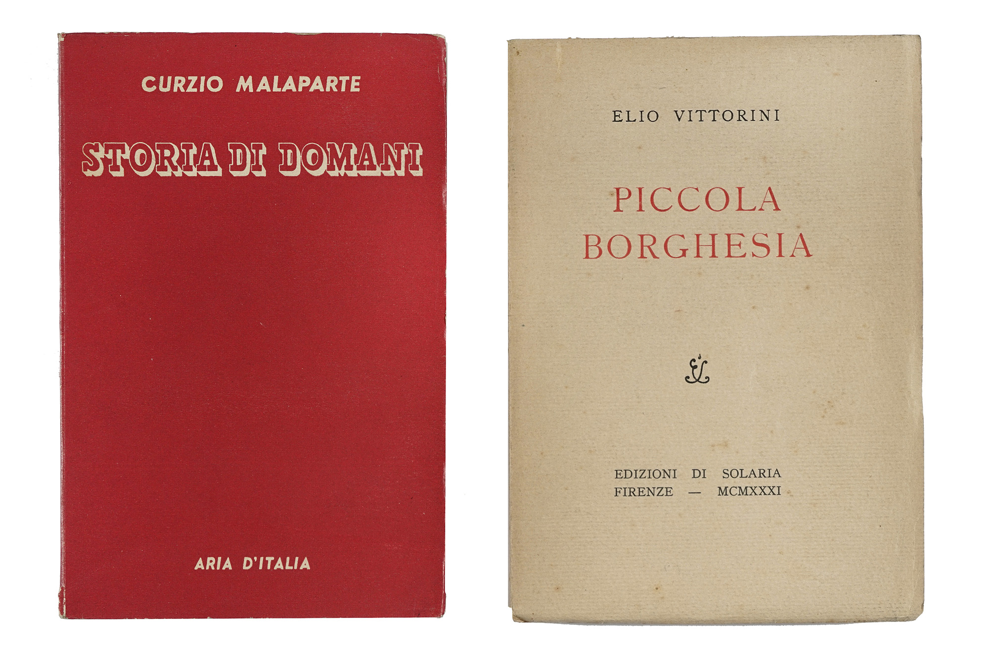 In-8° (mm 195x135). Pagine 217, [7]. Lievi e rare fioriture marginali, altrimenti copia parzialmente intonsa, ben conservata nelle sue barbe. Brossura editoriale con titoli in rosso e nero al piatto e al dorso; pecetta con indicazioni di vendita a quello posteriore. Minime tracce d'uso, altrimenti ottima conservazione. Mancante la sovraccoperta. Tiratura di 300 copie numerate per i prenotatori, mentre il presente esemplare, riservato alla vendita, non riporta numerazione. SI AGGIUNGE: Malaparte Curzio, Storia di domani. Milano: Aria d'Italia, 1949. (2) I OPERA: Prima, rara edizione dell'opera prima di Vittorini. Otto racconti, sei dei quali apparsi, con varianti, su Solaria e altri periodici. Gambetti-Vezzosi 976. II OPERA: Romanzo di fantapolitica apparso sul Tempo, qui in brossura editoriale, nella rara tiratura in 70 esemplari in numeri arabi, su carta colorata, firmati al colophon dall'Autore. Gambetti-Vezzosi 489.