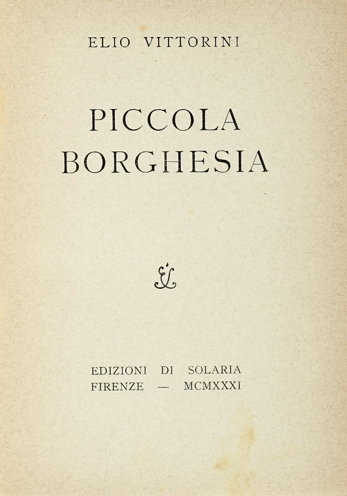Vittorini Elio, Piccola borghesia. Firenze: Edizione di Solaria, 1931.