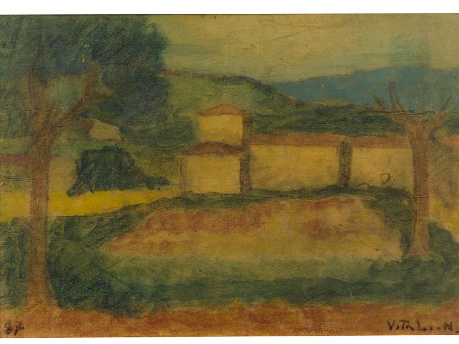 Nazzareno Vitali (XX secolo) Paesaggio Bergamasco Olio su masonite Firmato e...