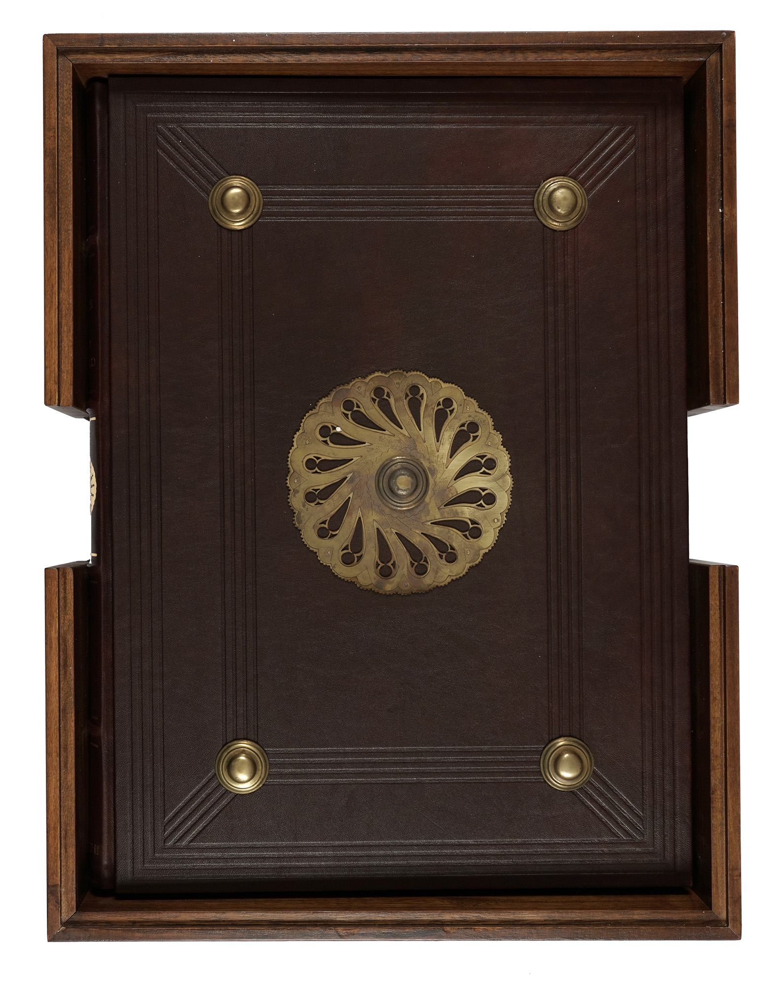In-folio (mm 575x415). Con la riproduzione a colori delle carte originali intervallate da pagine di testo esplicativo. Legatura editoriale in pelle, al piatto anteriore una decorazione impressa a secco con quattro borchie angolari e al centro un doppio rosone in ottone traforato, fermato da una borchia; a quello posteriore quattro borchie angolari e rosone. Entro cofanetto in legno e plexiglass, con titoli in oro al piatto. Tiratura limitata a 600 copie numerate. Presente il certificato di garanzia della Fedrigoni Cartiere S.p.a. e certificato di collaudo. (1) Riproduzione del codice illuminato da Fra Angelico e dal suo allievo Zanobi Strozzi, una splendida panoramica della miniatura fiorentina dell'inizio del Quattrocento.