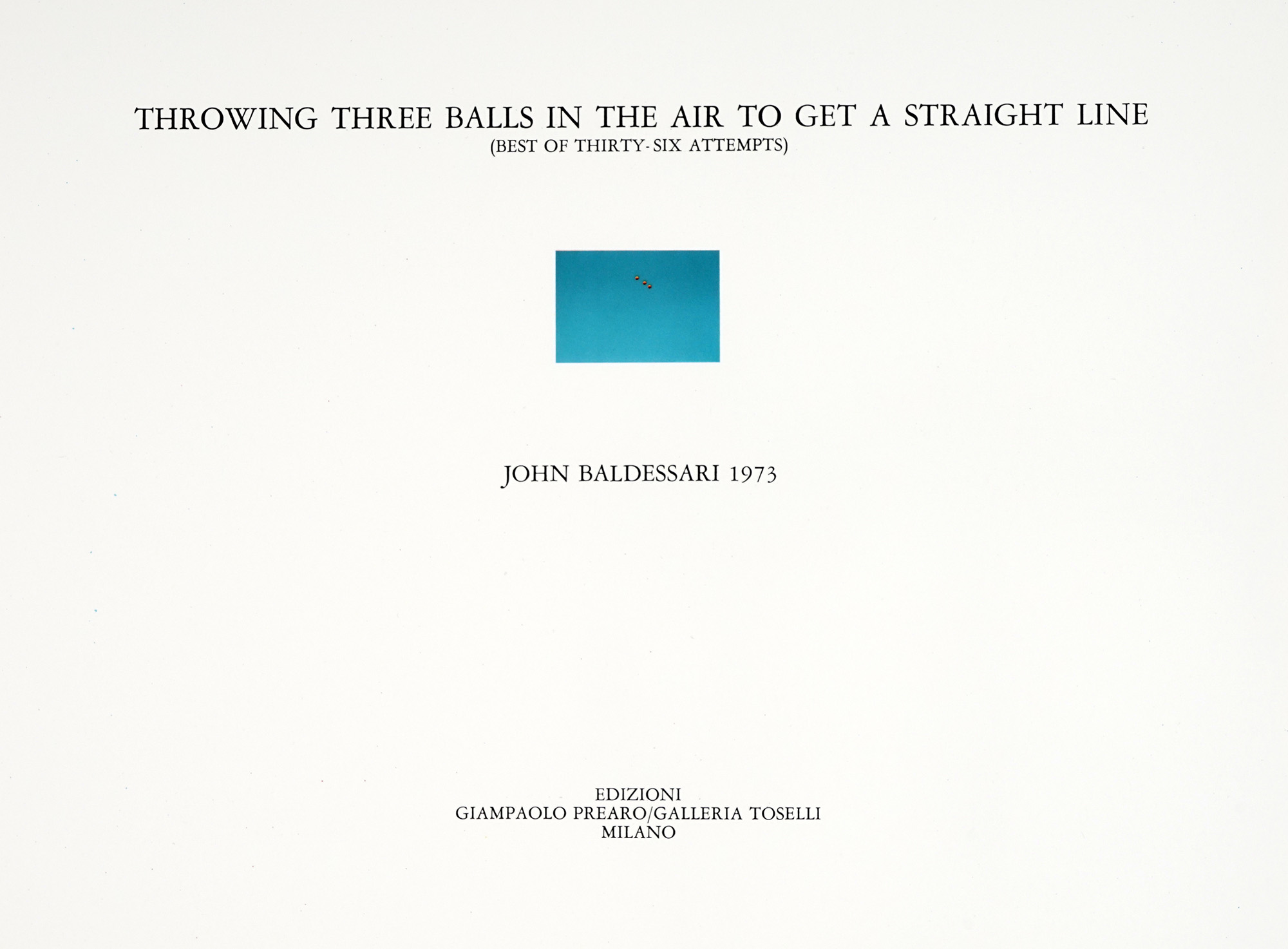 Baldessari John, Throwing Three Balls in the Air to Get a Straight Line. Milano: Giampaolo Prearo editore, 1973.