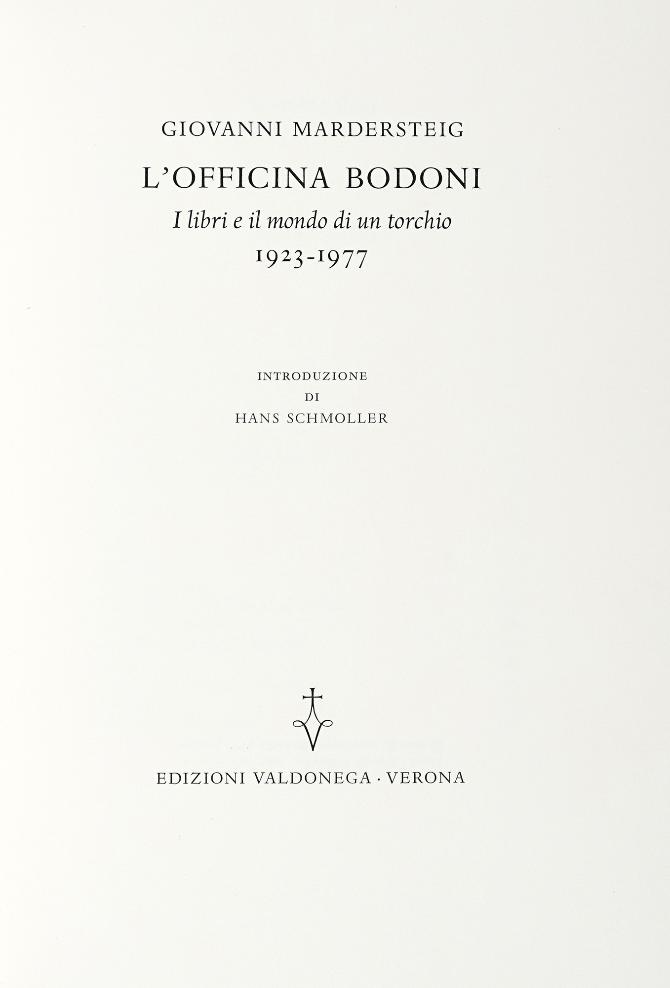 Mardersteig Giovanni, L'Officina Bodoni. I libri e il mondo di un torchio, 1923-1977. Verona: Valdonega, [1980].