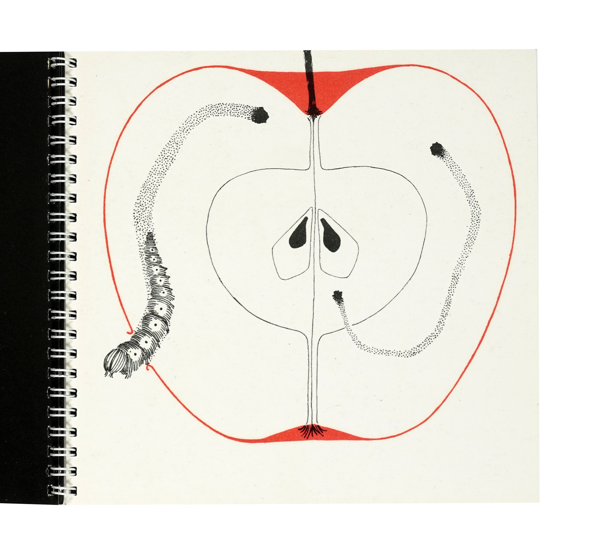 Mari Enzo, La mela e la farfalla. Milano: Casa Editrice Valentino Bompiani, [1964].
