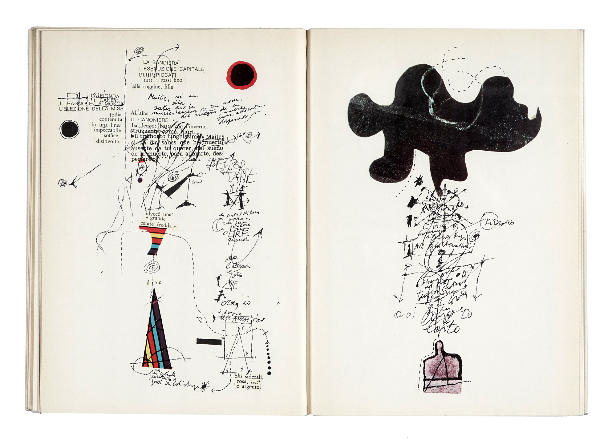 Compongono il lotto: 1) Alviani Getulio, Libro d'ore. 3 Cromogrammi. Macerata: La Nuova Foglio, 1975; 2) Ferrari Vincenzo, O e. Macerata: La Nuova Foglio, 1976; 3) Mussio Magdalo, In pratica. Roma: Lerici Editore, 1968; 4) Corneille Pierre, Journal de la tour. Macerata: La Nuova Foglio, 1975; 5) Gajani Carlo, Ritratto-identità-maschera. Macerata: La Nuova Foglio, 1976; 6) Barilli Renato, Parlare e scrivere. Macerata: La Nuova Foglio, 1977; 7) La città di riga. Volume 1 e 2 (tutto il pubblicato). Macerata: La Nuova Foglio, 1976-77. Elenco completo disponibile su richiesta. (15) Magdalo Mussio, artista toscano che all'inizio degli anni '60 entra a pieno titolo nel mondo della sperimentazione visiva e letteraria che girava attorno a nuove correnti letterarie e artistiche (come la poesia visuale) e a nuove forme di editoria e grafica, negli anni '70 inizia la sua attività di direttore artistico della casa editrice La Nuova Foglio di Giorgio Cegna, specializzata in pubblicazioni preziose, libri d'artista e opere in edizione limitata, nonché punto di riferimento nazionale per artisti come Claudio Parmiggiani, Remo Brindisi, Lisetta Carmi, Luca Maria Patella, Julio Le Parc, Carmelo Bene e molti altri. Un rapporto privilegiato viene poi tessuto con gli artisti Emilio Vedova e Guillaume Corneille del gruppo CO.BR.A. V OPERA: «Questo libro è un libro di facce e di discorsi sulla faccia [...]. Cos'è una faccia? Cos'è una maschera? Cos'è un ritratto? A queste domande rispondono i ritratti, in una serie di interventi che aprono il discorso ai più vari problemi, ma anche a tutti i fantasmi dell'identità. Questo libro è un libro di pittura: didattica su come si può fare un ritratto all'uomo moderno. E' un libro di azioni comportamentistiche: contrasti tra chi non vuole perdere la faccia e chi gliela vuole catturare. E' infine un libro di riflessioni sui problemi dell'identità, della maschera, della persona e le sue apparenze...» (dal risvolto di copertina). Prima edizione di 600 esemplari numerati. VI OPERA: Saggio steso in occasione di una settimana di animazione culturale presso la Galleria La Tartaruga di Roma, dal 14 al 19 aprile 1975, con le opere di Vincenzo Accame, Vincenzo Agnetti, Ugo Carrega, Bruno Di Bello, Vincenzo Ferrari, Ketty La Rocca, Roberto Sanesi e molti altri.