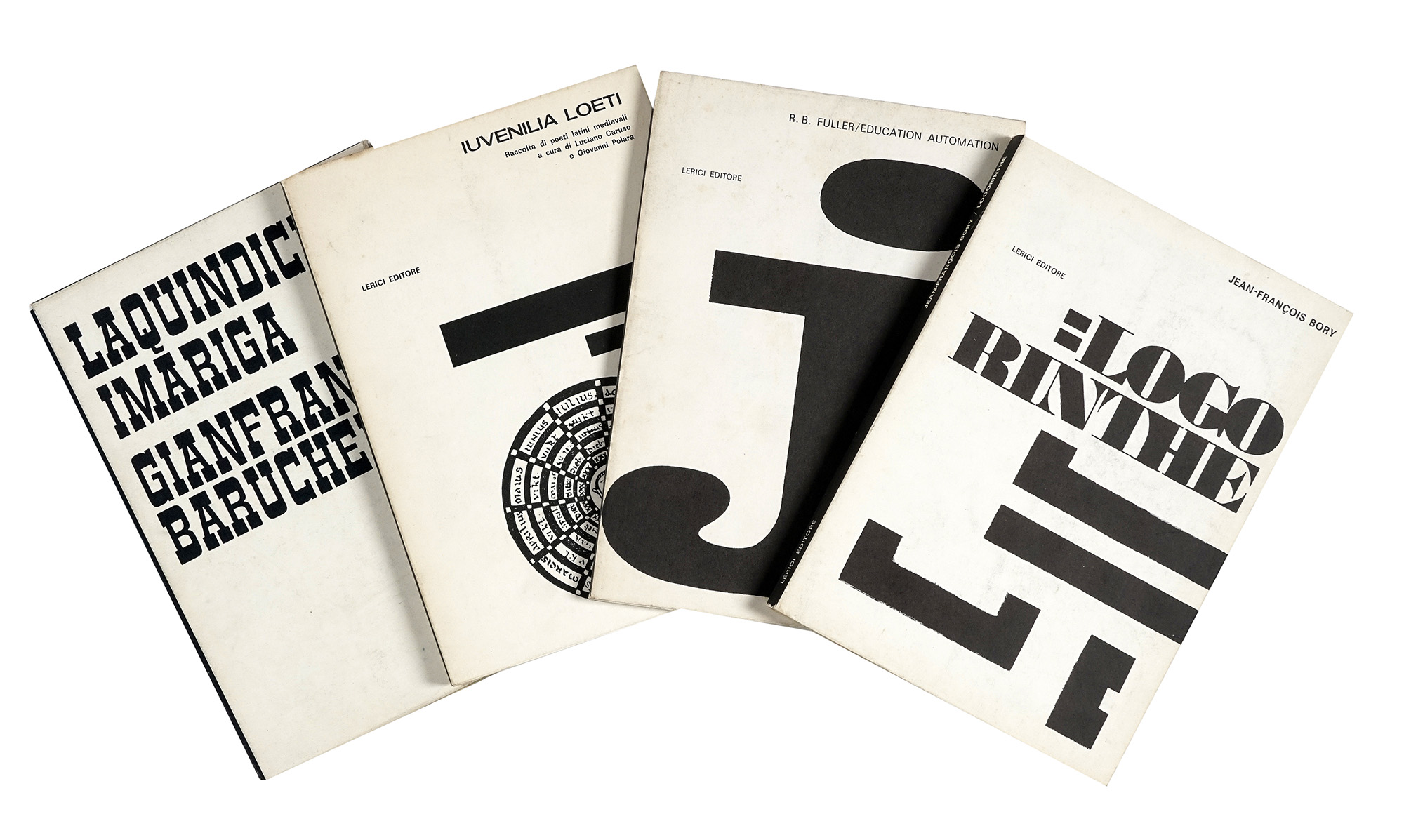 Compongono il lotto: 1) Zannino Adriano, Superegg. Roma: Lerici, 1968; 2) Barucchello Gianfranco, La quindicesima riga. Roma: Lerici, 1968; 3) Sandri Giovanna, Capitolo zero. Roma: Lerici, 1969; 4) Teatro delle mostre. Roma: Lerici, 1968; 5) Iuvenilia loeti. Raccolta di poeti latini medievali a cura di Luciano Caruso... Roma: Lerici, 1969; 6) Tropico n.1. Roma: Lerici, 1969; 7) Alternative attuali 2. Rassegna internazionale di pittura, scultura, grafica. Roma: Lerici, 1965. Elenco completo disponibile su richiesta.