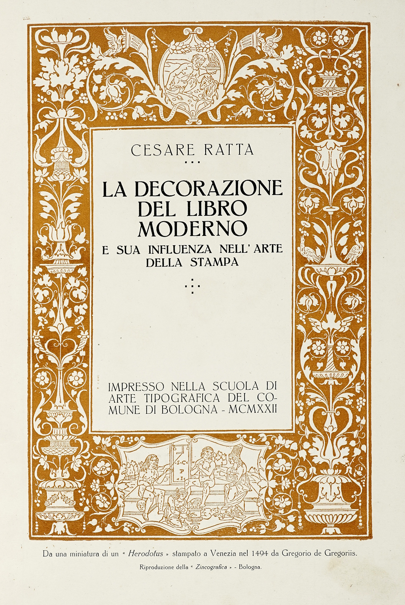 Ratta Cesare, La decorazione del libro moderno. Sua influenza nell'arte della stampa. Bologna: Scuola di Arte tipografica, 1922.