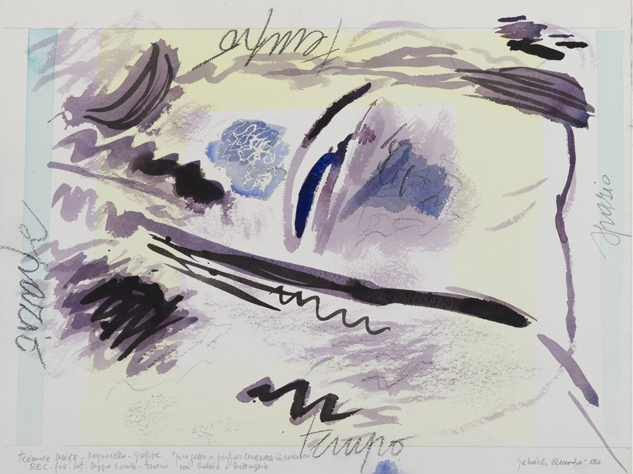 Gabriele Amadori (Ferrara 1945) Progetto per performance in concerto con Stefano Battaglia e Michele Rabbia Tecnica mista, acquarello e grafite Firmato e datato 2010 Senza cornice Misure 58x76 cm