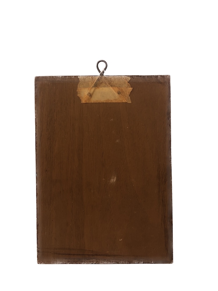 Angelo Bragalini (Fidenza 1913 - Bologna 1994). Giocatore di briscola 1988. Disegno su carta applicata a tavoletta. Cm. 24x17,5.