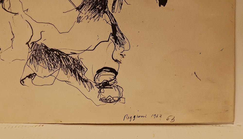Pino Reggiani (Forlì 1937 - Roma 2022). Senza titolo, 1963. China su carta. Firmata e datata in basso a destra Reggiani 1963. Al verso due disegni. Cornice coeva in noce. Cm. 40x49,50. In cornice cm 45x52.