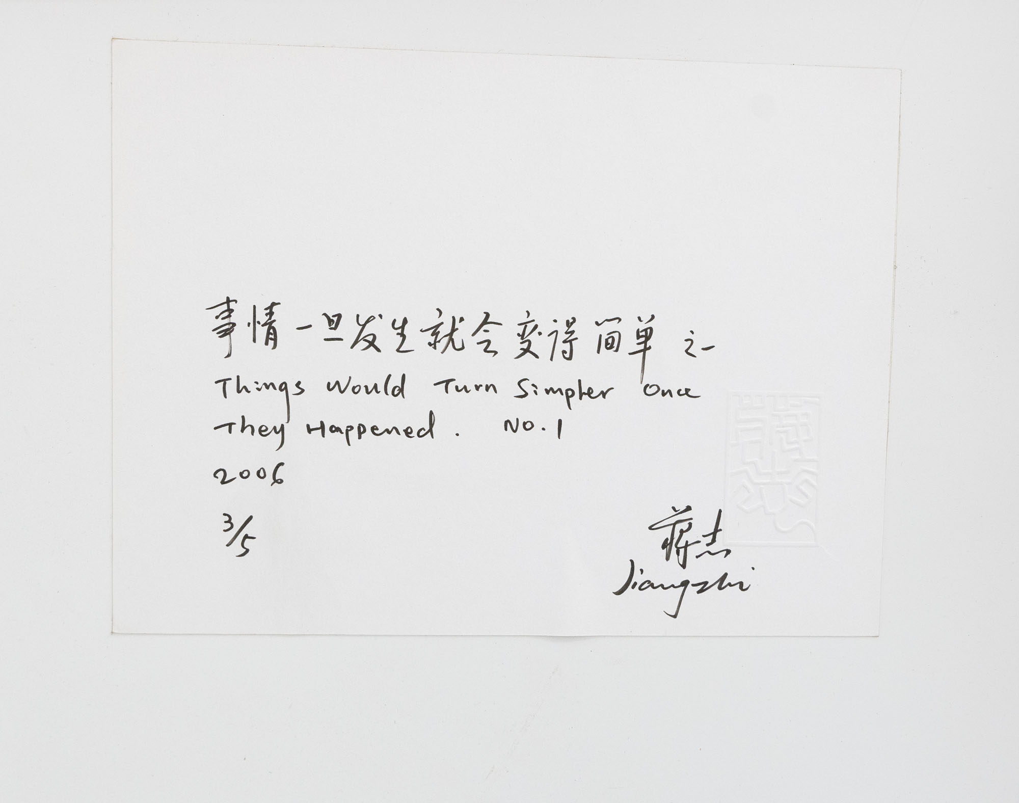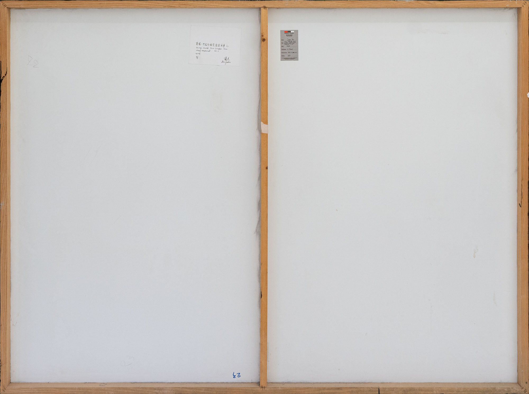 Firma, data, numerazione e titolo su etichetta al retro