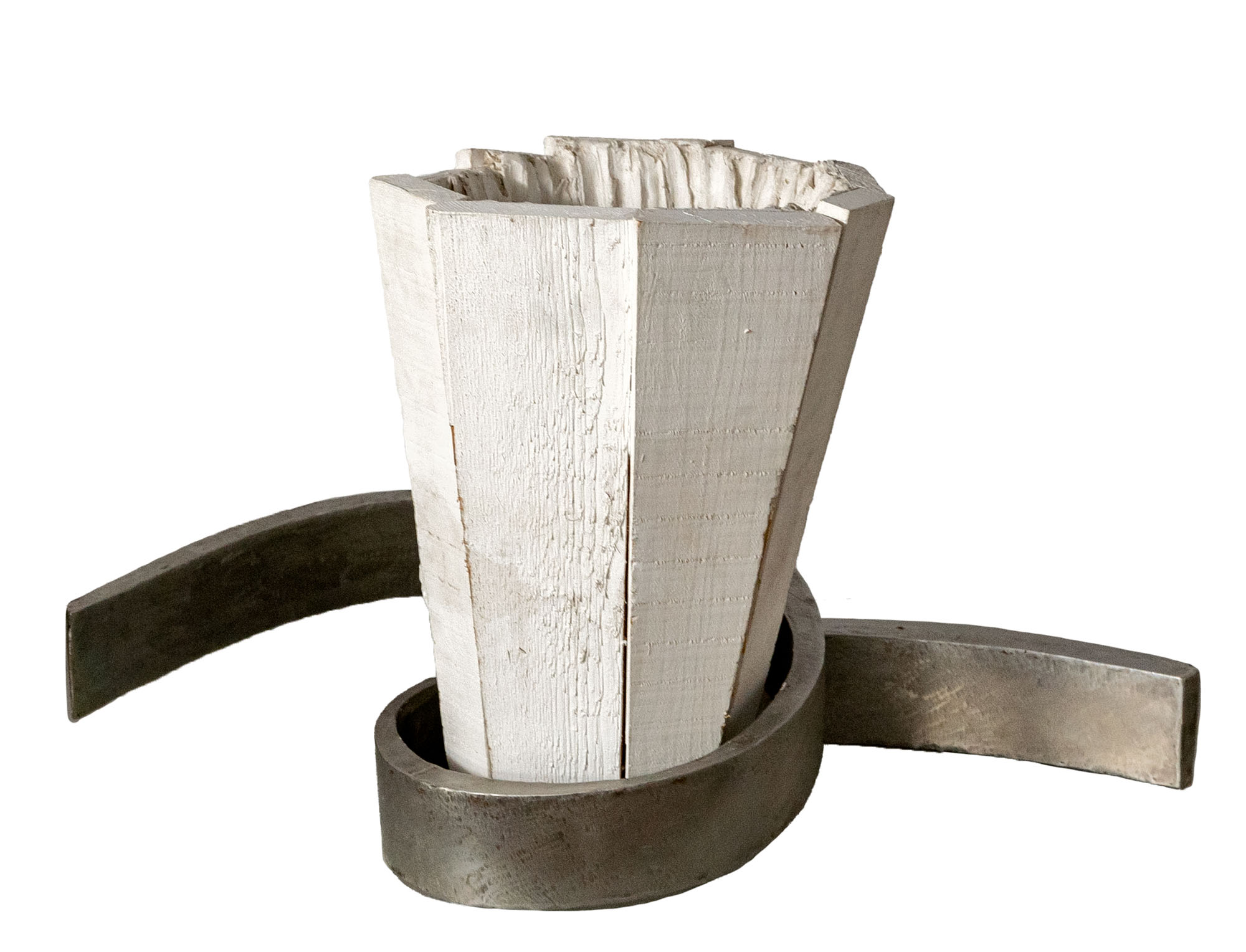 ULRICH EGGER(1959)Energy of white1999Scultura in acciaio, legno e gesso80 x 80 x 35 cm circaPROVENIENZA:Collezione privata, MilanoBIBLIOGRAFIA:AA.VV, Ulrich Egger, Spazia Galleria d'Arte, 1999, p. 59 (ill.)