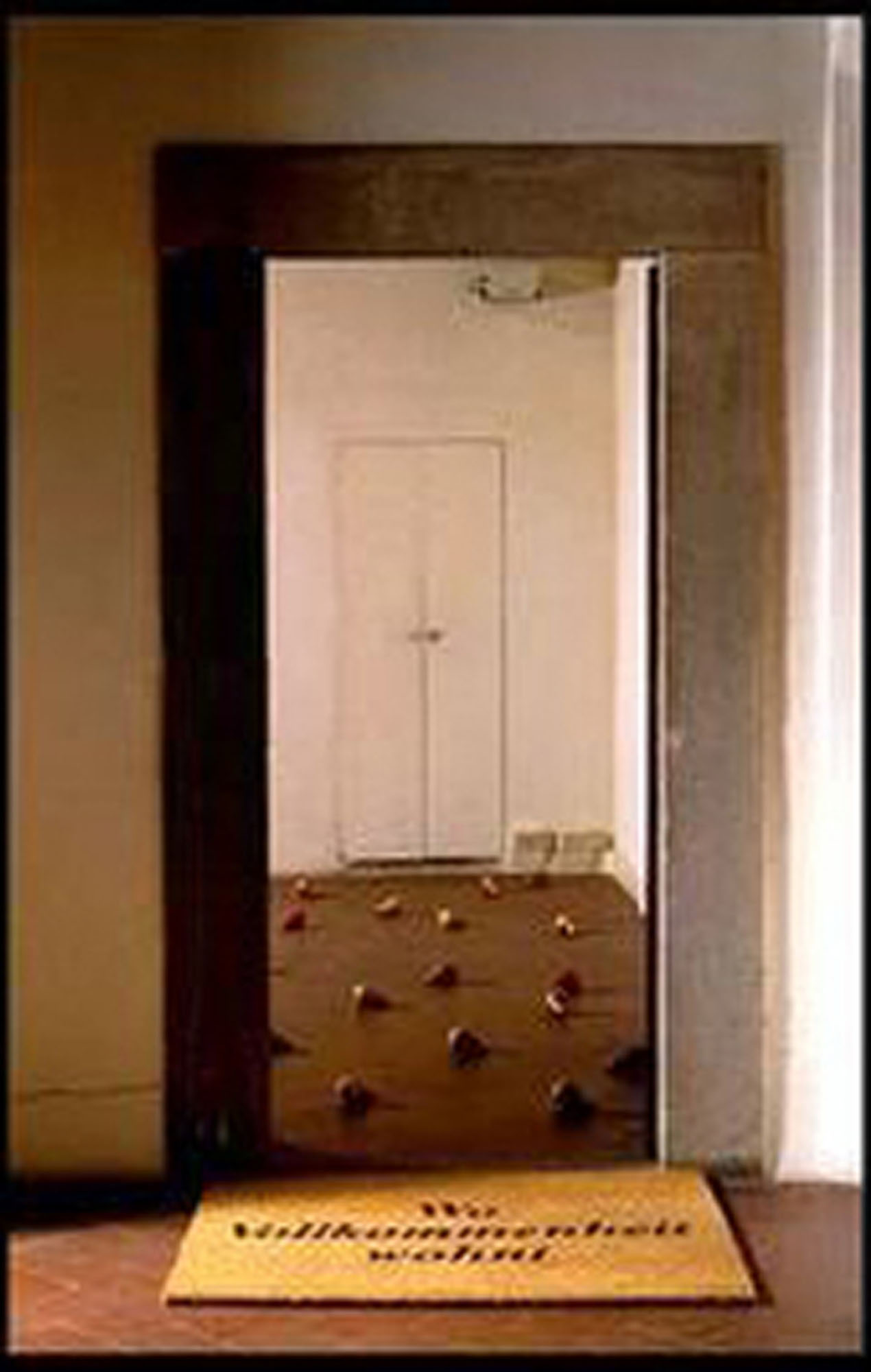MARIO AIRÒ(1961)Welcome: di gialle pere sparse1997Installazione composta da 36 pere di plastica e serigrafia su zerbino, esemplare unicoDimensioni variabiliDimensioni zerbino: 105 x 85 x 2 cmPROVENIENZA:Galleria Massimo De Carlo, MilanoCollezione privata, MilanoESPOSIZIONI:27 giugno - 12 ottobre 1997, Casa Masaccio, San Giovanni ValdarnoBIBLIOGRAFIA:AA.VV., Casa Masaccio, catalogo della mostra, 1997