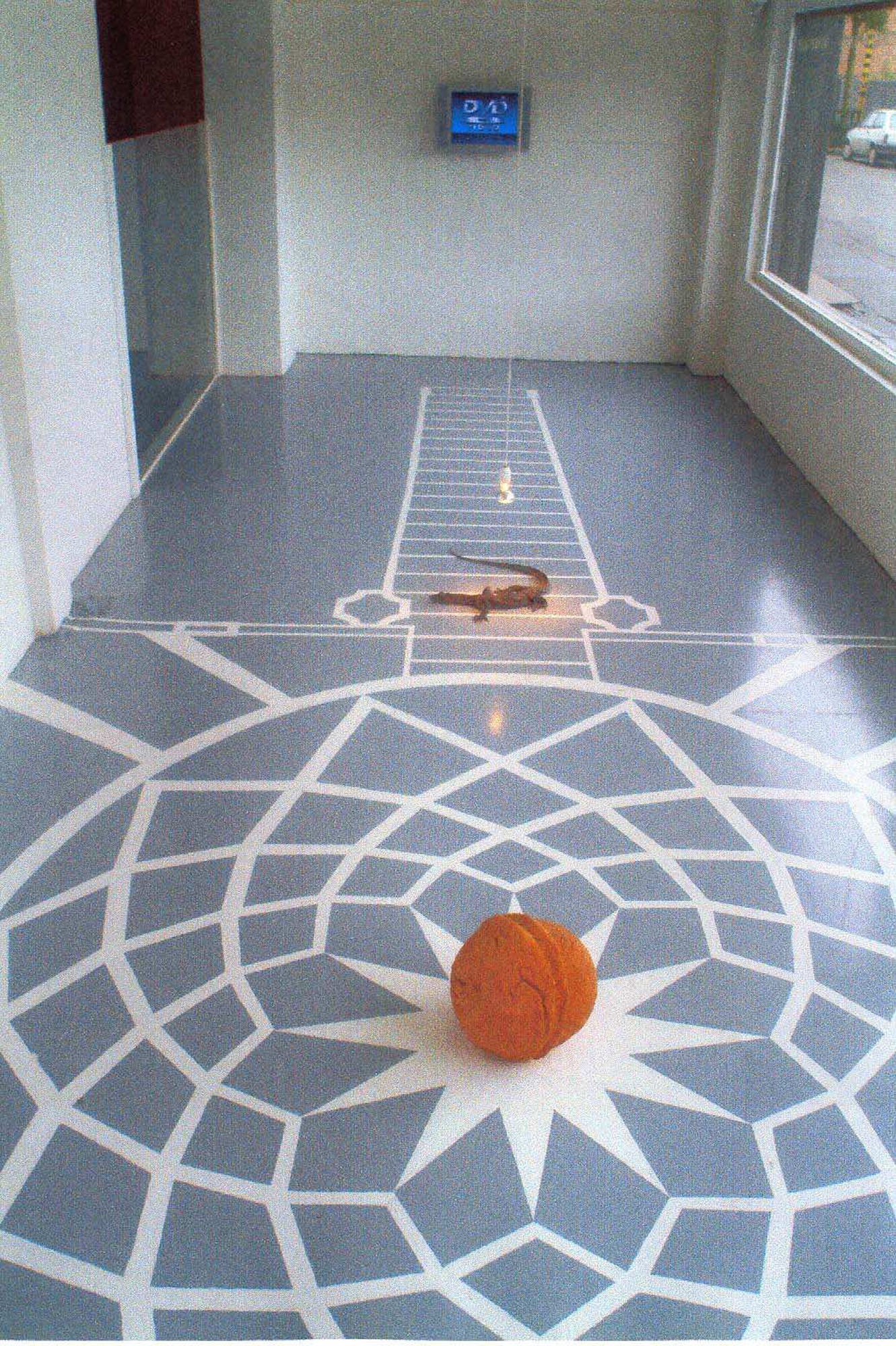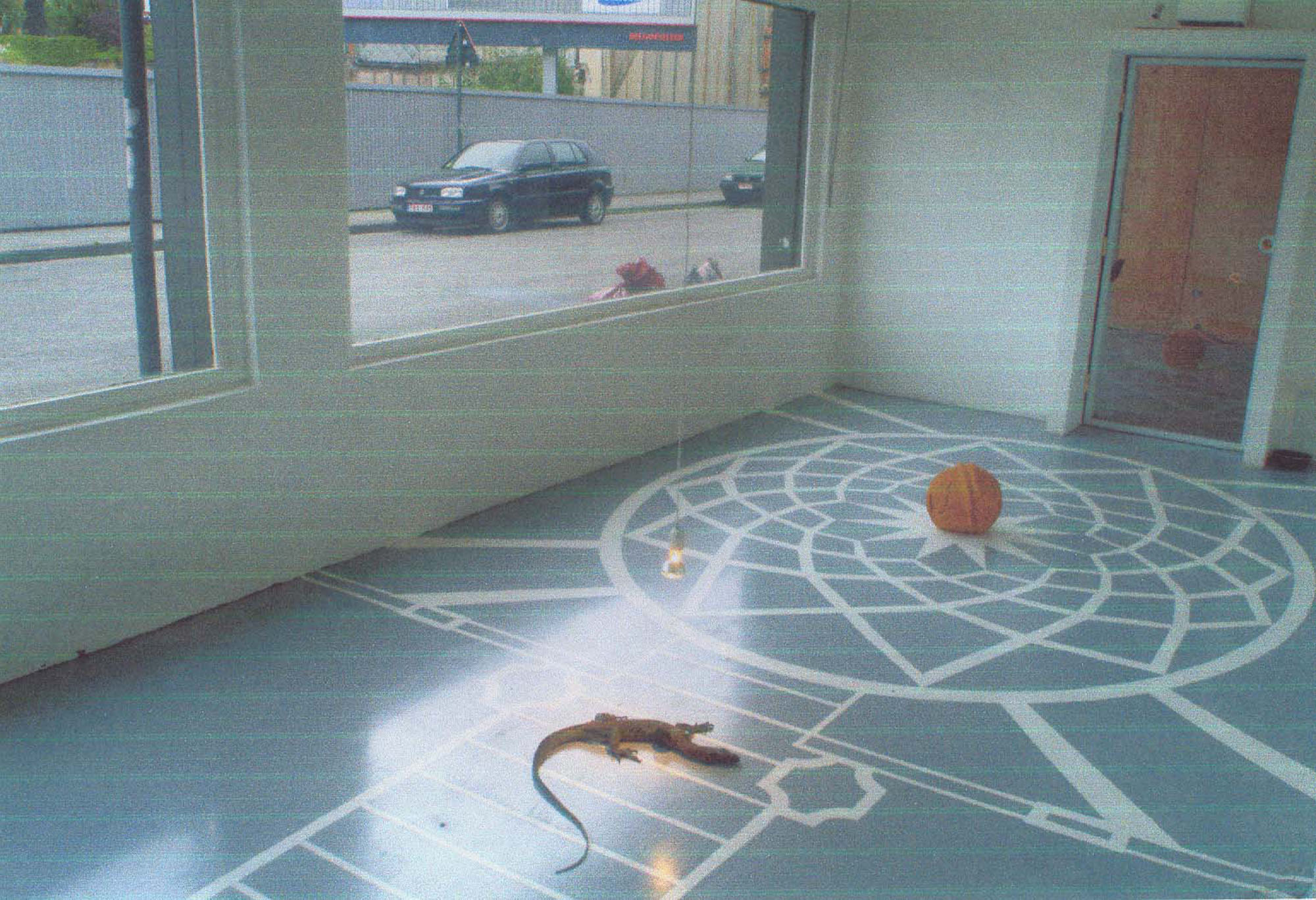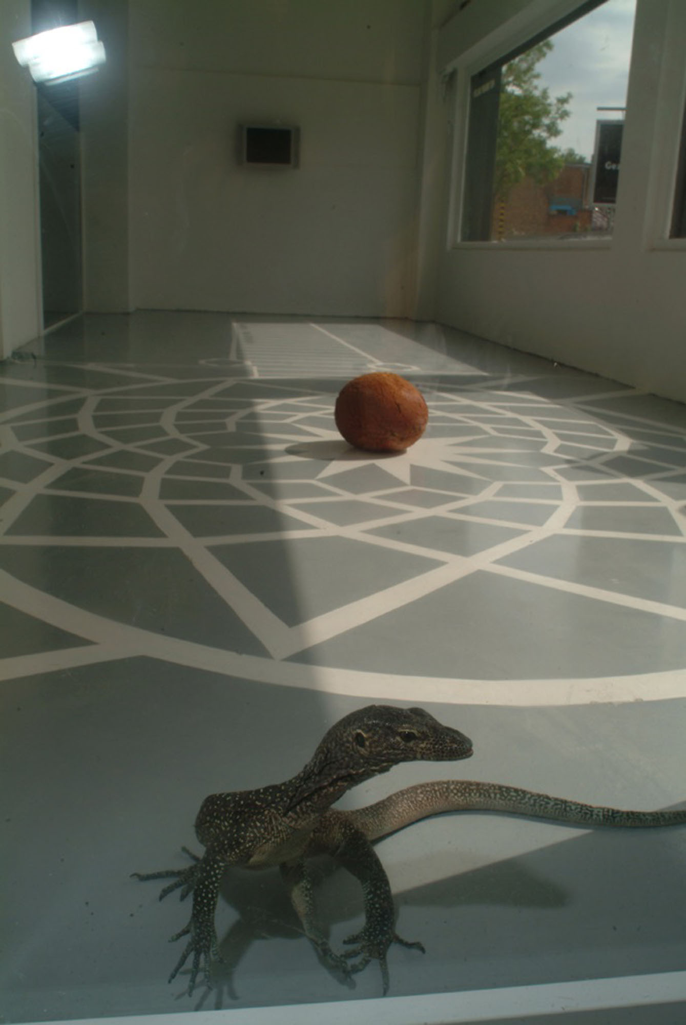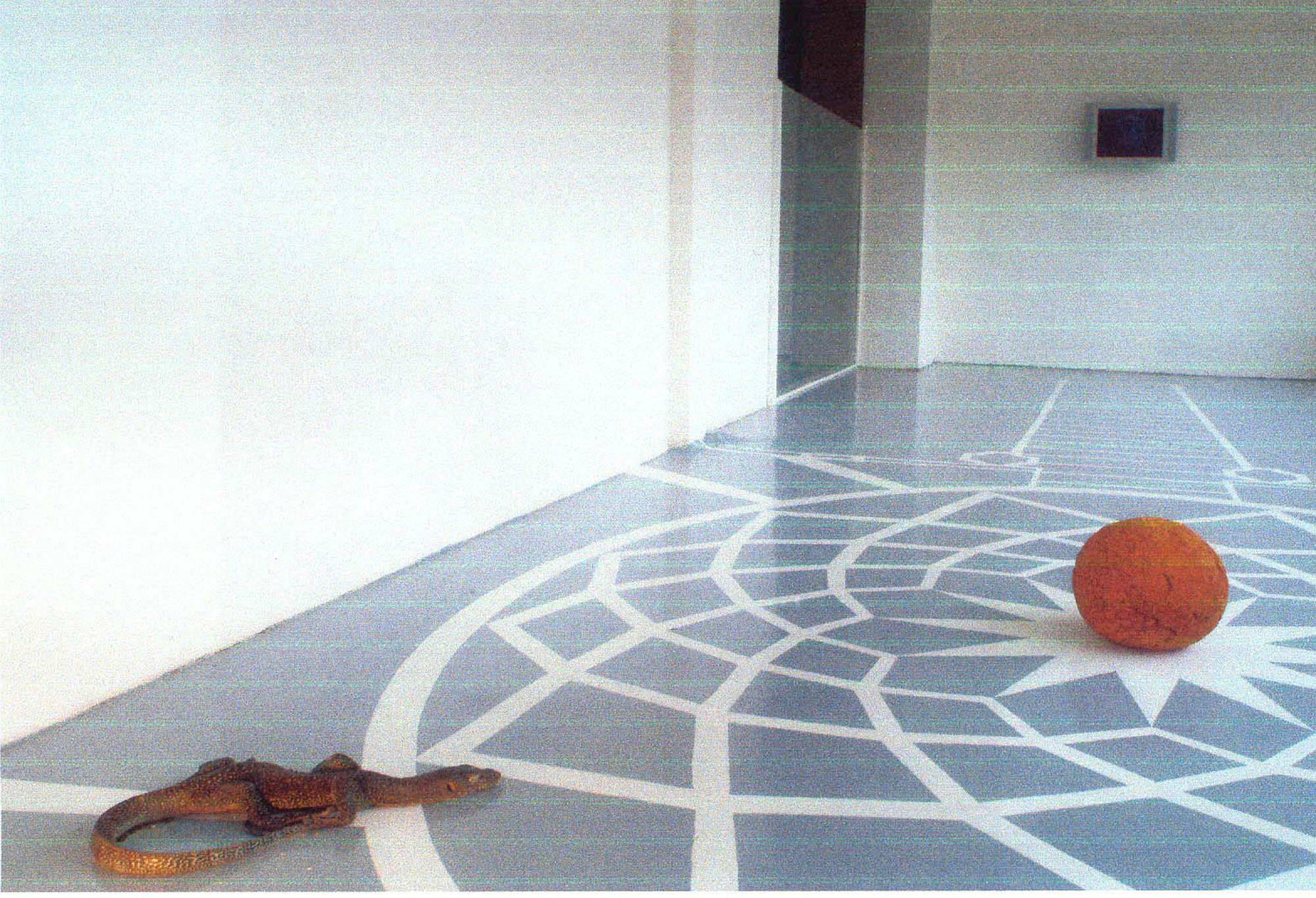 PIETRO ROCCASALVA(1970)DeMorgen2006L'opera consiste nel certificato di autenticità a cura della Hoet Bekaert Gallery, Gand che dà diritto a ricreare l'installazione composta da disegno a pavimento, varano dalla coda azzurra, sfera di riso impanato e fritto, lampadina, monitor e DVDVengono forniti il DVD, il fornello e la pentola per la prepaparazione dell'arancino e il cd con le istruzioni per la realizzazione del disegno a pavimentoDimensioni ambientaliDiametro sfera di riso 35 cmOpera accompagnata da cartificato di autenticità a cura della Hoet Bekaert Gallery, GandPROVENIENZA:Hoet Bekaert Gallery, GandCollezione privata, MilanoESPOSIZIONI:2006, De Morgen, Hoet Bekaert Gallery, Gand