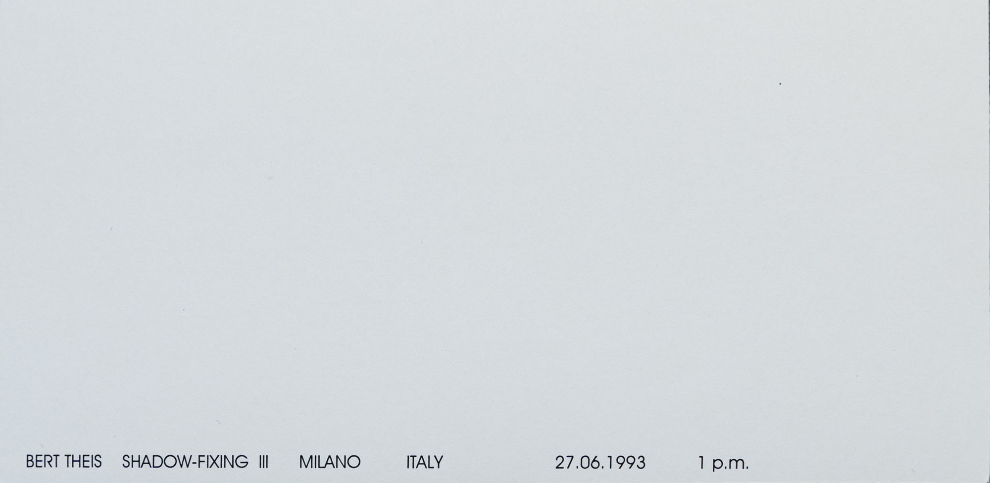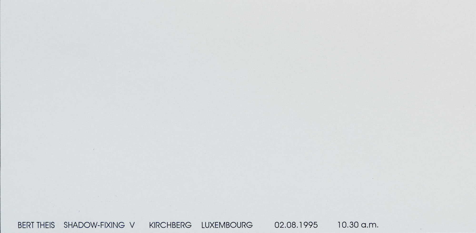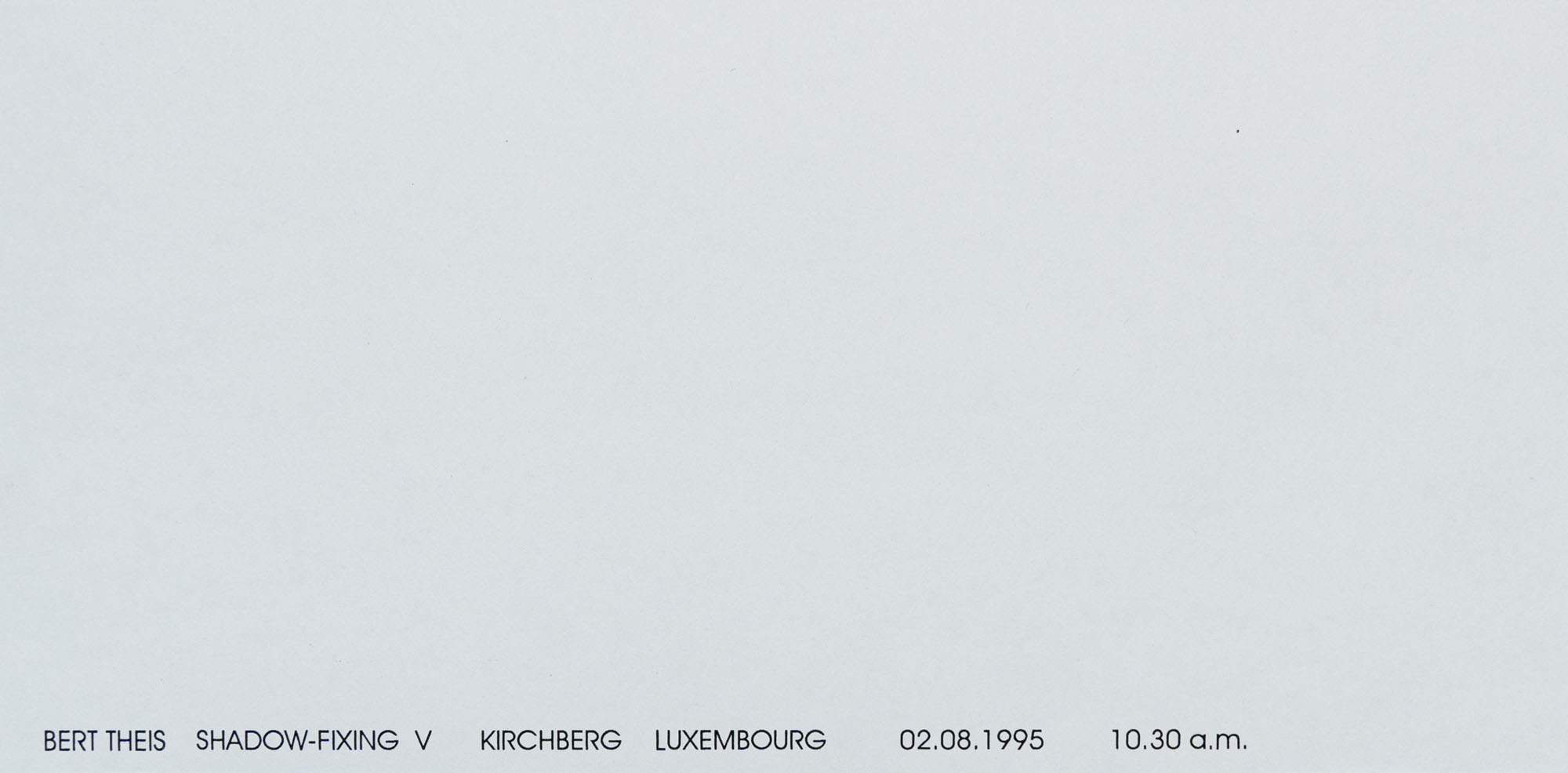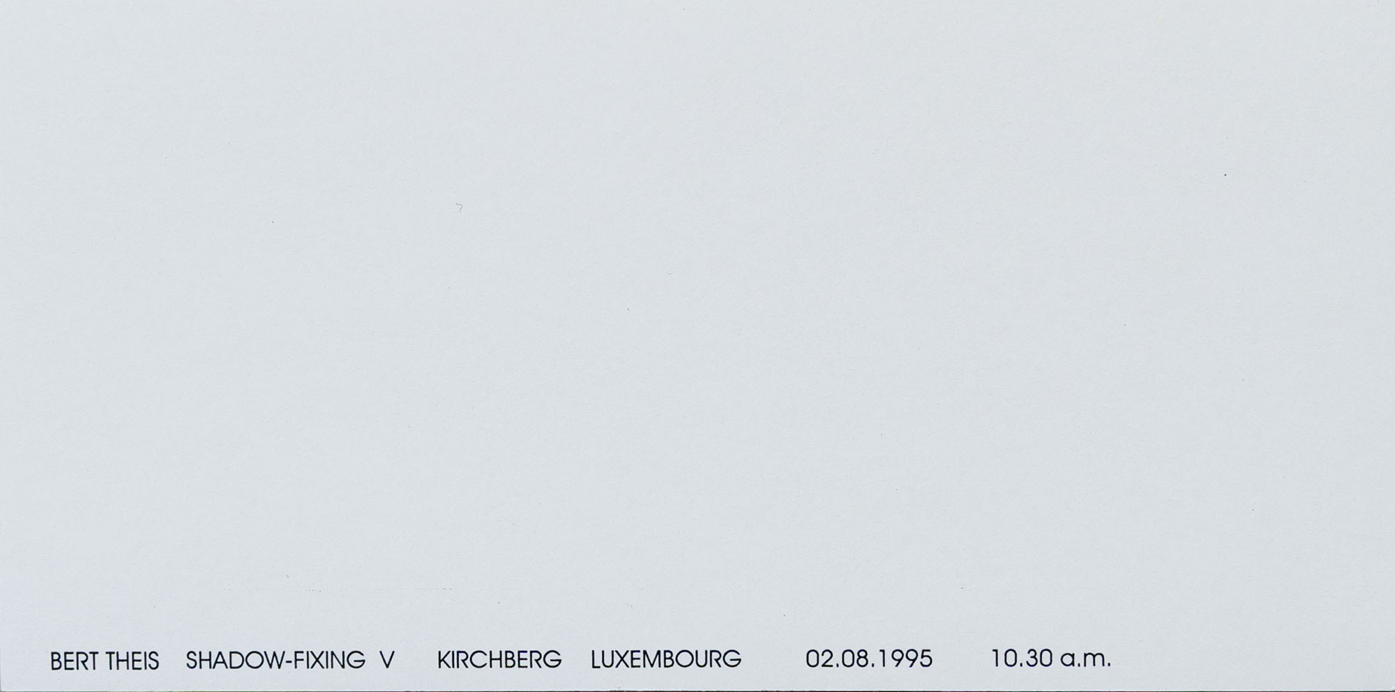 BERT THEIS(1952 - 2016)Shadow-fixing1995Cofanetto comprendente 17 stampe, es. 15/20Dimensioni di ciascuna stampa: 9 x 18 cmDimensioni complessive: 10,5 x 19,5 cmFirma, data e numerazione al retro di una stampaOpera registrata presso l'Archivio Bert Theis, HeffingenPROVENIENZA:Collezione privata, LeccoESPOSIZIONI:30 marzo - 25 agosto 2019, Building Philosophy - Cultivating Utopia, Mudam, Lussemburgo