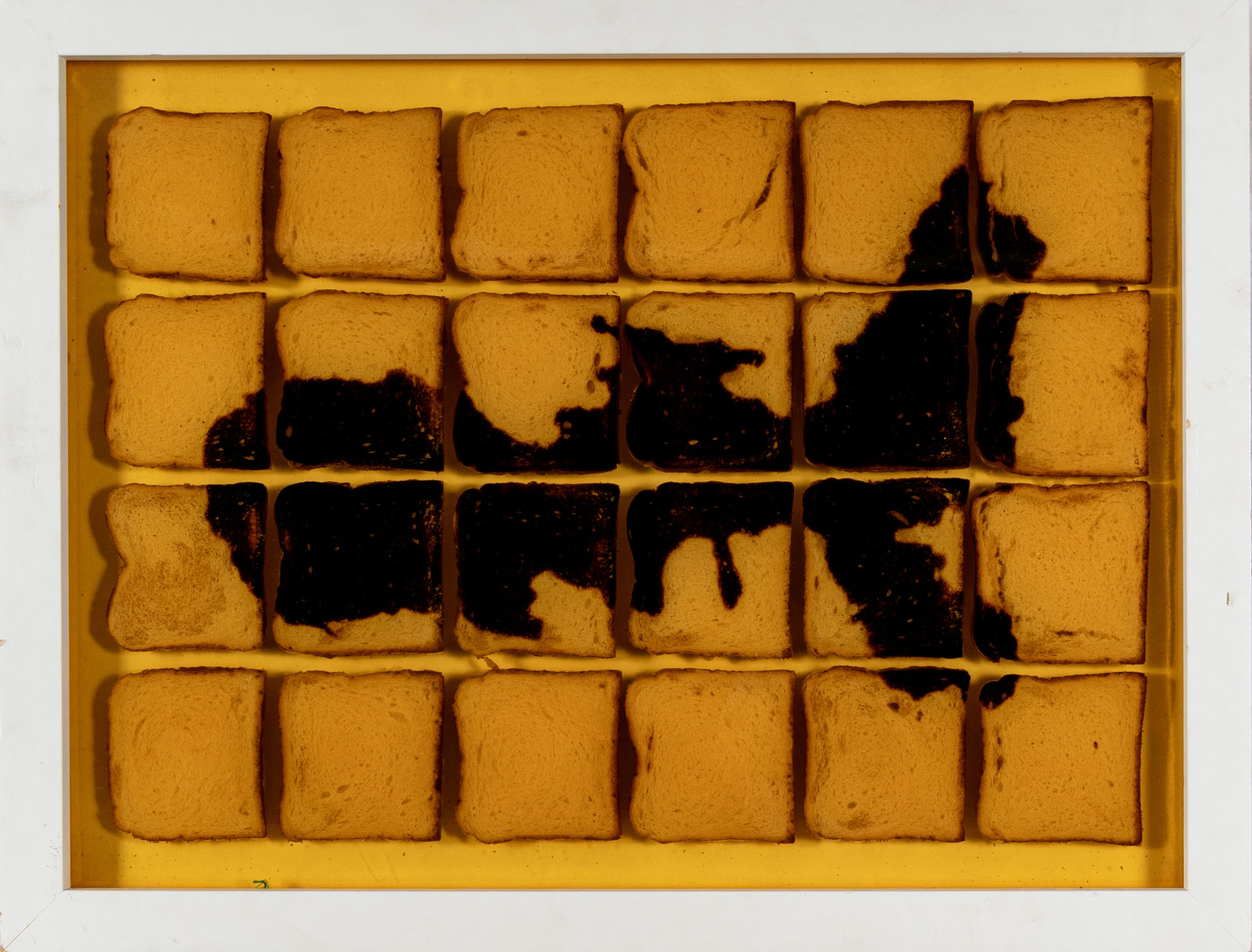 DAVID REIMONDO(1972)Elba2009Fette di pane tostato in blocco di resina55 x 72,5 cmFirma e data al retroOpera accompagnata da certificato di autenticità a cura di Fabbrica Eos, MilanoPROVENIENZA:Fabbrica Eos, MilanoCollezione privata, Milano