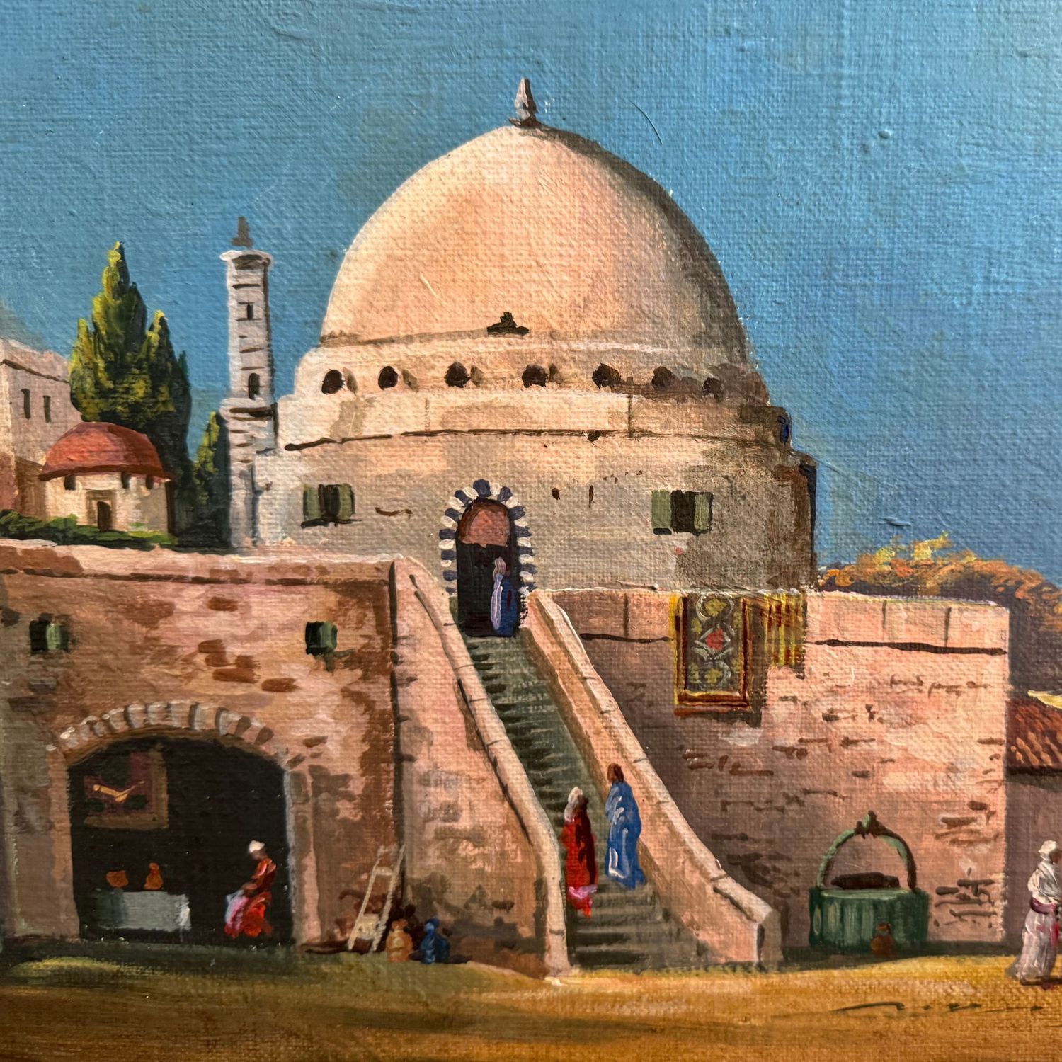 Dipinto olio su tela, periodo XX secolo scuola Italiana, raffigurante Scorcio di Istanbul. Dimensioni interno cornice: 57,5x30,5 cm. Reca firma in basso a destra da artista non identificato.