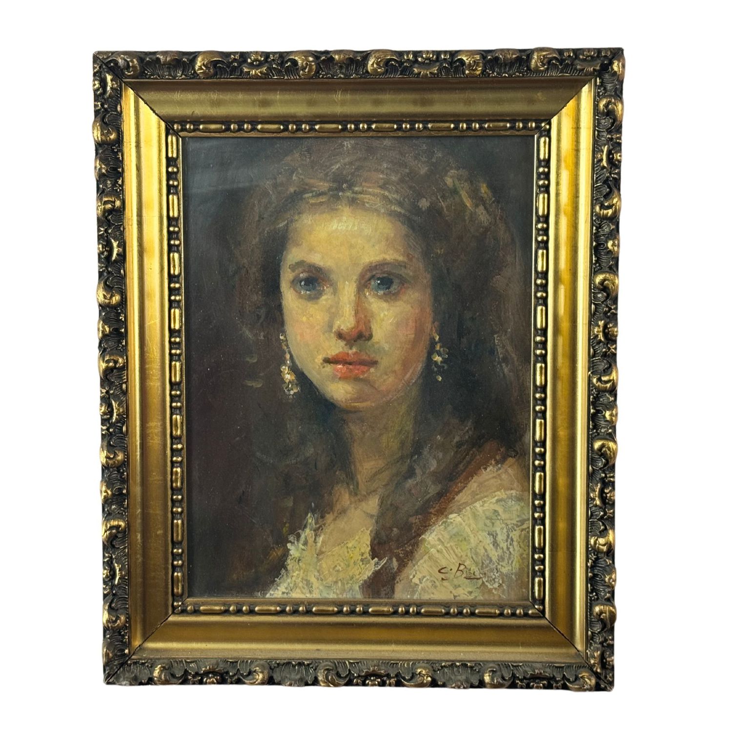 Dipinto olio su tavola, periodo XX secolo scuola Italiana, raffigurante Ritratto di donna nella maniera impressionista. Dimensioni interno cornice: 25x33 cm. Dimensioni compreso cornice: 34x43 cm. Reca firma in basso a destra da artista non identificato. Opera in buone condizioni.
