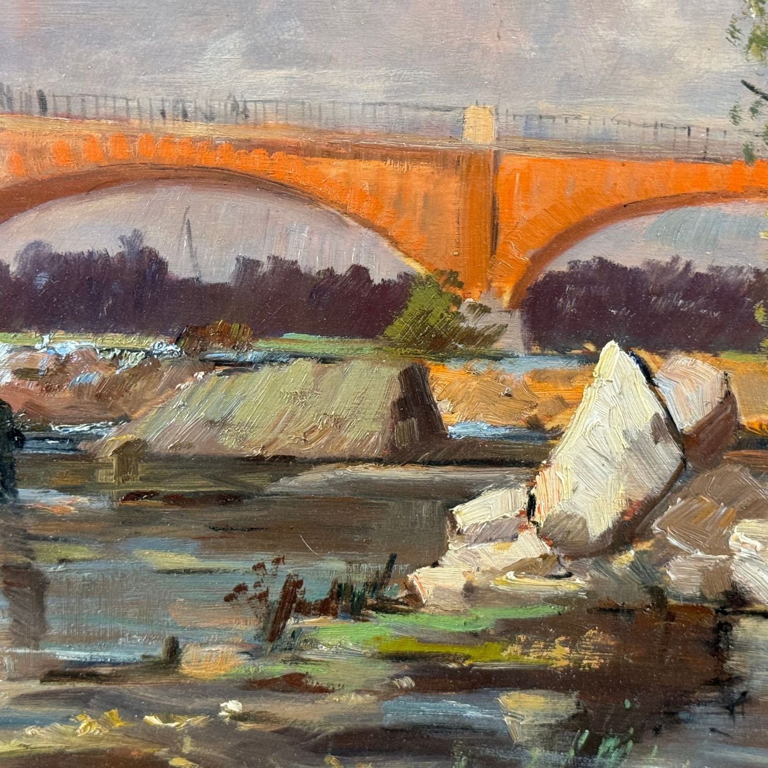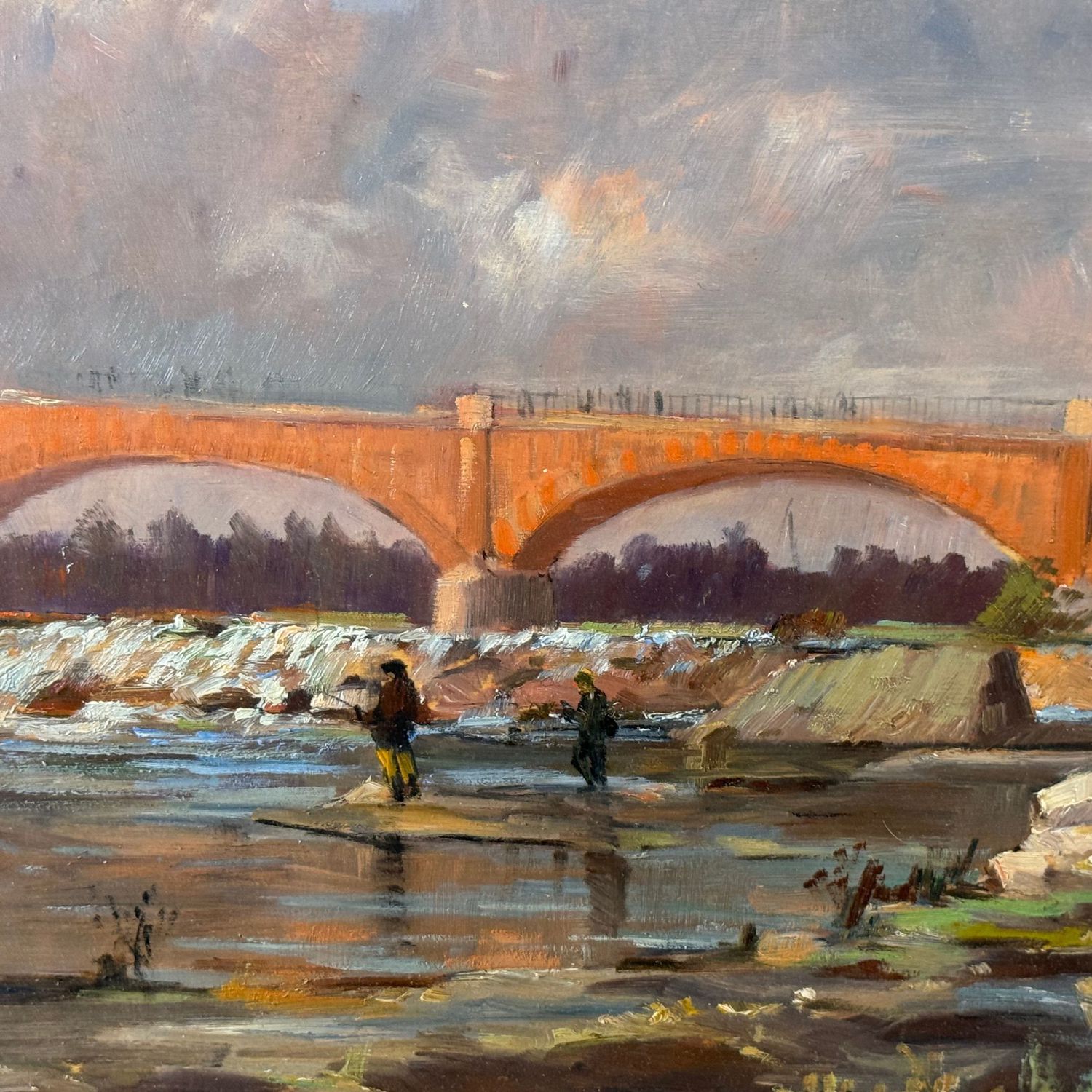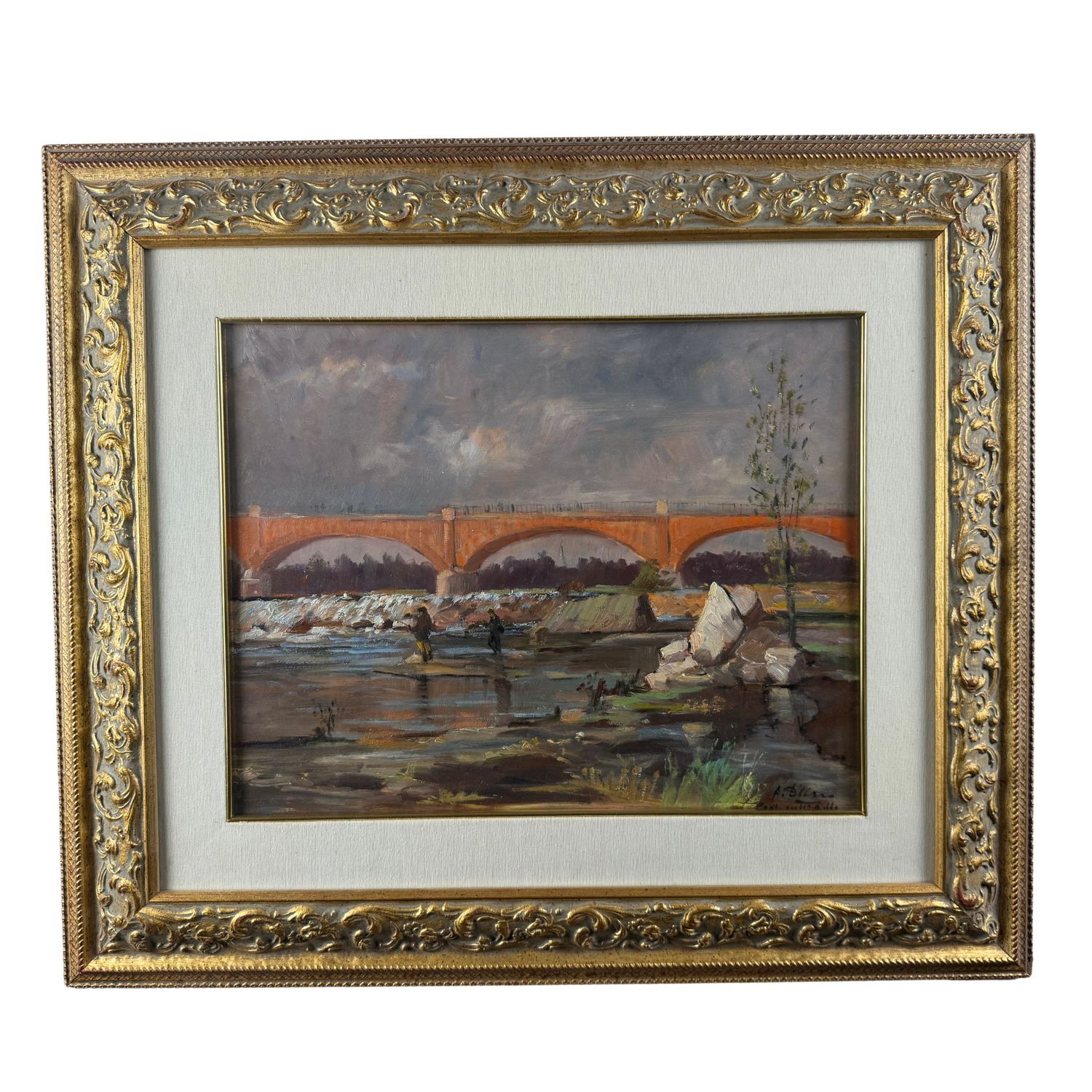Dipinto olio su tavola, periodo XX secolo scuola Italiana raffigurante Paesaggio con ponte. Dimensioni interno cornice: 45x35 cm. Dimensioni compreso cornice: 67x58 cm. Firma basso a destra da Antonio D'Urso (1934 - 2015). Opera in buone condizioni.