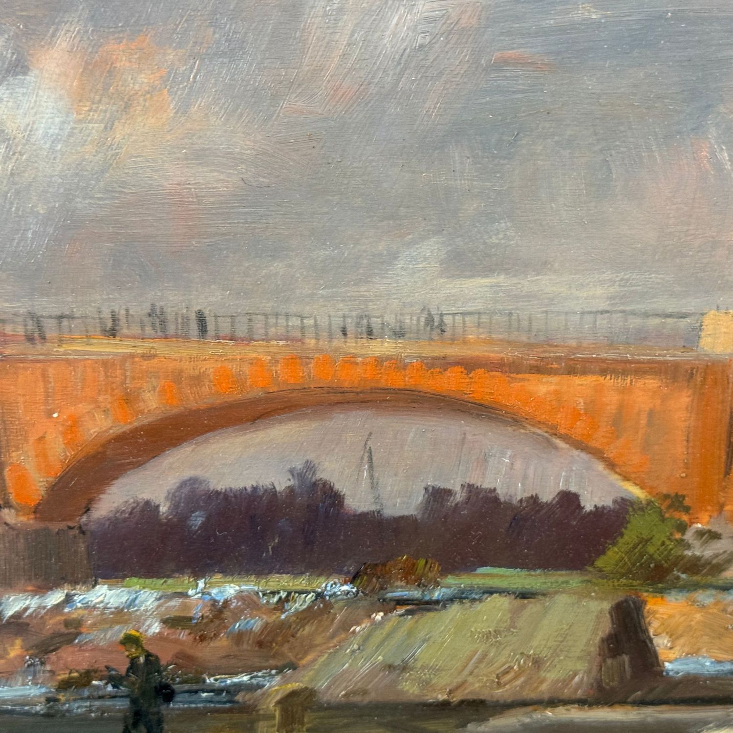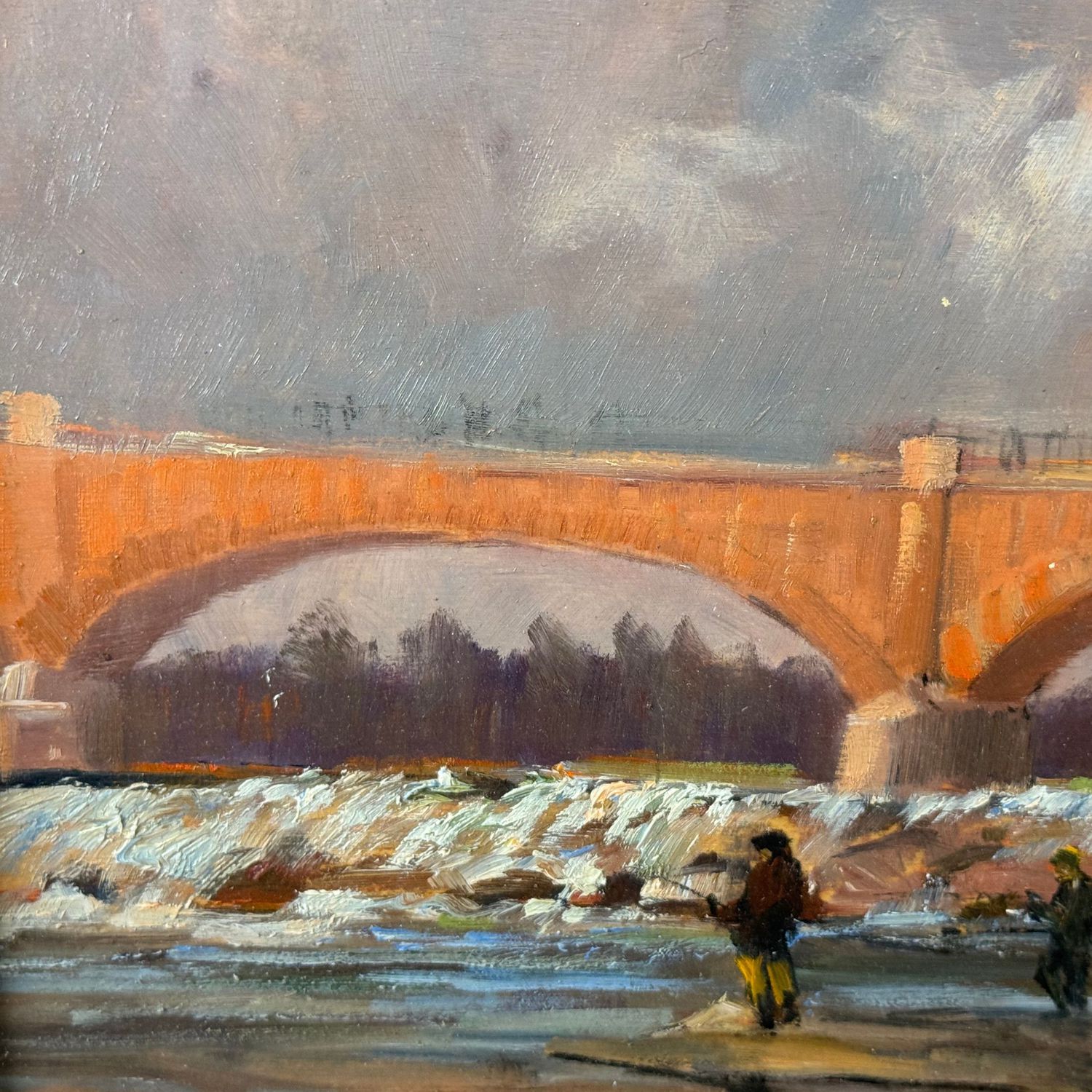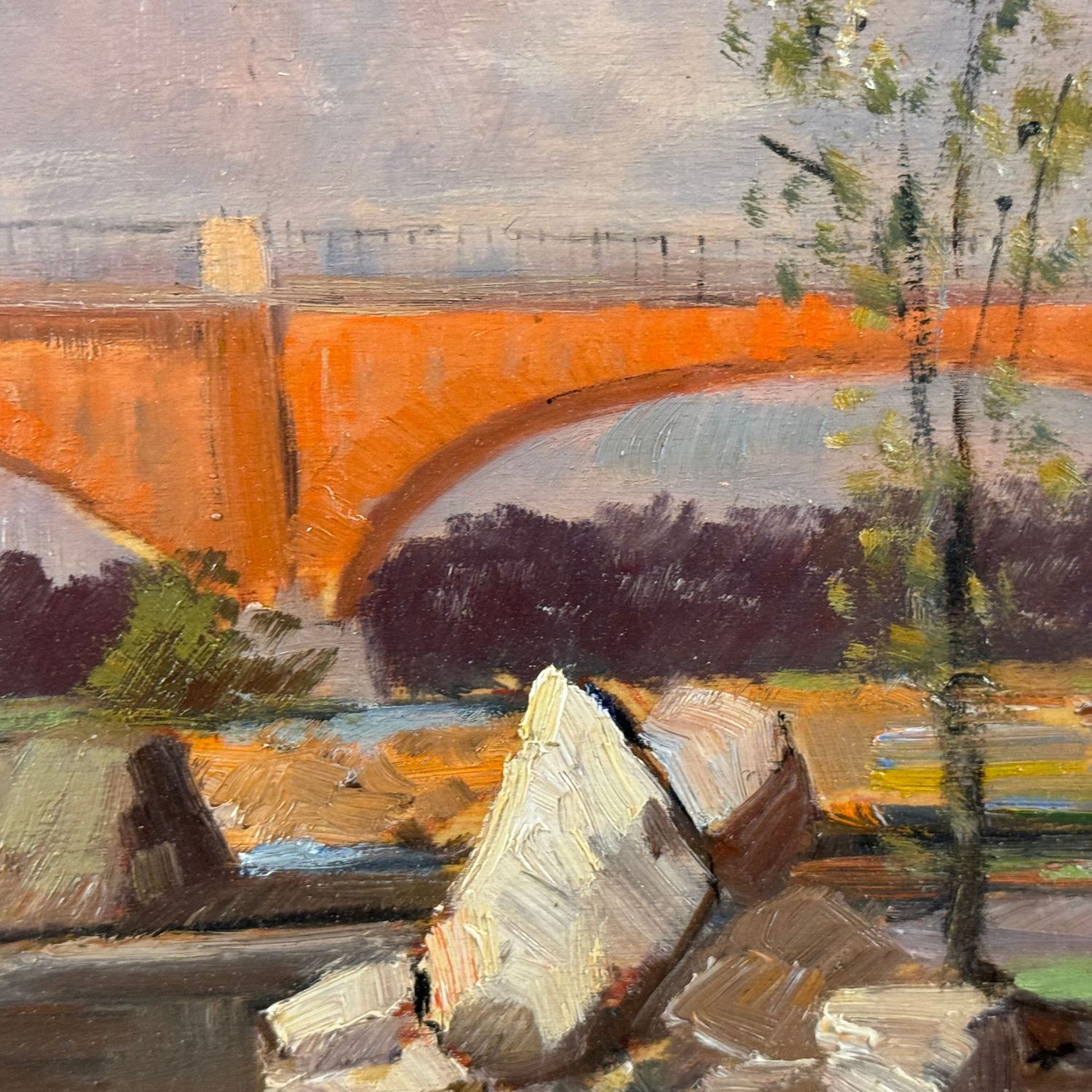 Dipinto olio su tavola, periodo XX secolo scuola Italiana raffigurante Paesaggio con ponte. Dimensioni interno cornice: 45x35 cm. Dimensioni compreso cornice: 67x58 cm. Firma basso a destra da Antonio D'Urso (1934 - 2015). Opera in buone condizioni.