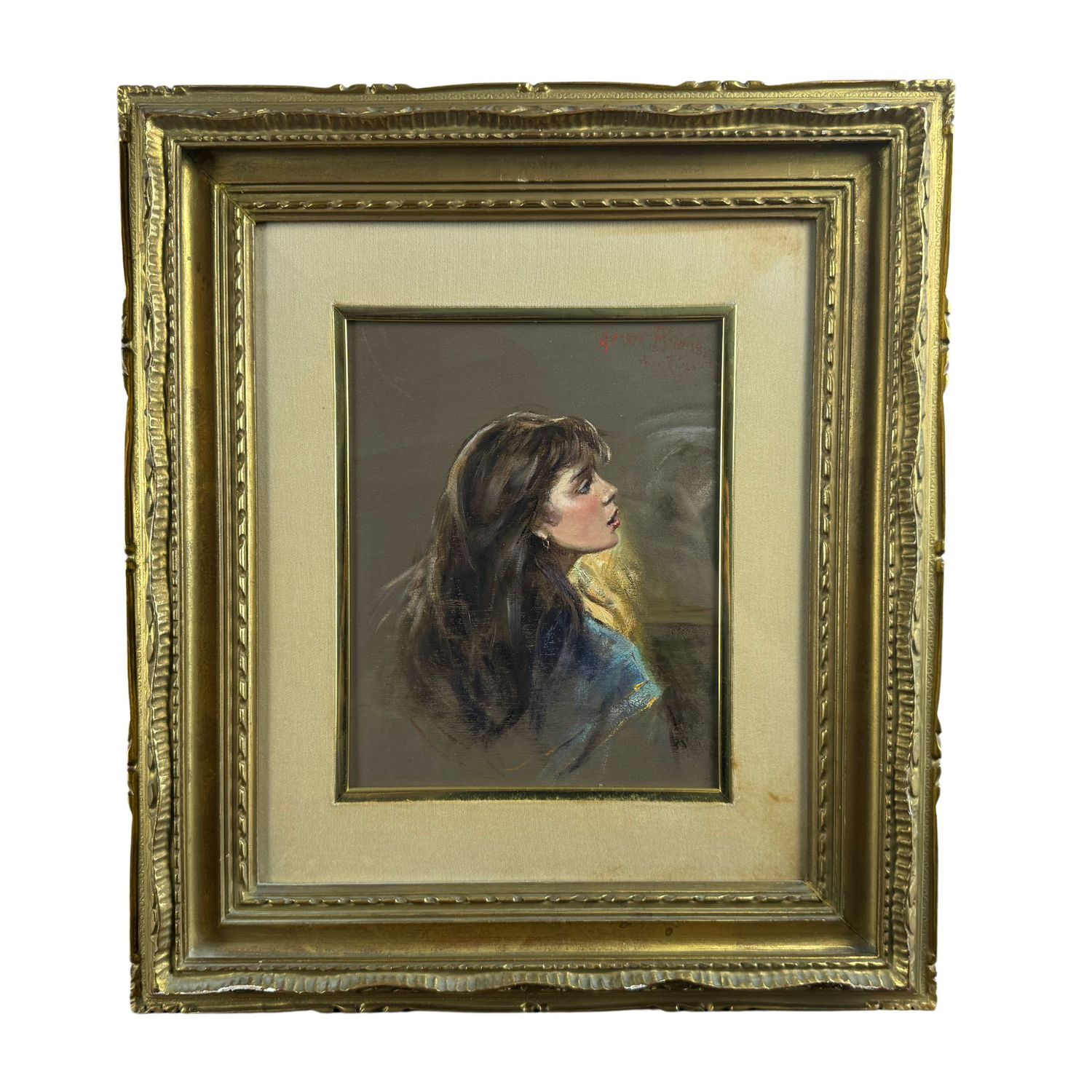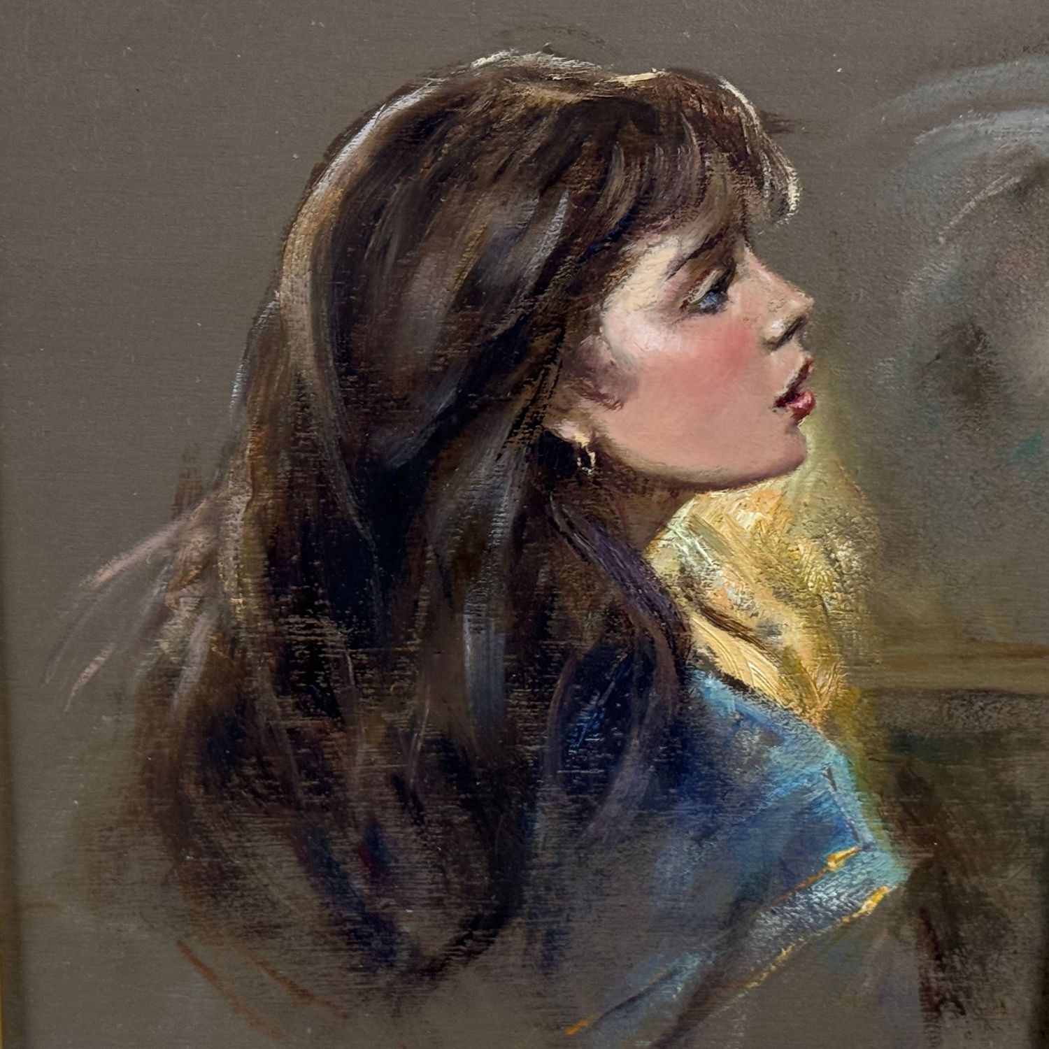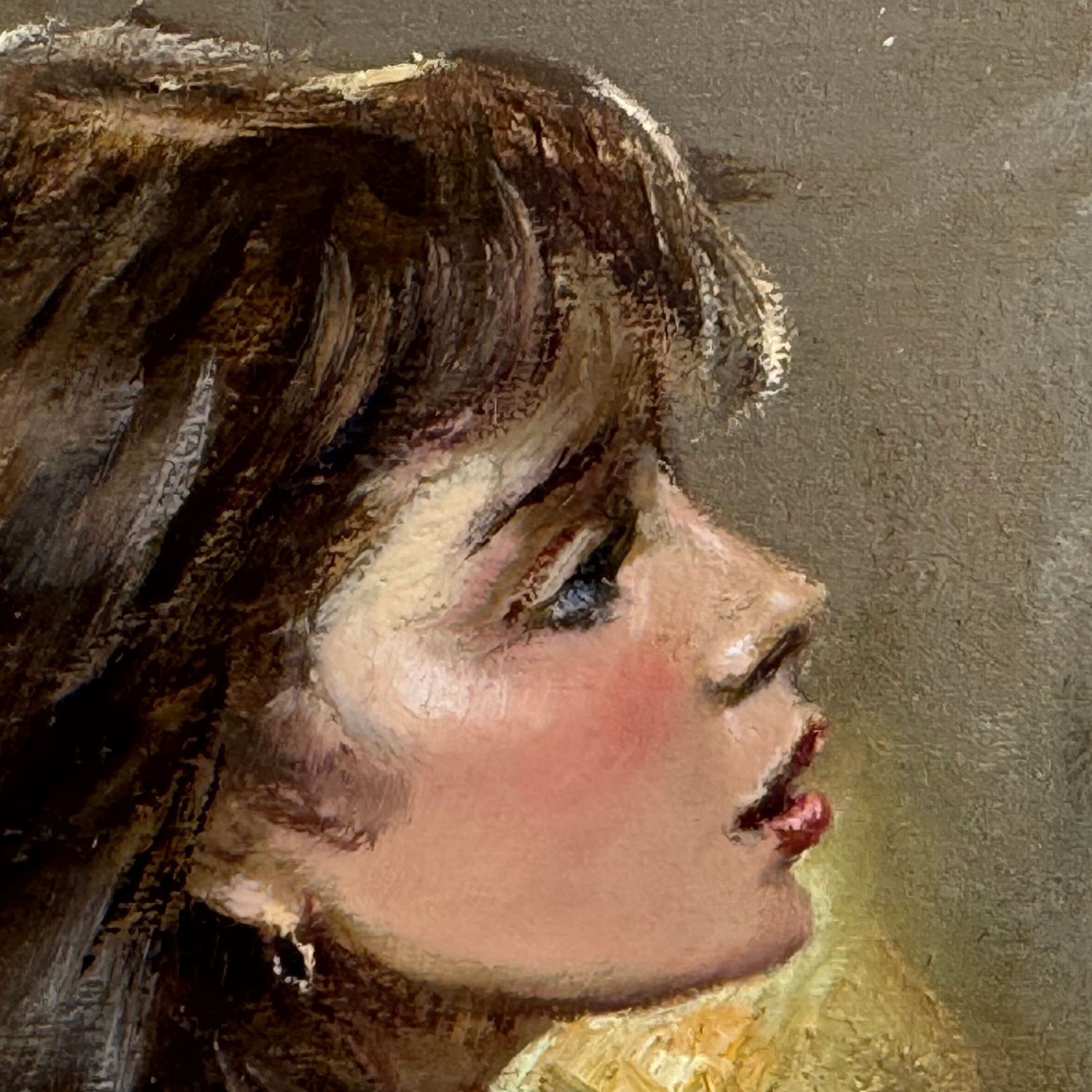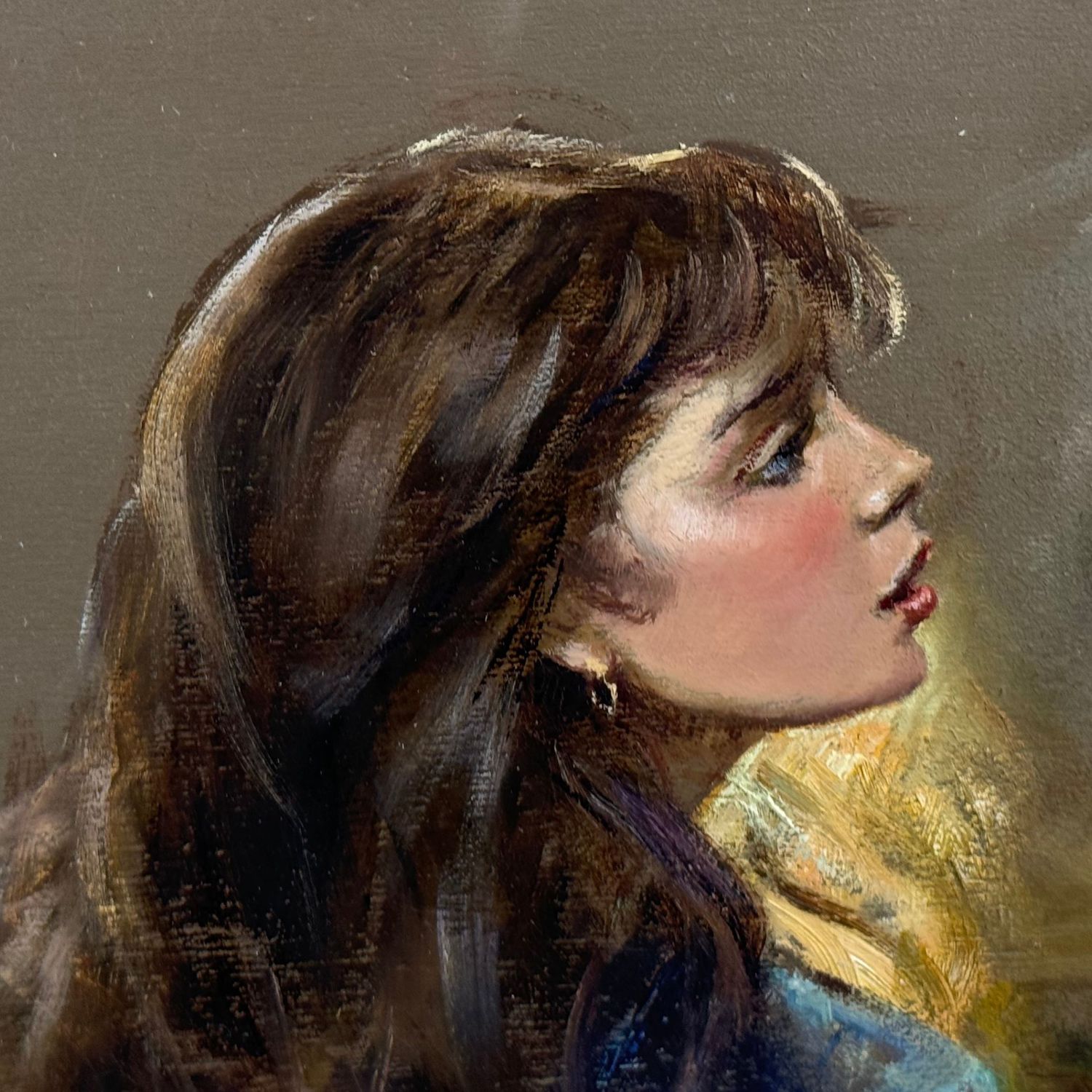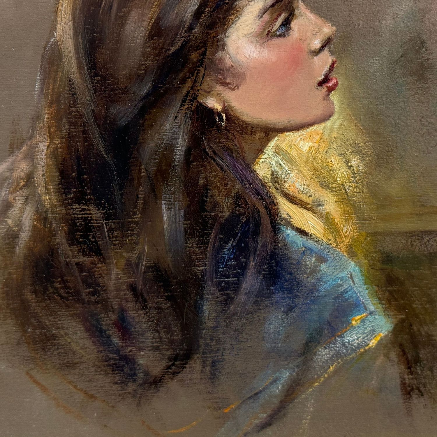 Dipinto olio su pannello, periodo XX secolo scuola Italiana, raffigurante Ritratto di donna. Dimensioni interno cornice: 20x25 cm. Dimensioni compreso cornice: 42x48 cm. Reca firma in alto a destra da Franco Rispoli. Opera in buone condizioni.