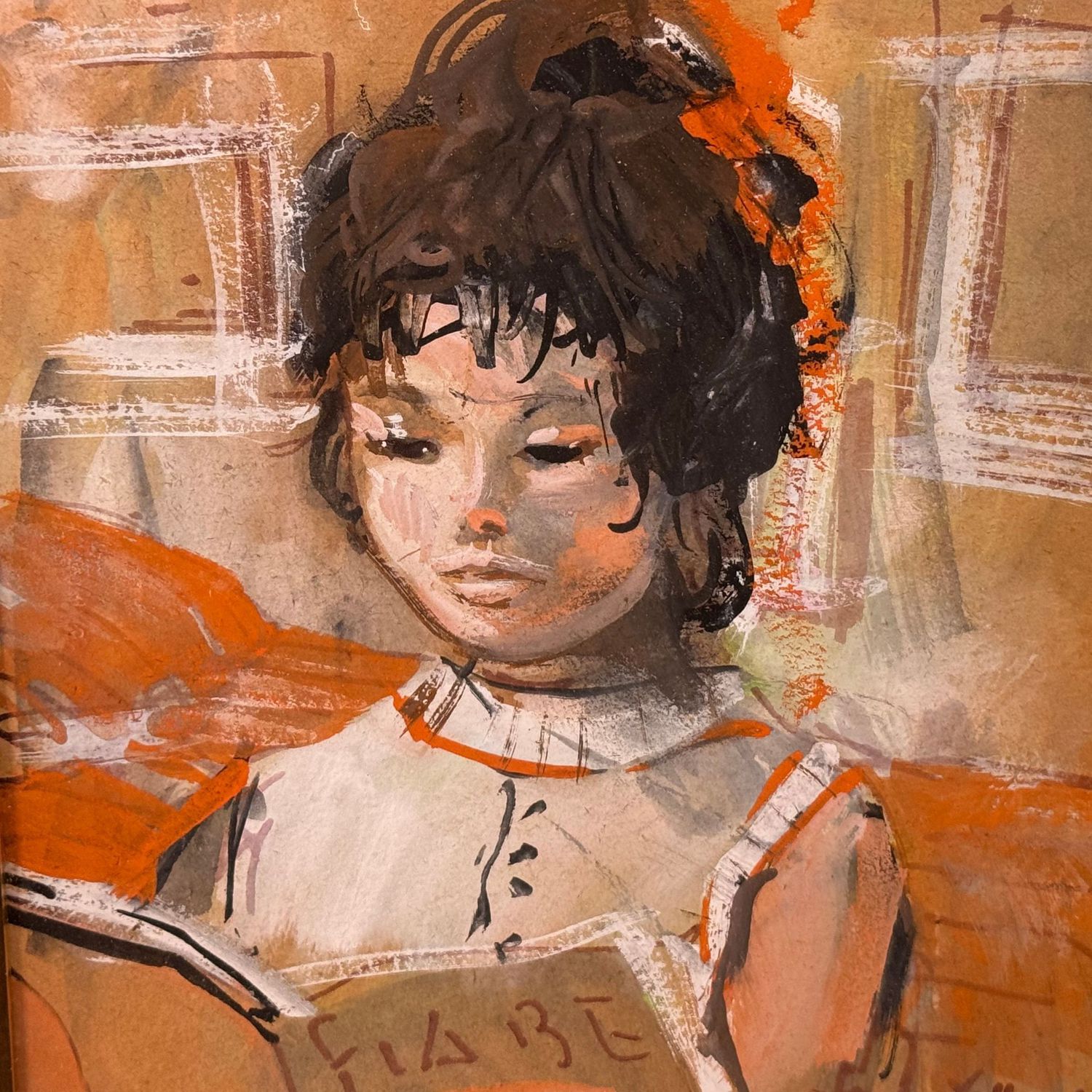 Dipinto olio su pannello, periodo XX secolo scuola Italiana, raffigurante Ritratto di donna in lettura. Dimensioni interno cornice: 25x28 cm, dimensioni compreso cornice: 43x46 cm. Reca firma in basso a destra da Ena Villani (1937). Opera in buone condizioni.