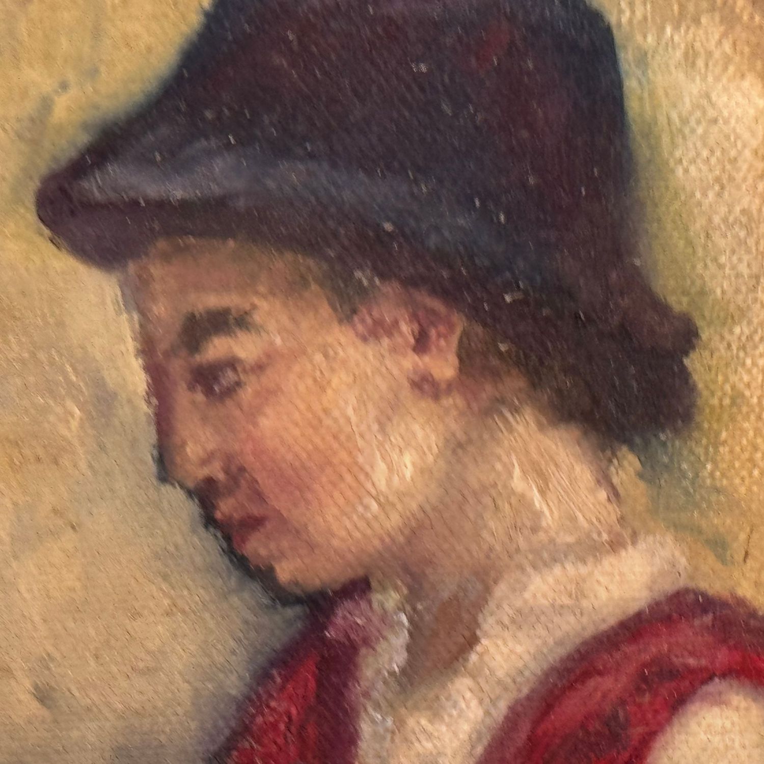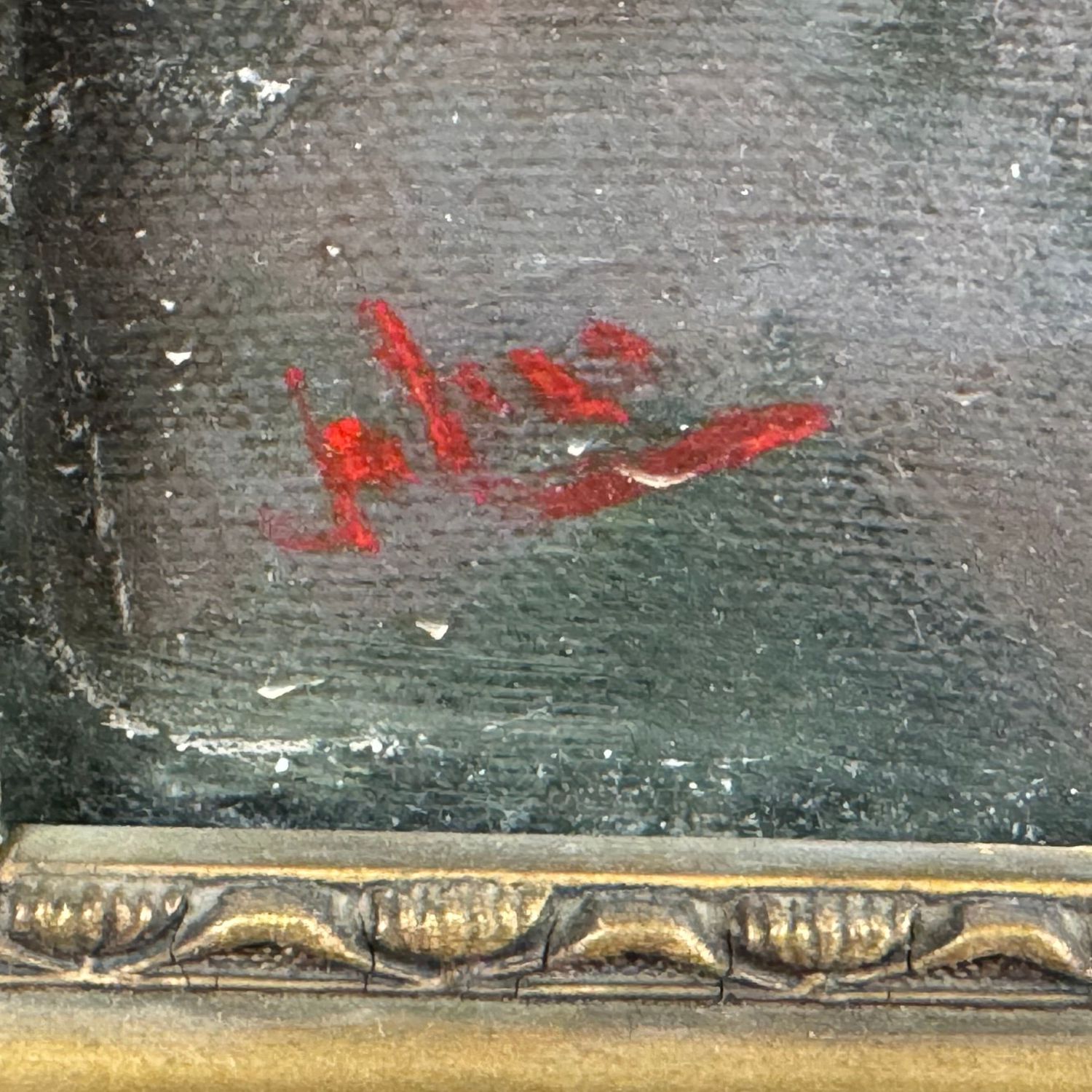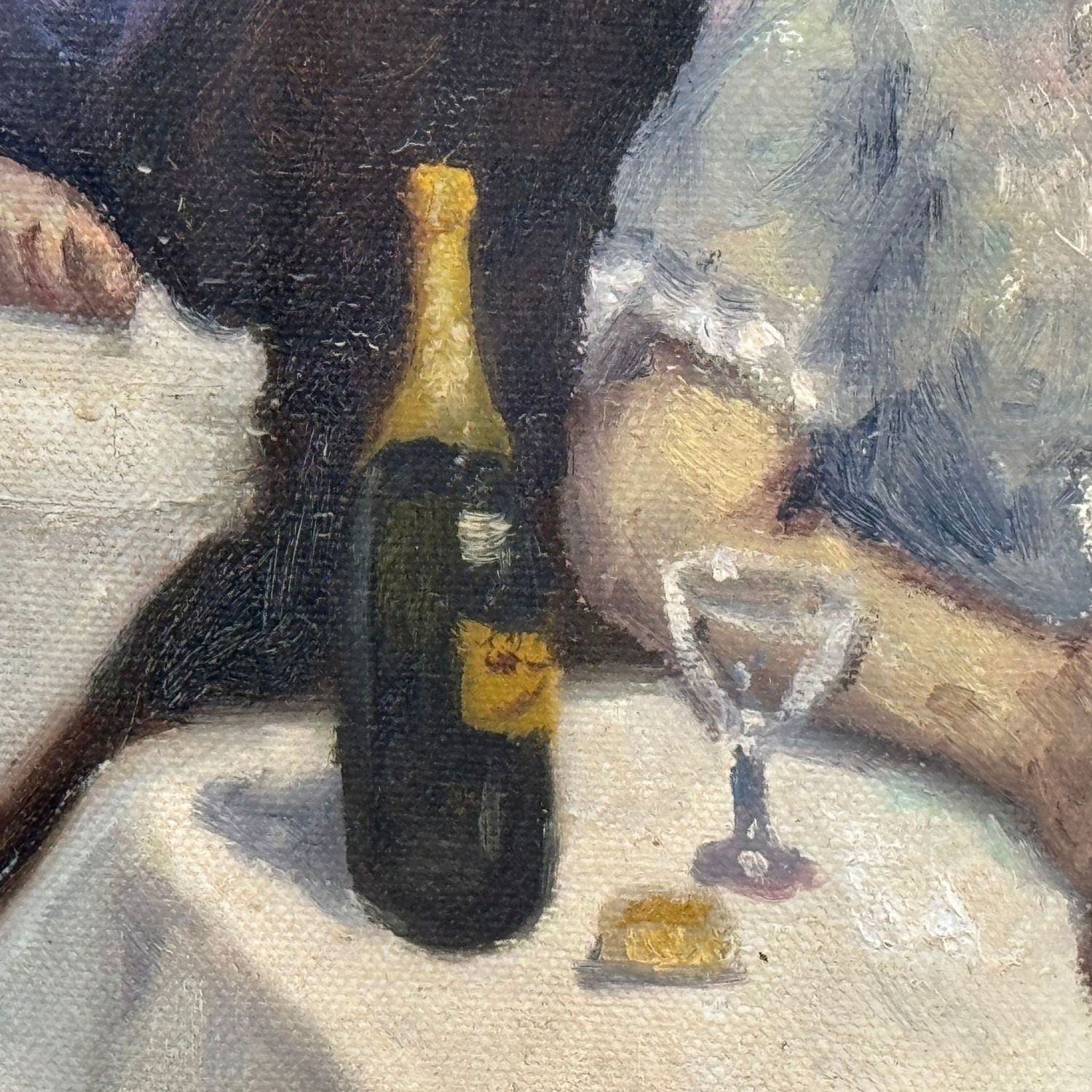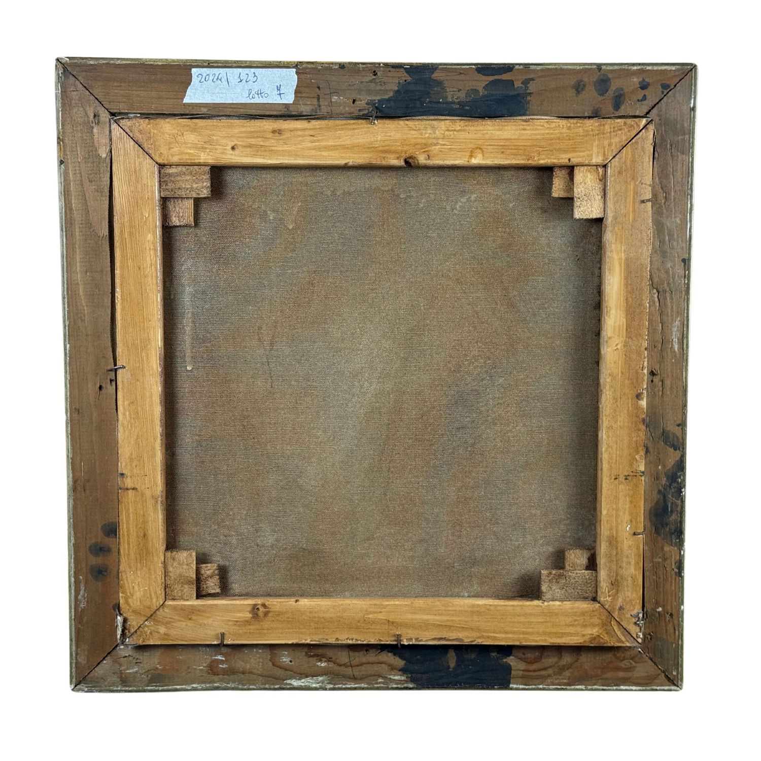 Dipinto olio su tela, periodo XX secolo, scuola Europea, raffigurante Incontro tra amiche al bar. Dimensioni interno cornice: 40x40 cm. Dimensioni compreso cornice: 48x48 cm. Reca firma in basso a sinistra di difficile lettura. Opera in buone condizioni. Cornice da restaurare.