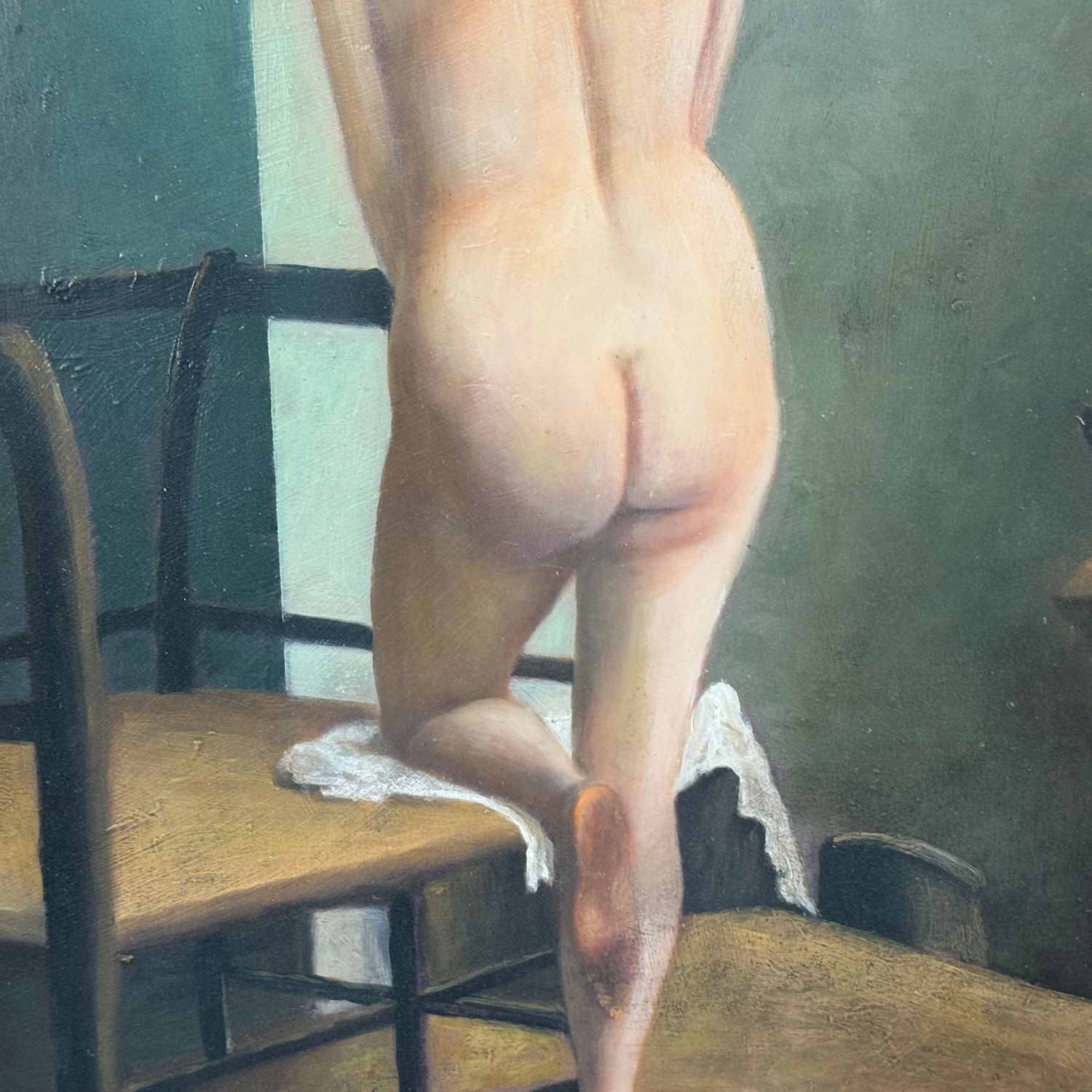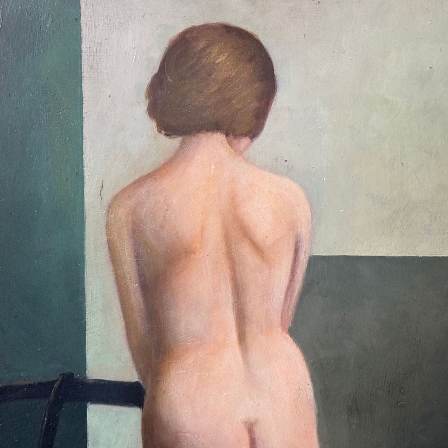 Dipinto olio su pannello, periodo XX 1939 secolo scuola Italiana, raffigurante Nudo di donna ritratta di spalle. Dimensioni interno cornice: 35x45 cm. Dimensioni compreso cornice: 49x59 cm. Reca firma in basso a destra da artista non identificato. Opera in buone condizioni.