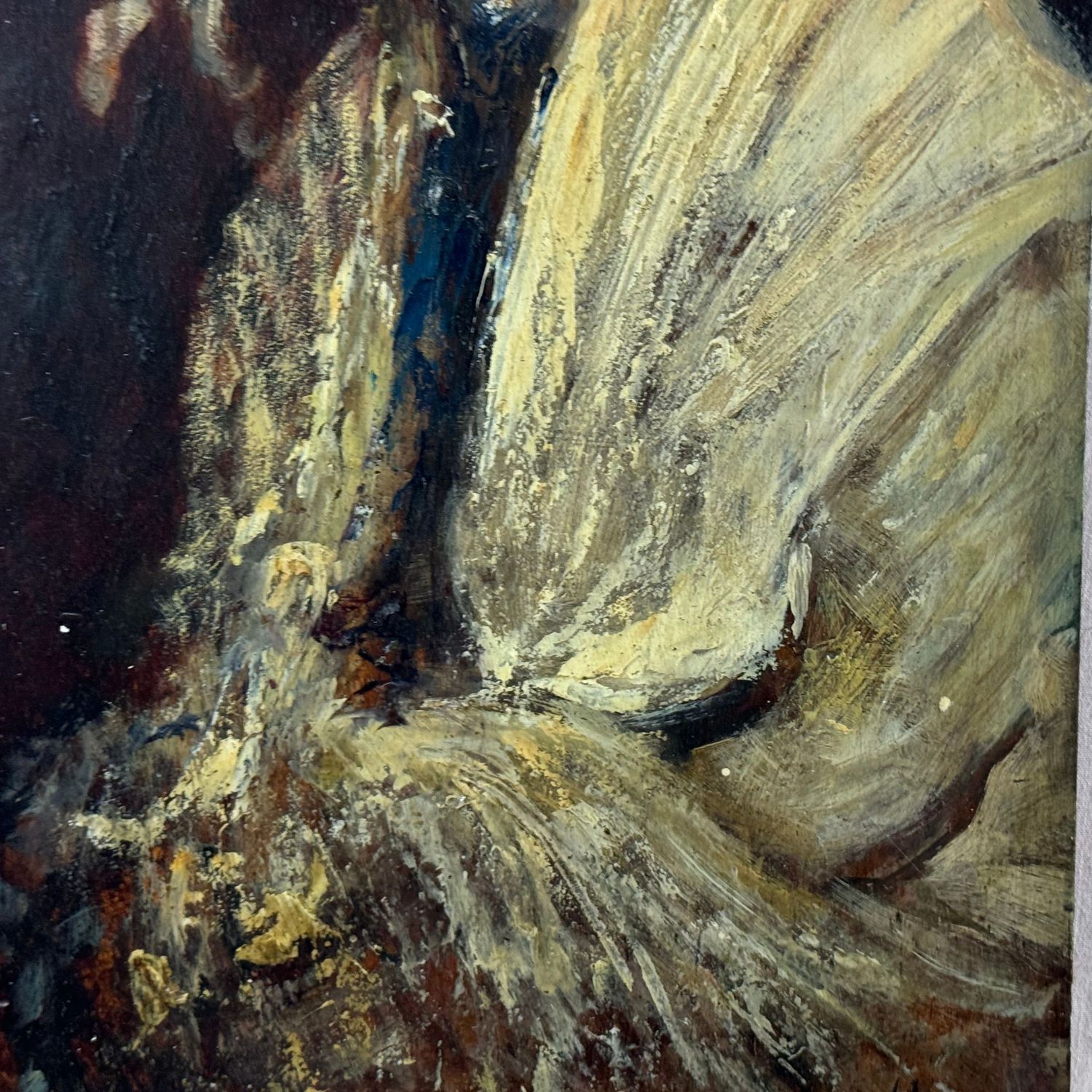 Dipinto olio su tavola, periodo inizio XX secolo scuola Italiana, raffigurante Donna con mantello. Dimensioni: 22x42 cm. Da artista anonimo. Opera in buone condizioni con lievi segni di vissuto come da foto allegate.