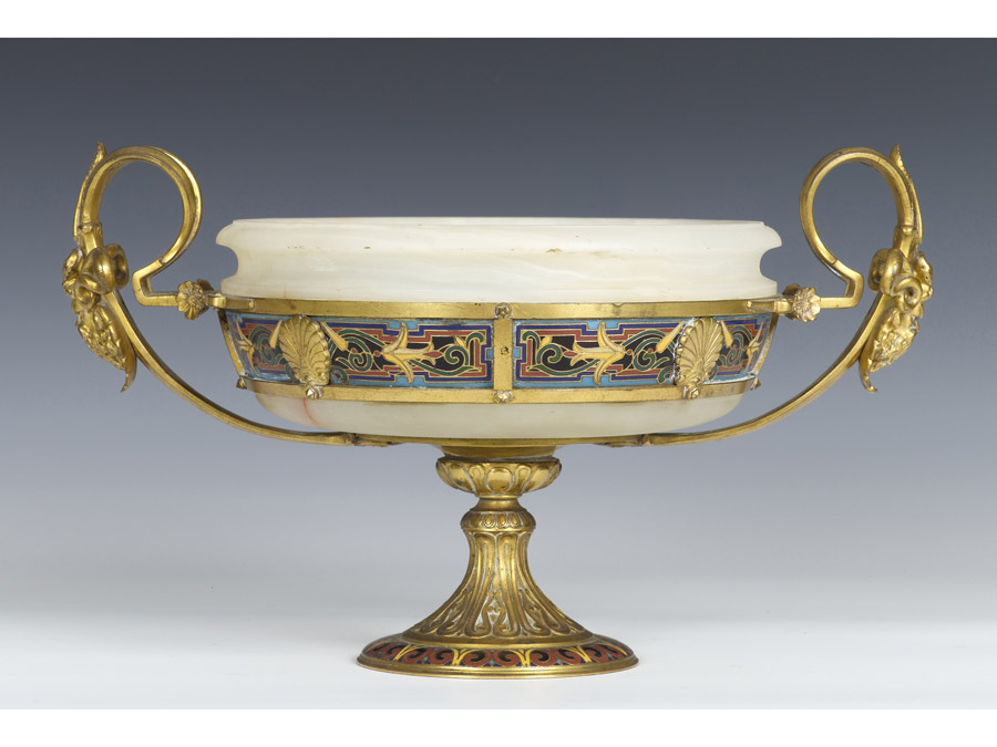 F. Barbedienne (XIX secolo) Alabastro e bronzo smaltato Misure 17x33 cm