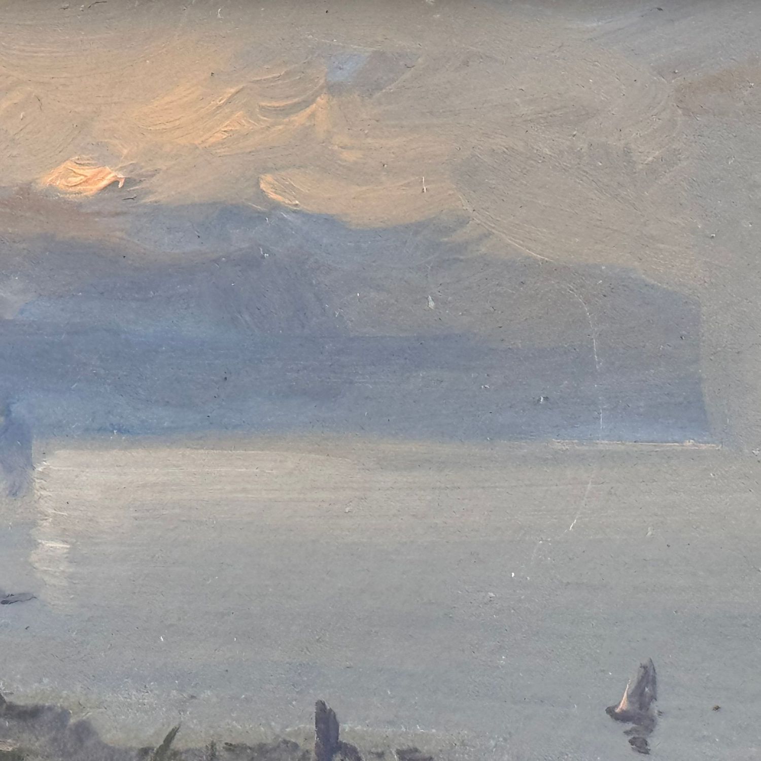 Dipinto olio su tavola, periodo XX secolo scuola Italiana, raffigurante Paesaggio marino. Dimensioni interno cornice: 20x14 cm. Dimensioni compreso cornice: 39x33 cm. Reca firma in basso a sinistra da Vincenzo Laricchia. Opera in buone condizioni.
