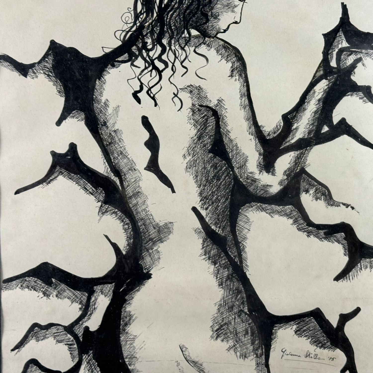 China su carta, periodo XX secolo scuola Italiana, raffigurante Donna ritratta di spalle. Dimensioni interno cornice: 42x54 cm. Dimensioni compreso cornice: 72x83 cm. Reca firma in basso a destra da Giovanna Stella. Opera eseguita nel 1975, opera in buone condizioni.