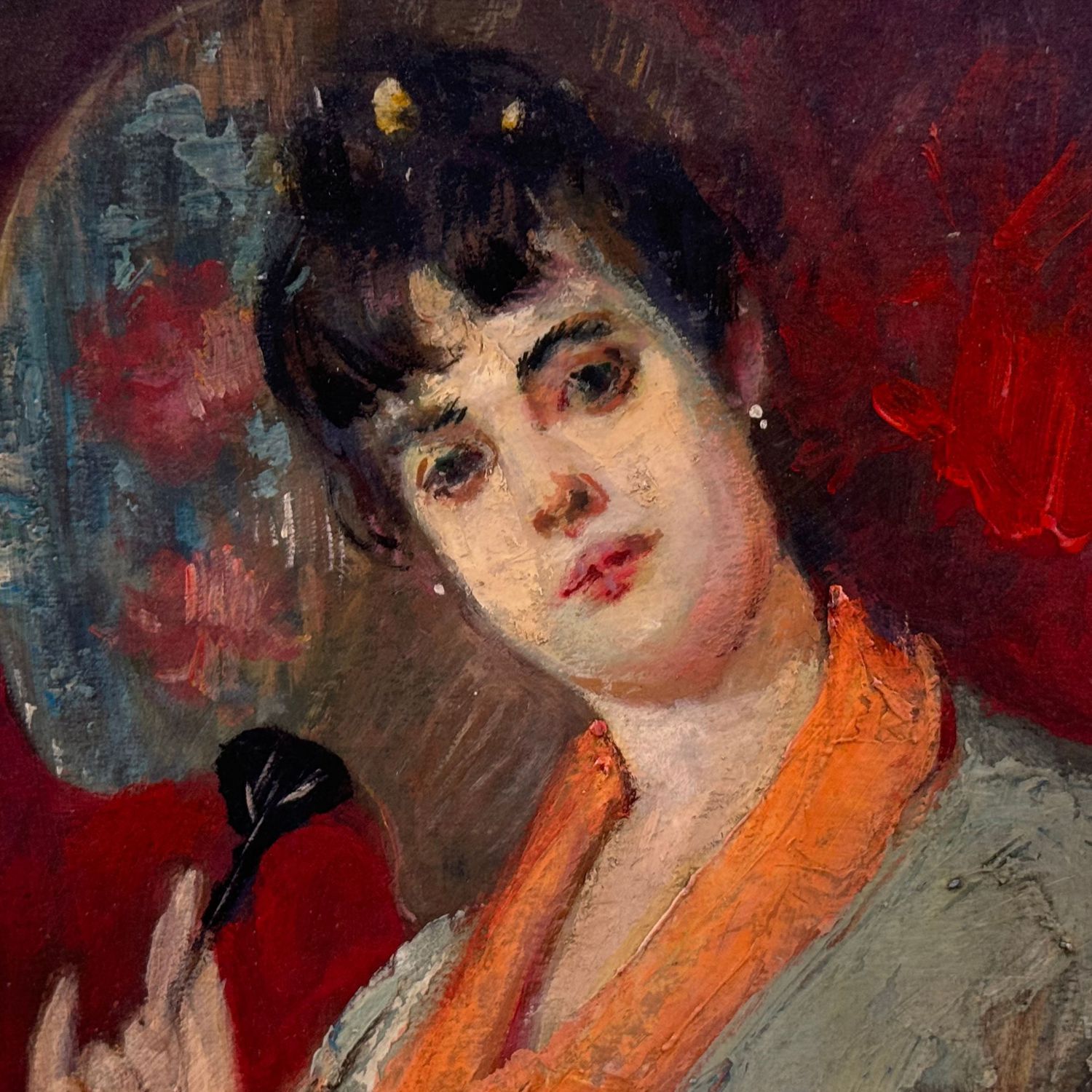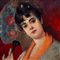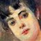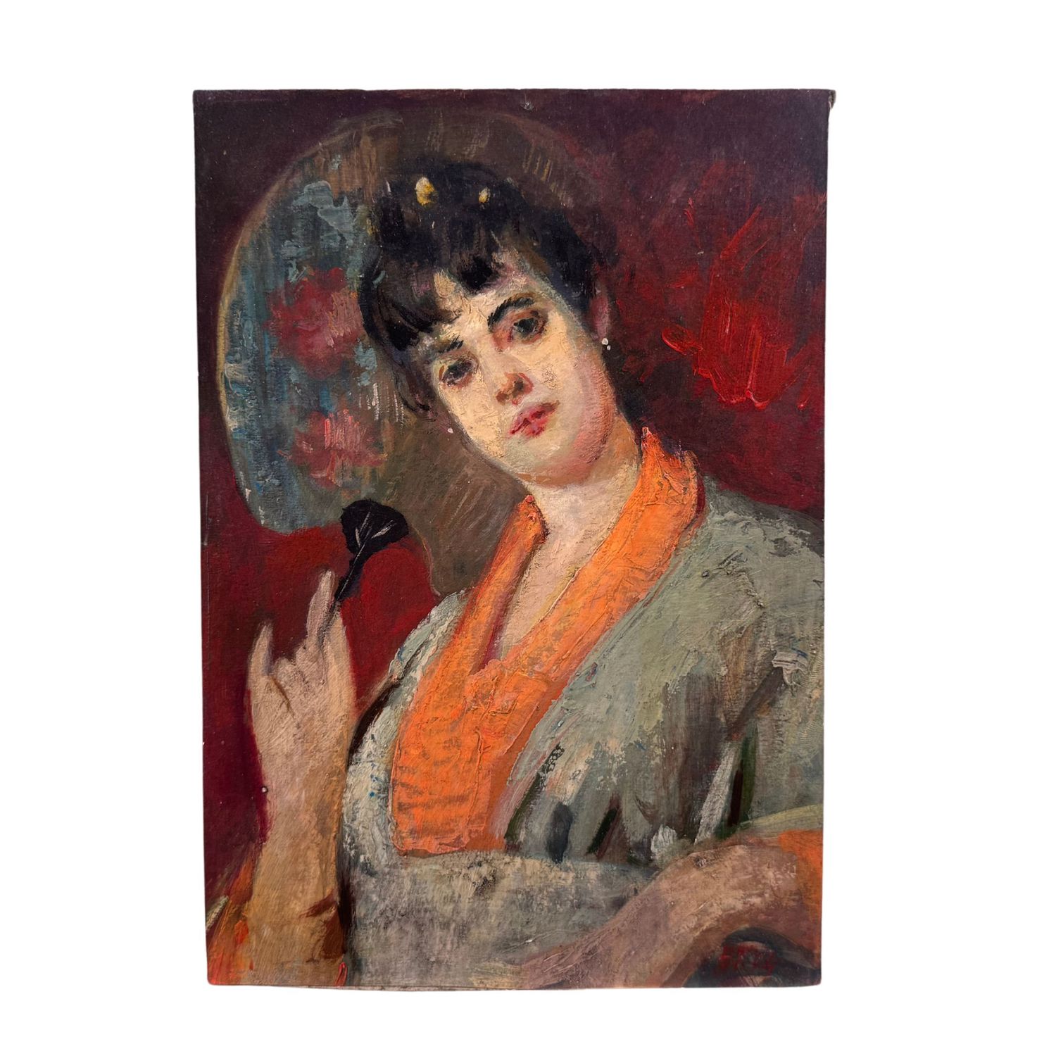 Dipinto olio su pannello, periodo XX secolo scuola Italiana, raffigurante Donna con ventaglio nella maniera impressionista. Dimensioni: 32,5x22,5 cm. Da artista anonimo. Opera in buone condizioni.