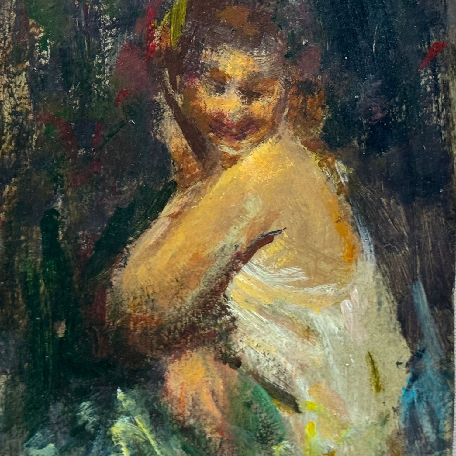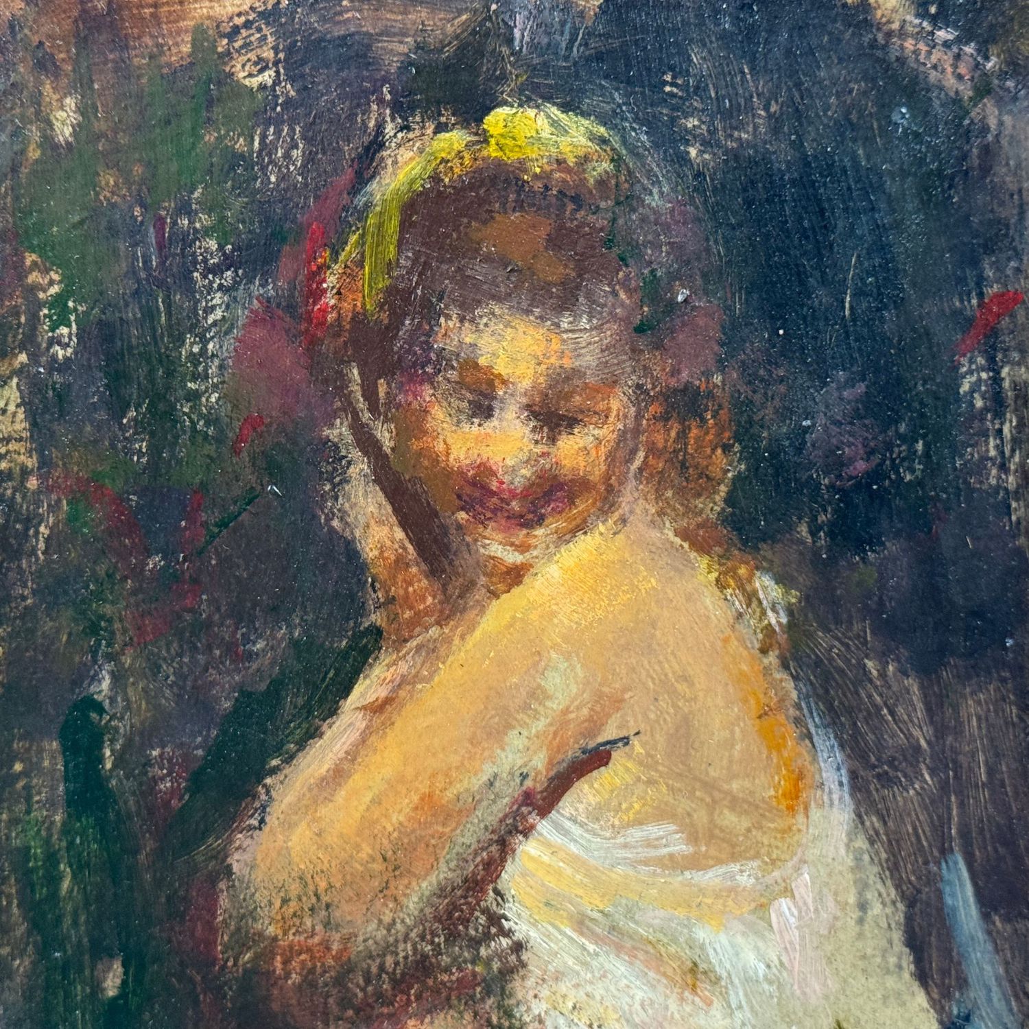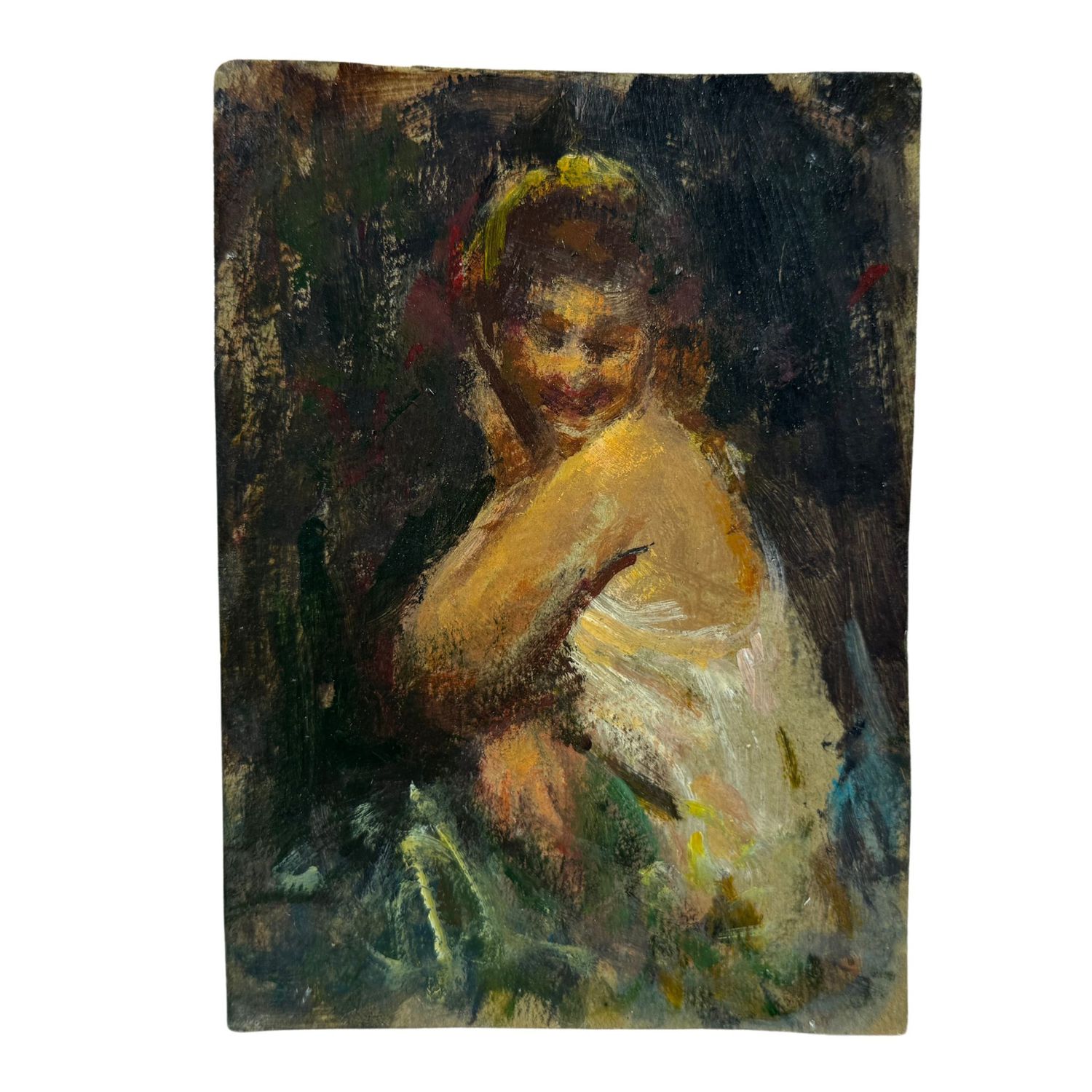 Dipinto olio su cartoncino, periodo XX secolo scuola Italiana, raffigurante Ritratto di donna nella maniera impressionista. Dimensioni: 18x13 cm. Da artista anonimo. Opera in buone condizioni.