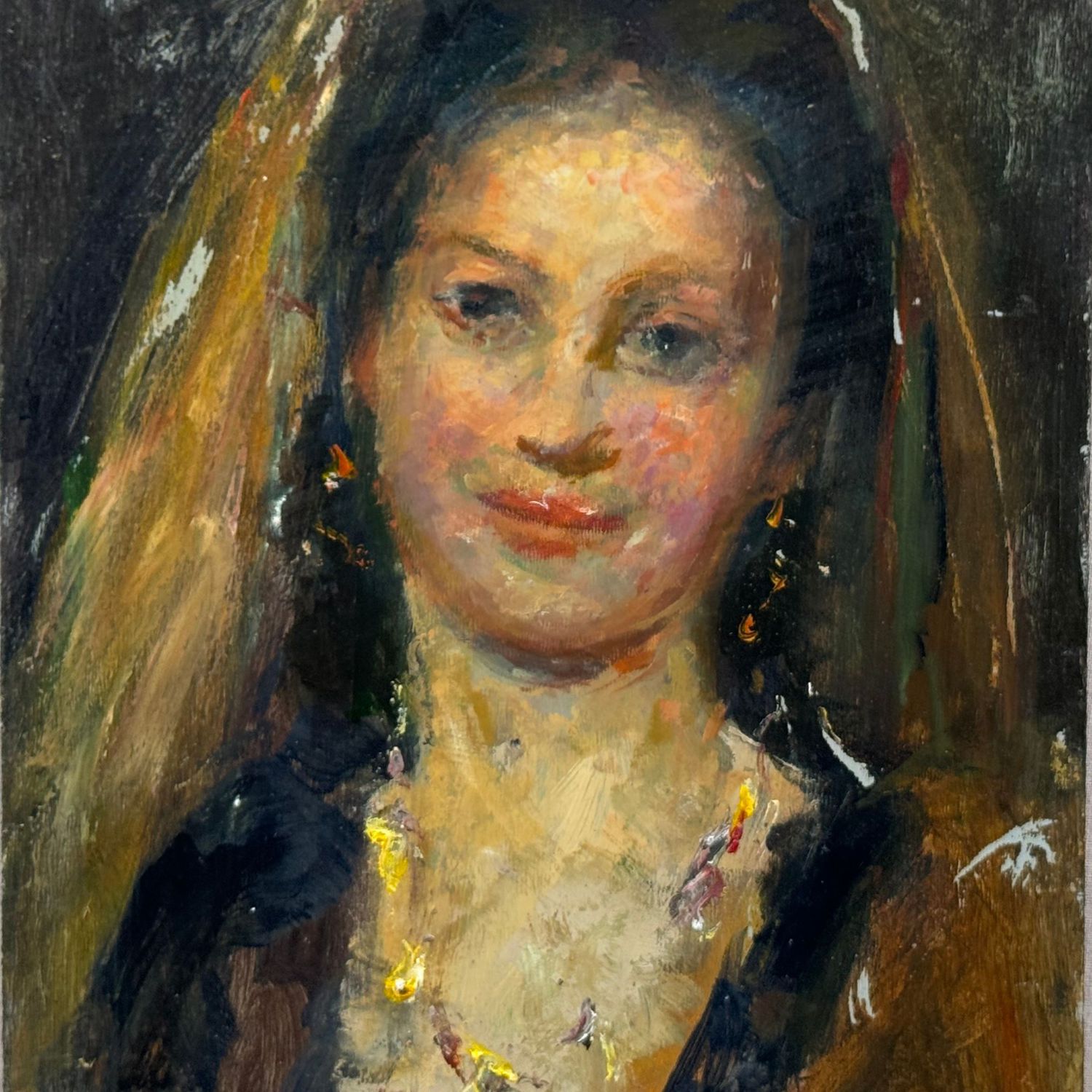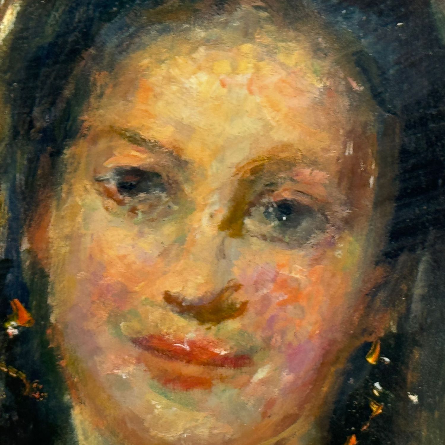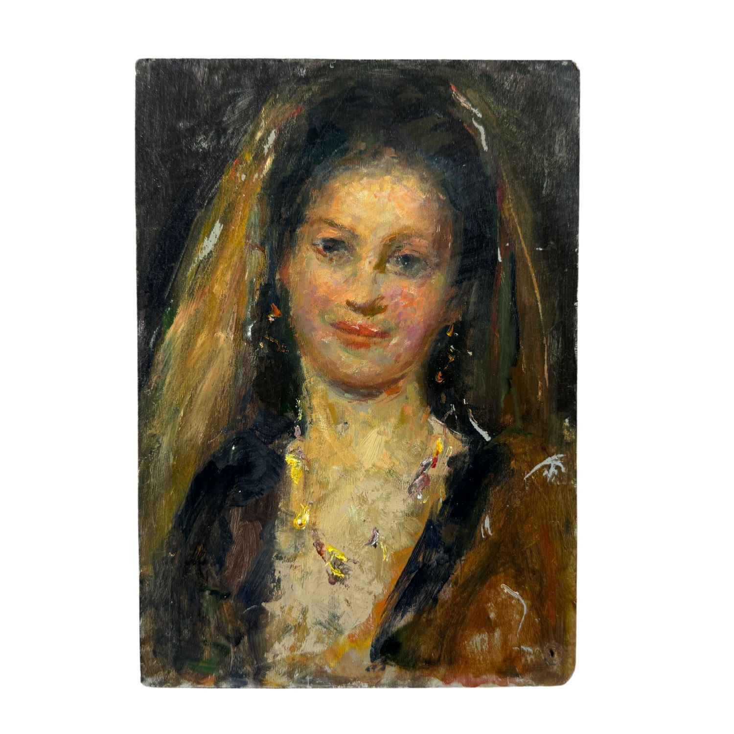 Dipinto olio su pannello, periodo XX secolo scuola Italiana, raffigurante Ritratto di donna nella maniera impressionista. Dimensioni: 24x17 cm. Da artista anonimo. Opera in buone condizioni.