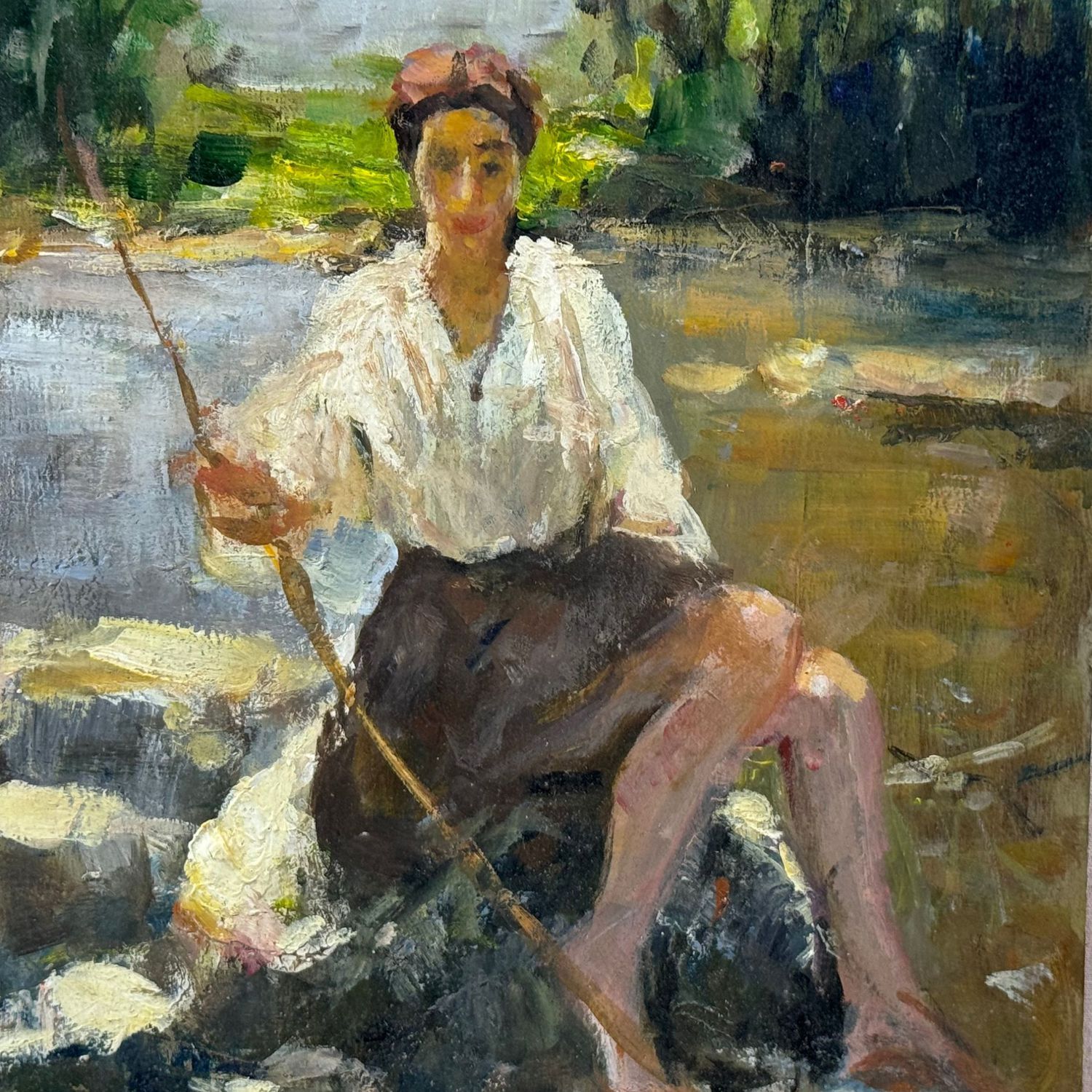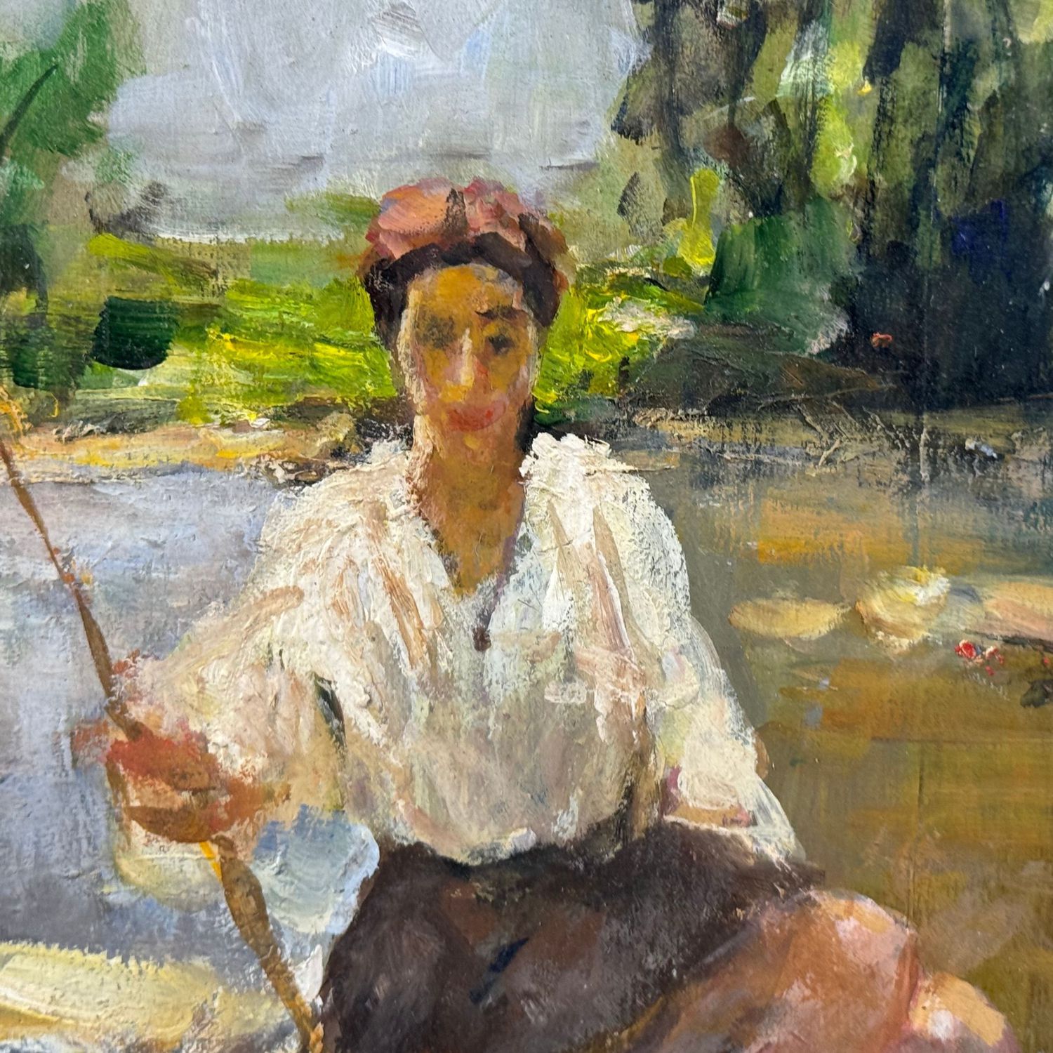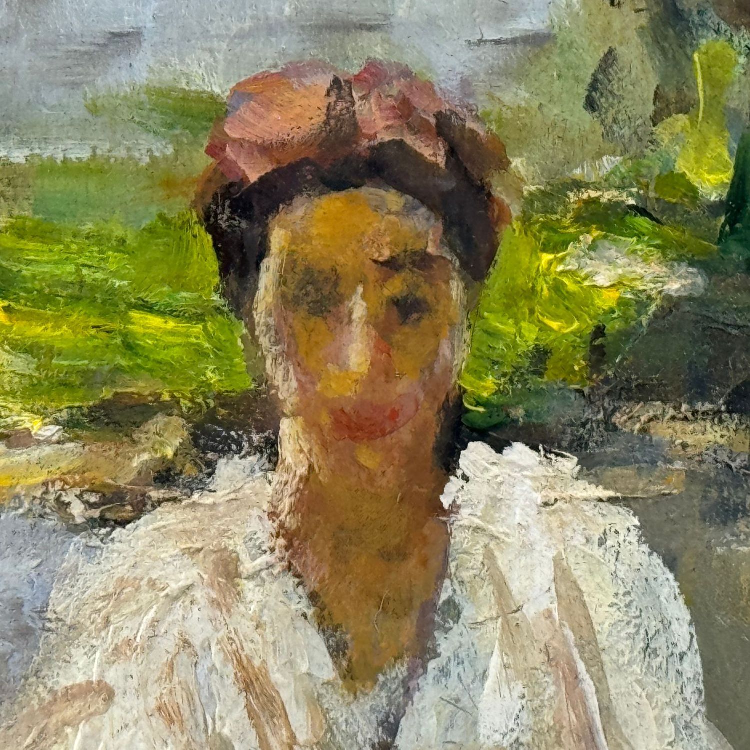 Dipinto olio su tavola, periodo XX secolo scuola Italiana, raffigurante Donna al lago nella maniera impressionista. Dimensioni: 30x22 cm. Da artista anonimo. Opera in buone condizioni.