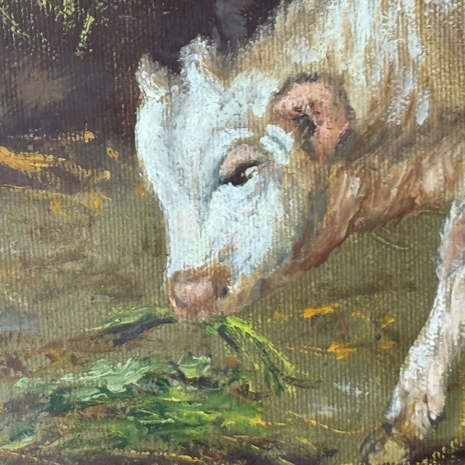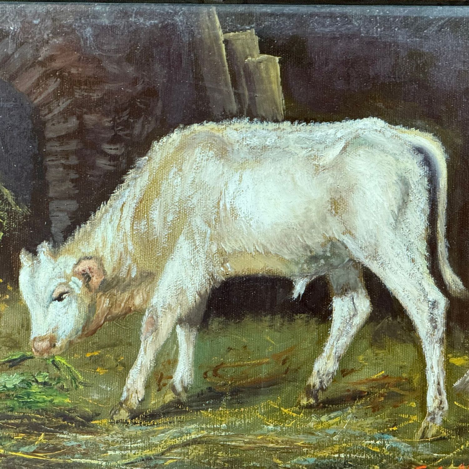 Dipinto olio su tela, periodo XX secolo scuola Italiana, raffigurante Bue. Dimensioni interno cornice: 40x30 cm. Dimensioni compreso cornice: 56x46 cm. Reca firma in basso a destra da artista non identificato. Opera in buone condizioni.