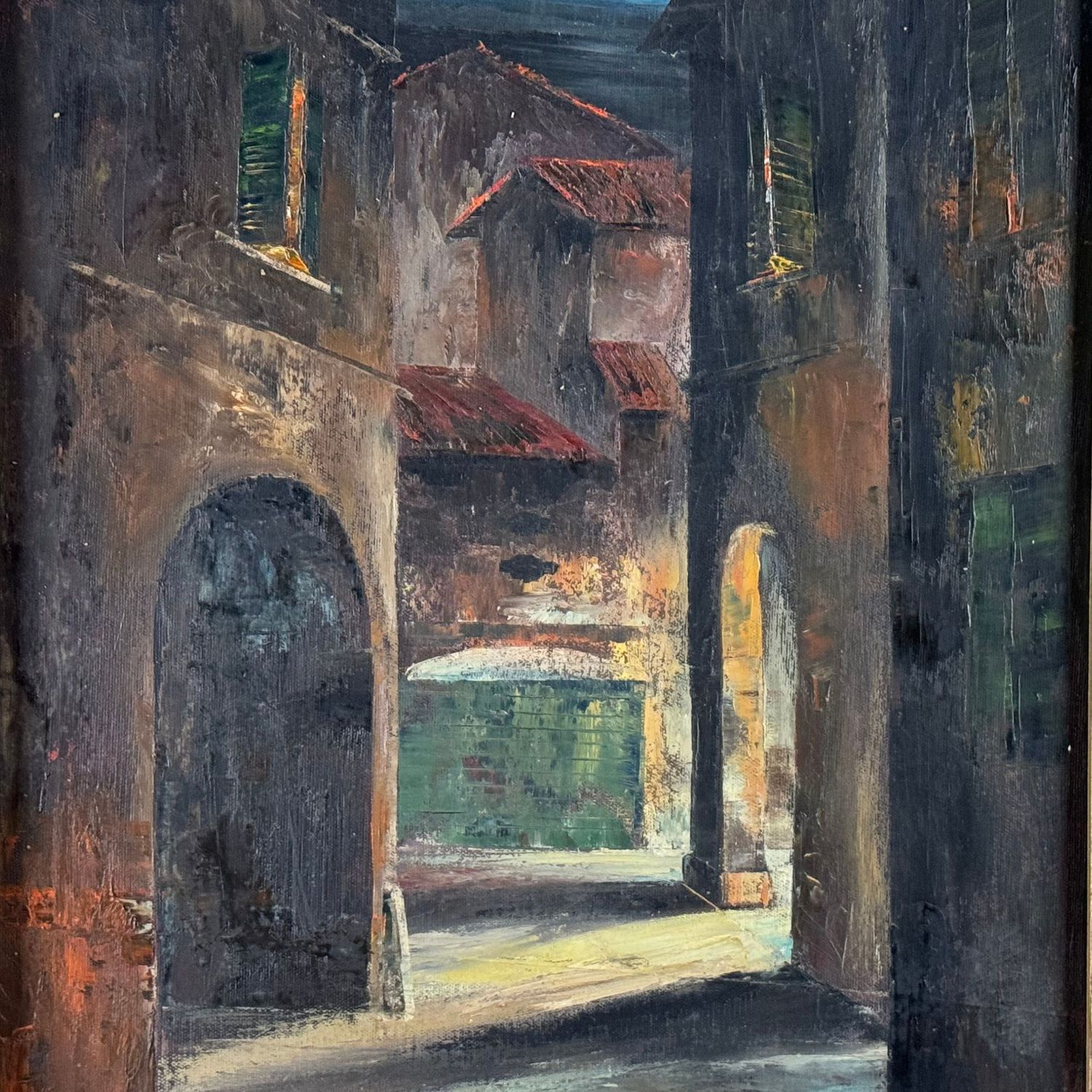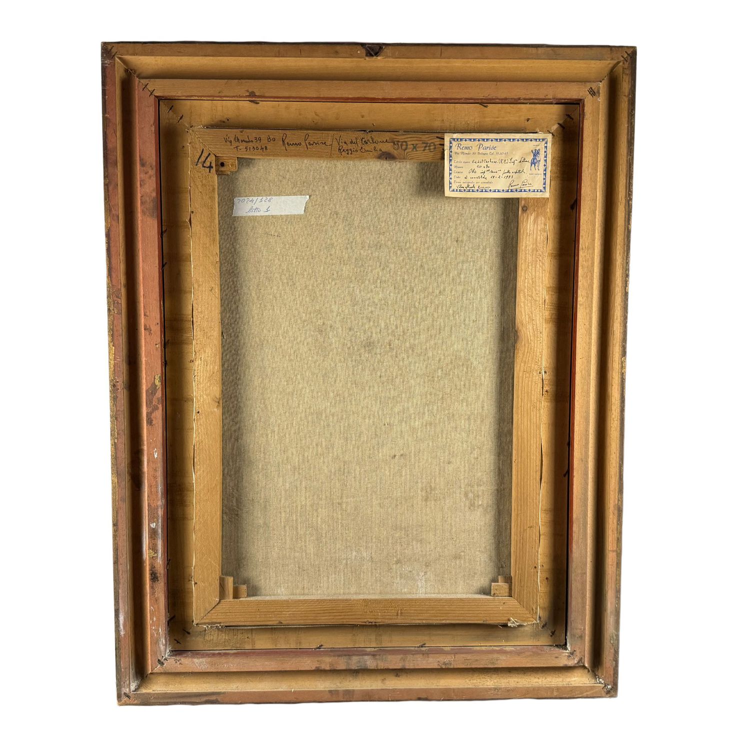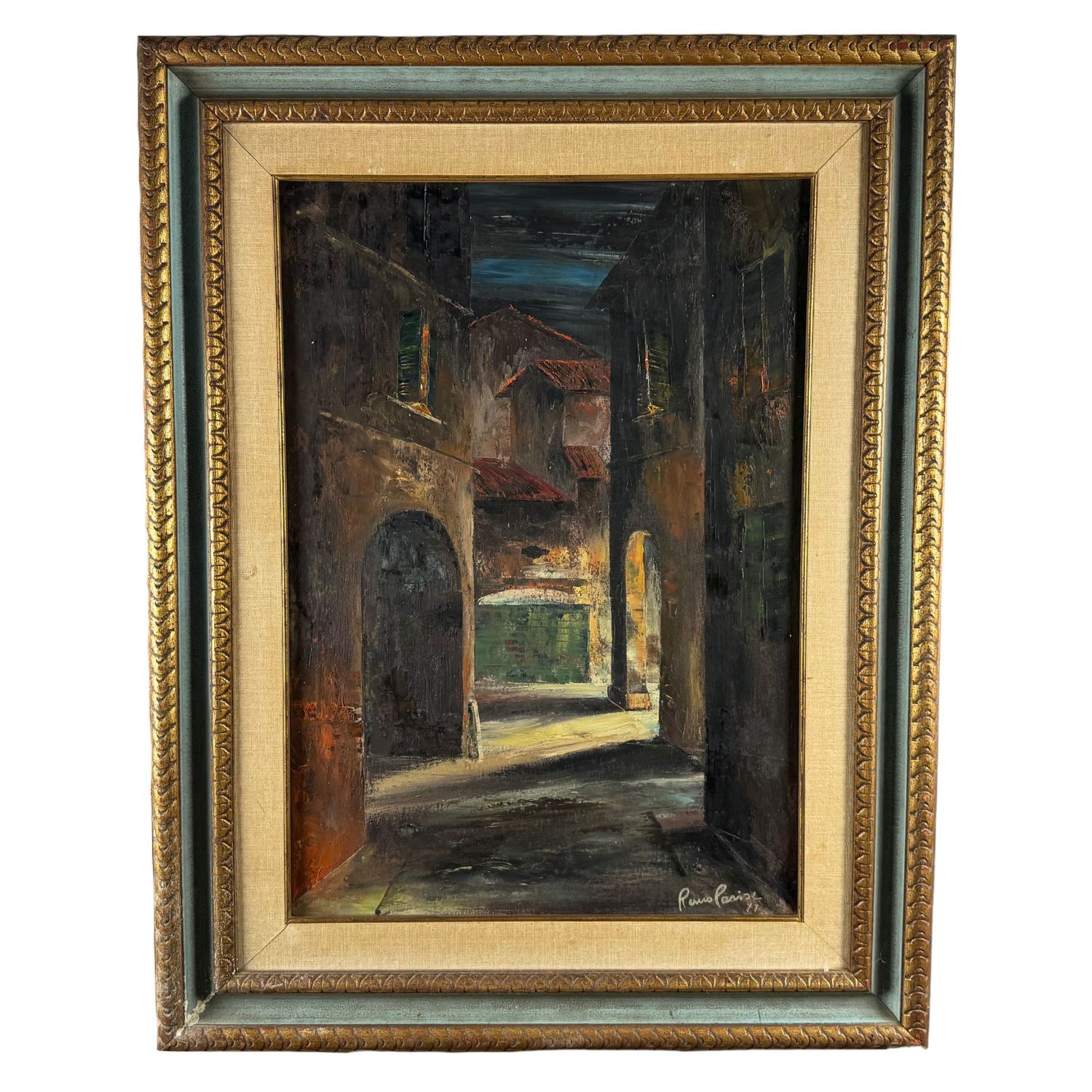 Dipinto olio su tela, periodo XX secolo scuola Italiana, raffigurante "Via del Carbone (Reggio Emilia)". Dimensioni interno cornice: 50x70 cm. Diemnsioni compreso cornice: 93x73 cm. Reca firma in basso a destra e autentica sul retro da Remo Prise. Opera in buone condizioni. Remo Parise è nato a Vicenza l’11/10/1916 ed è morto a Bologna il 10/1/1996, città dove ha vissuto e lavorato. Nel 1930 ha iniziato la sua formazione artistica presso la Scuola d’Arte di Bologna e nella stessa città, dal 1969 al 1971, frequenta l’Accademia delle Belle Arti. Ha tenuto mostre in parecchie città italiane ottenendo ovunque lusinghieri successi di pubblico e di critica. La sua pittura attraverso immagini recuperate nel profondo della memoria, si fa racconto delle vicende remote che il pittore propone, in ogni caso, attraverso accenti di fascinosa poesia. Motivo ricorrente la Bologna della sua giovinezza con i suoi angoli più caratteristici, i riflessi luminosi, i suoi antichi personaggi fermati in episodi che di frequente si tingono del suggestivo richiamo della fiaba. Scenari preferibilmente notturni accrescono notevolmente il valore sentimentale dei suoi dipinti. Scenari diradati “in un’orchestra (scrive il Morello) di chiaroscuri a volte precisi a volte soffusi in mille tonalità di morbida schiuma marina diffusa sulle cose”. “Ogni minuto (scrive Michele Fuoco) che l’autore ha vissuto cade in una riserva oscura, in un oblio apparente dove lo lascia sprofondare. Sembra che resti soltanto ciò che può essere utile alla sua Arte”. E dal ricordo nascono le immagini, il racconto si articola nelle molteplici parti, riscopre, senza retorica alcuna, lontani e non obliati sentimenti e diventa, allora, profonda occasione di autentica verifica spirituale. Propone, in particolare, realtà di amore e di pace ed è, in tal modo, non “una ricerca (scrive Cucci) del tempo perduto, ma del meglio, forse passato inosservato di quel tempo”. Una realtà per il pittore affatto chiara ancora, di cui egli torna dunque a fare parte con piena facilità, ad appropriarsi nei sui fondamentali risvolti episodici e sentimentali, per riproporne sintesi pittoriche quanto mai gradevoli e personali. Pittura, dunque, come occasione di recupero di fatti e valori lontani presentati mediante pretesti figurali che, pur nella molteplicità delle proposte descrittive, mantengono riferimenti costanti con la realtà di un passato trascritto con amore e suggestiva poesia.