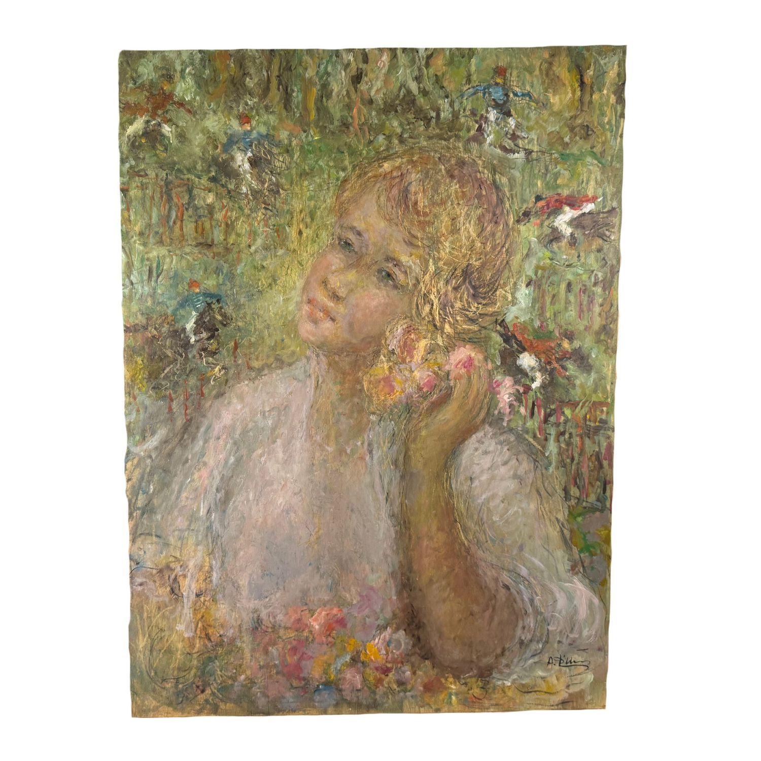 Dipinto olio su tavola, periodo XX secolo scuola italiana, raffigurante Ritratto di fanciulla. Dimensioni: 80x60,5. Reca firma in basso a destra da A. D'Urso. Opera in buone condizioni.