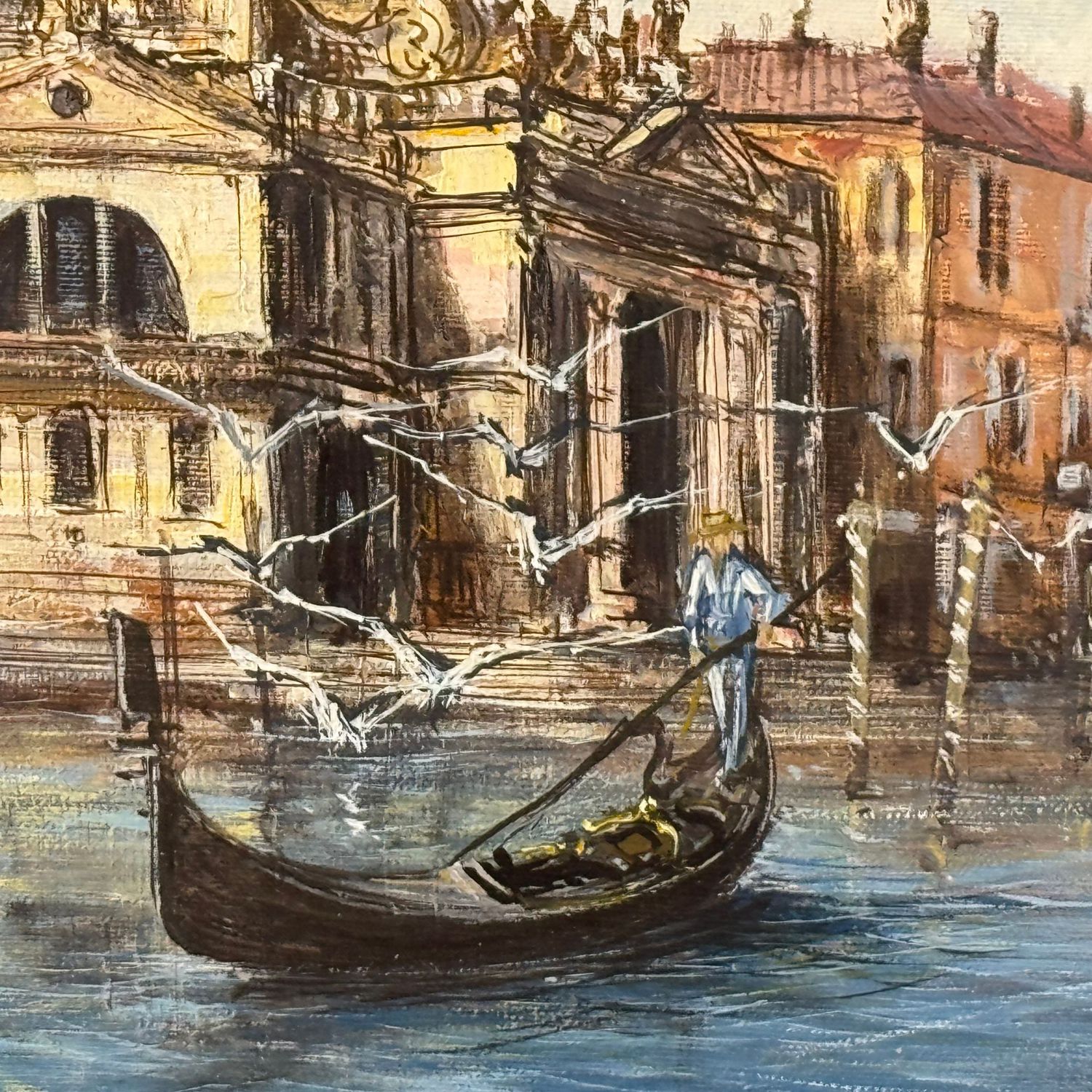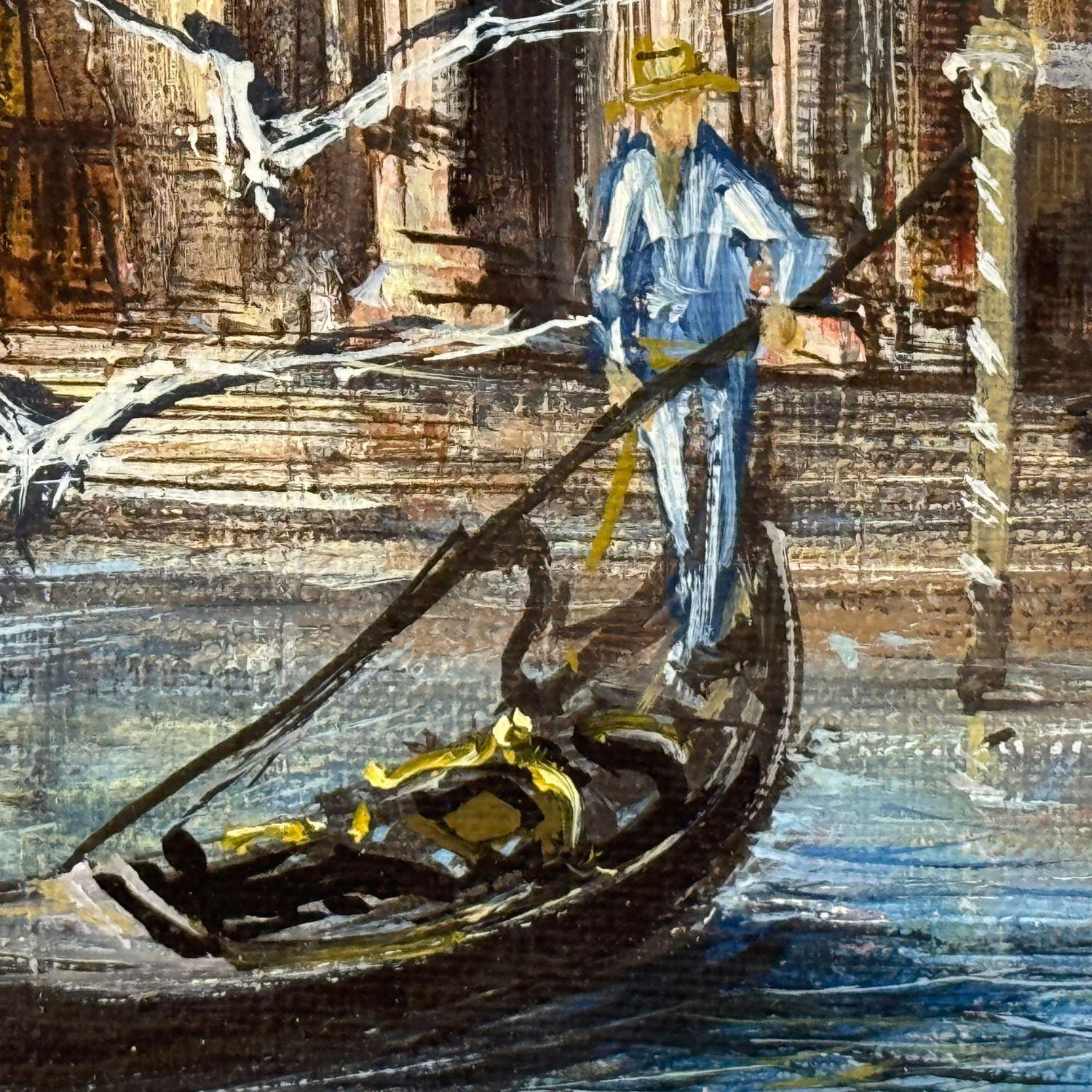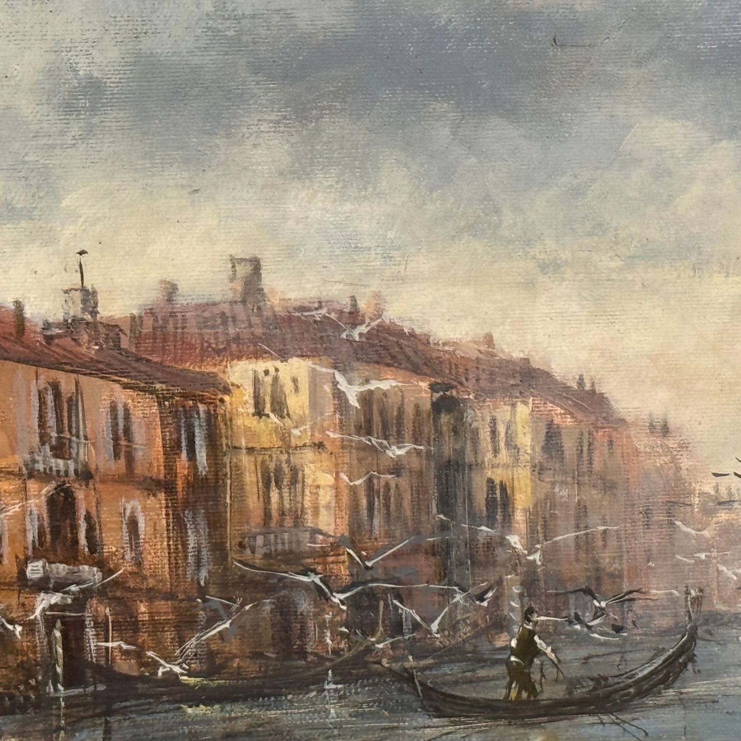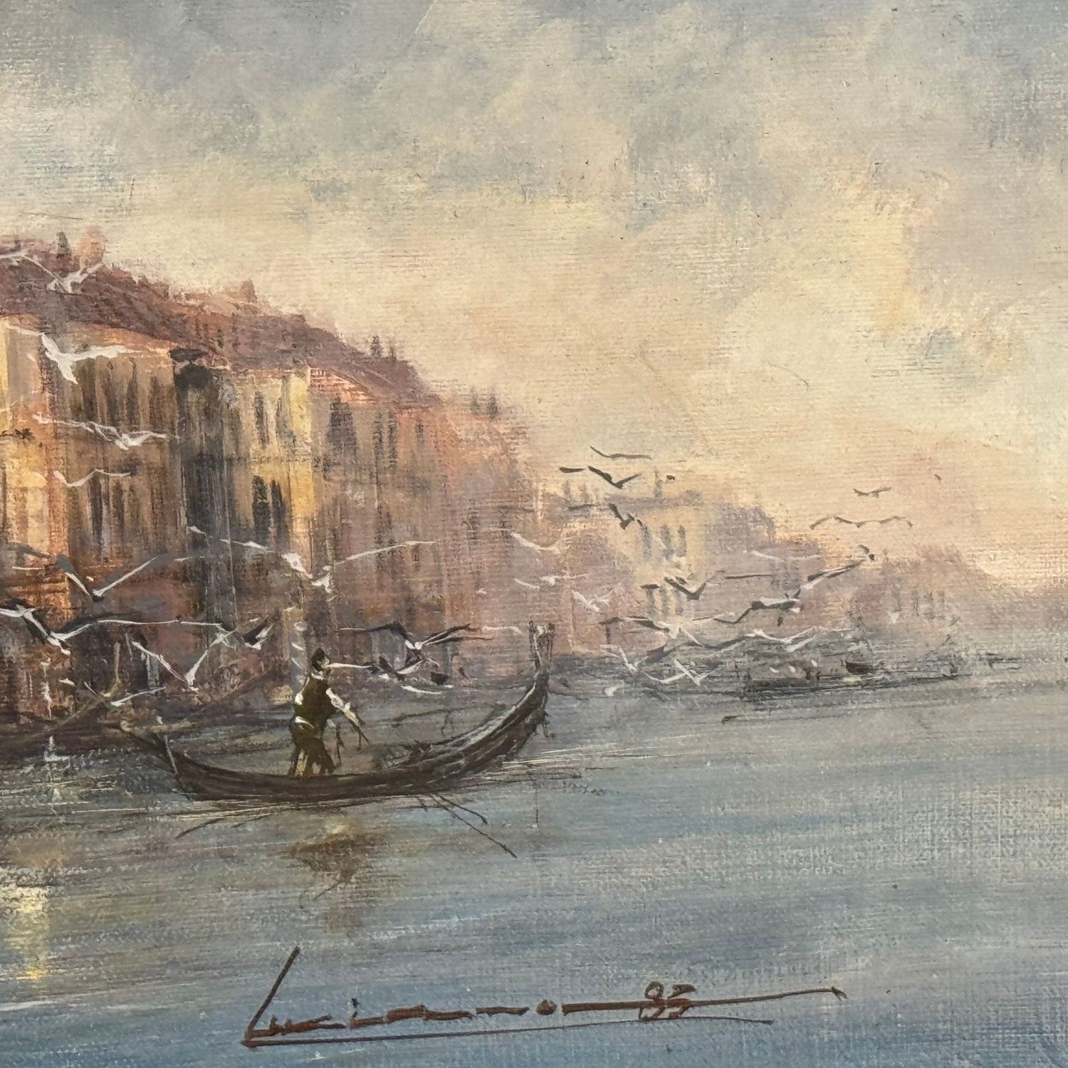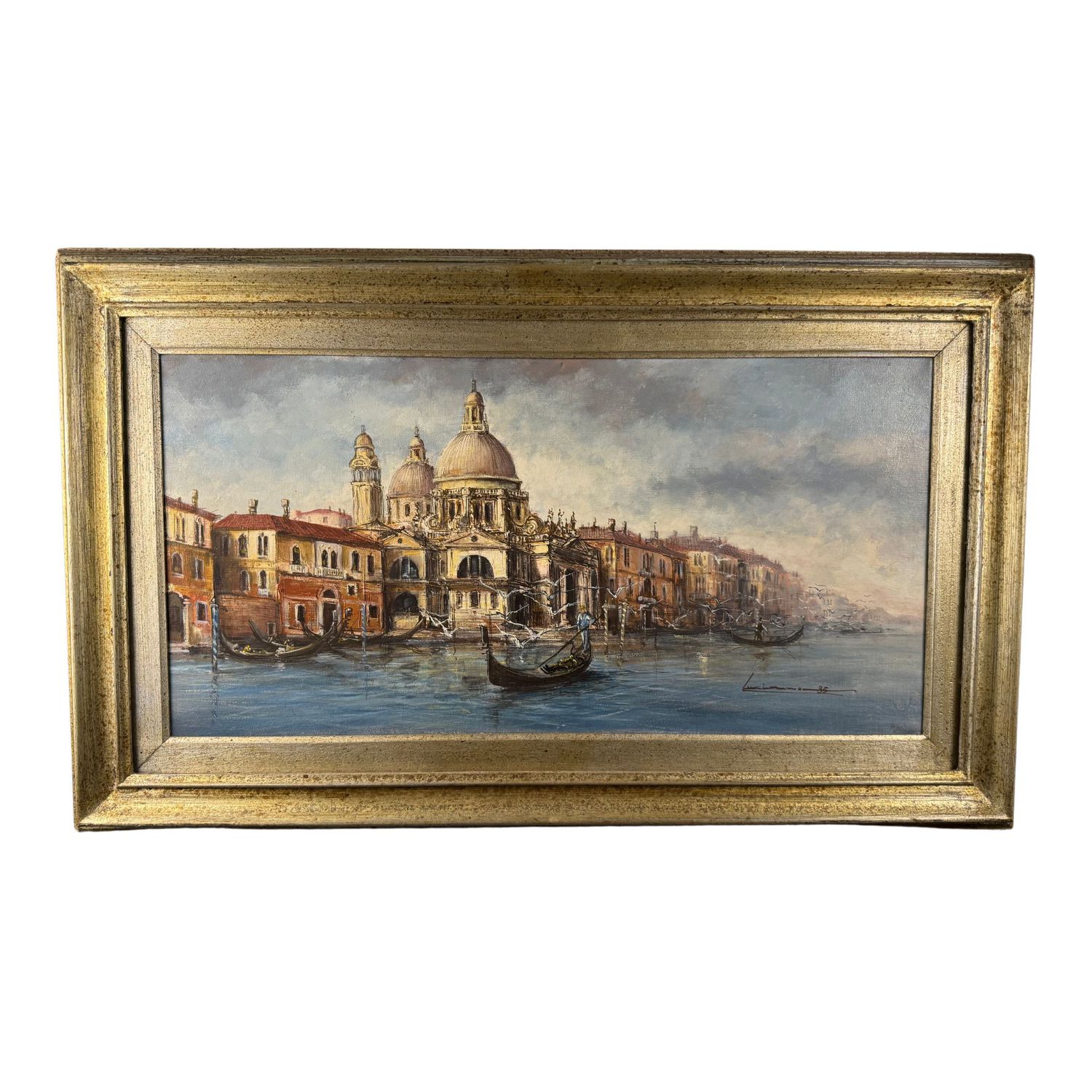 Dipinto olio su tela, periodo XX secolo scuola italiana, raffigurante Venezia. Dimensioni interno cornice: 40x80 cm. Dimensioni compreso cornice: 62x102 cm. Reca firma in basso a destra da artista non identificato. Opera in buone condizioni.