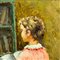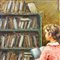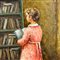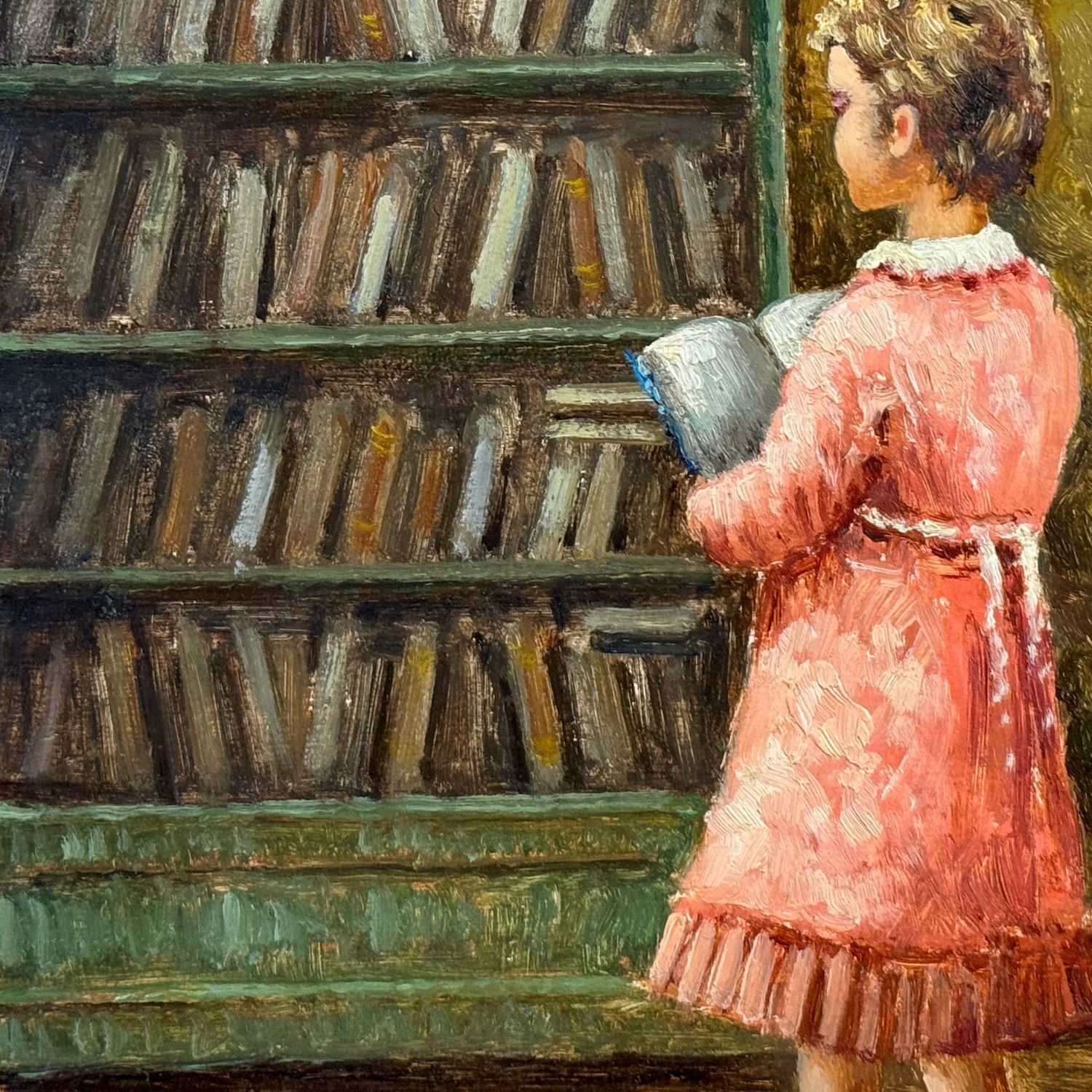 Dipinto olio su tavola, periodo XX secolo (1940 - 1950) scuola Italiana, raffigurante Bambina in biblioteca. Dimensioni: 24x30 cm. Da artista anonimo. Opera in buone condizioni e di ottima qualità artistica.